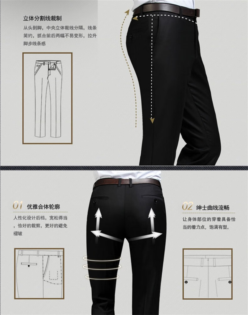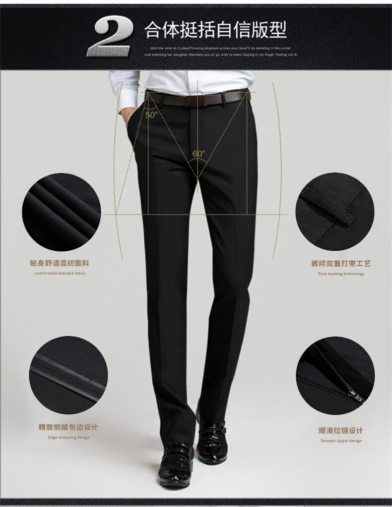 Playboy trousers men's slim fit no-iron suit trousers business drape suit trousers autumn black professional casual long trousers black 30 (2 feet 3)