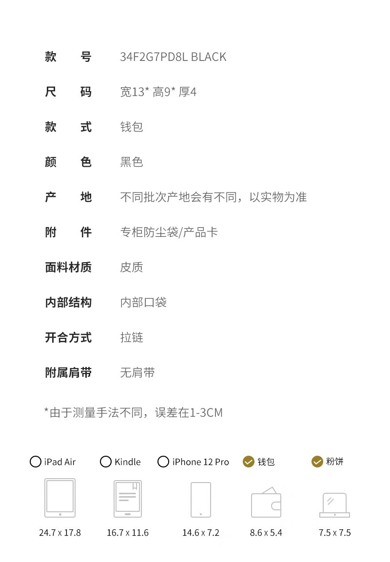 MICHAEL KORS Wallet Women's Classic Cowhide Logo Short Wallet Gift Black 34F2G7PD8L BLACK