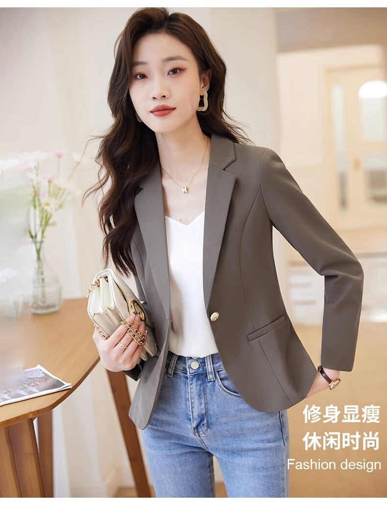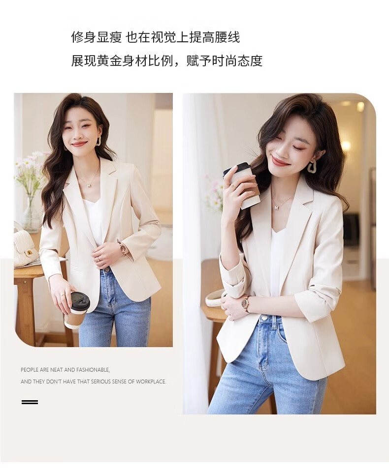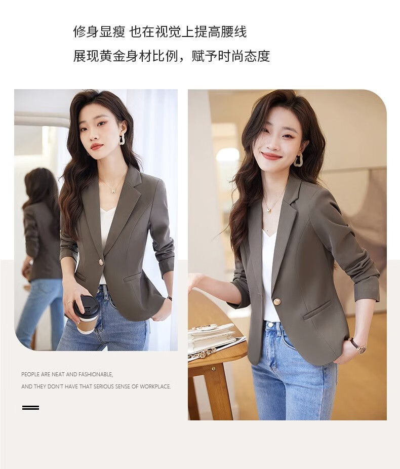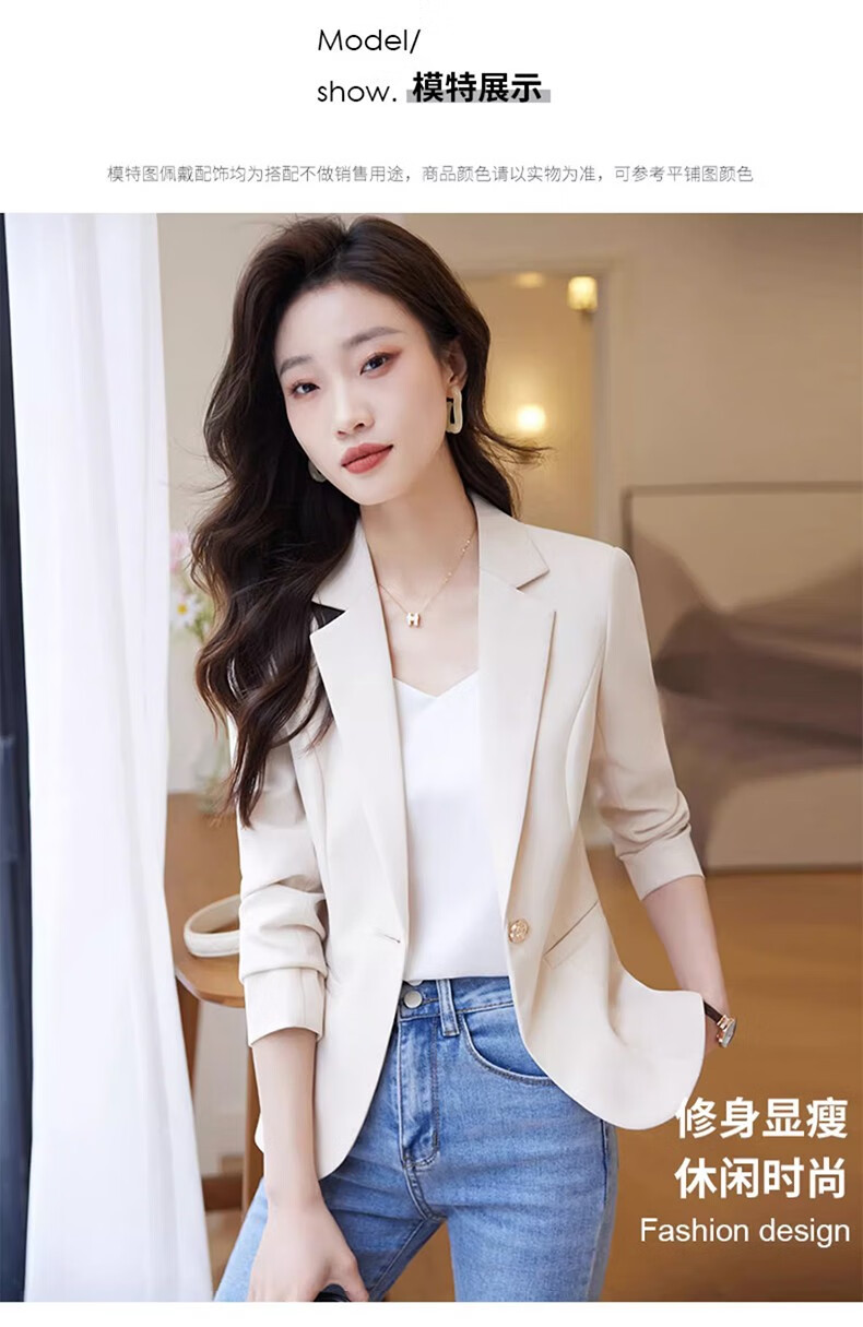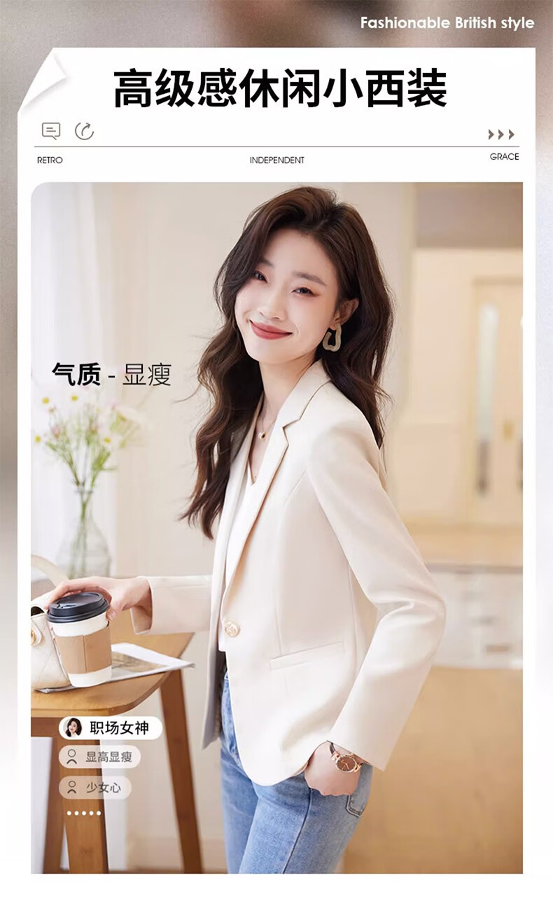 Jian Ting chaqueta de traje blanquecino para mujer primavera y otoño 2026 otoño nuevo traje de otoño pequeño informal de alta gama para mujer traje blanquecino M (90-99Jin Jin es igual a 0,5 kg)