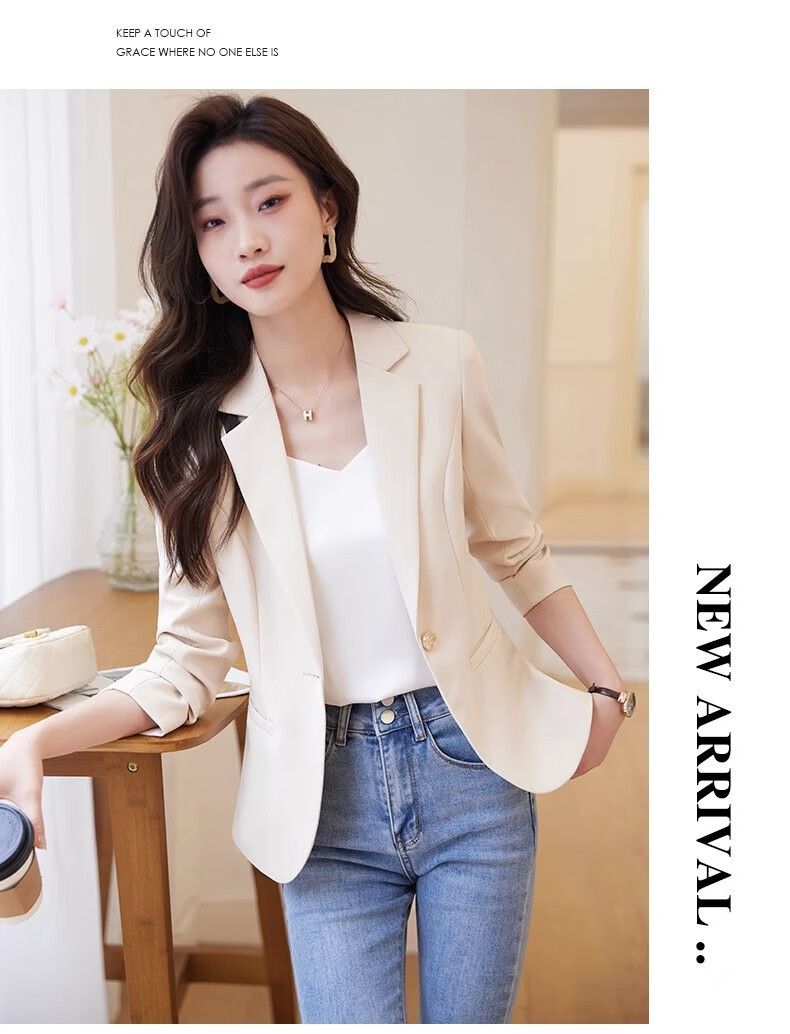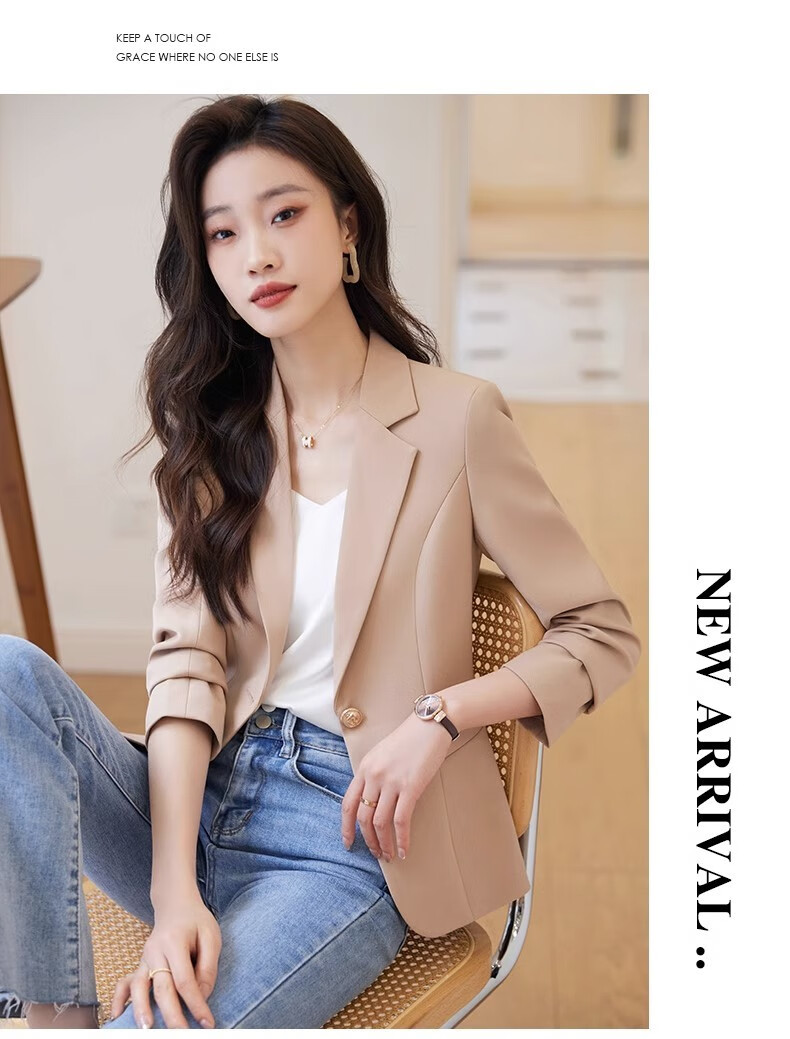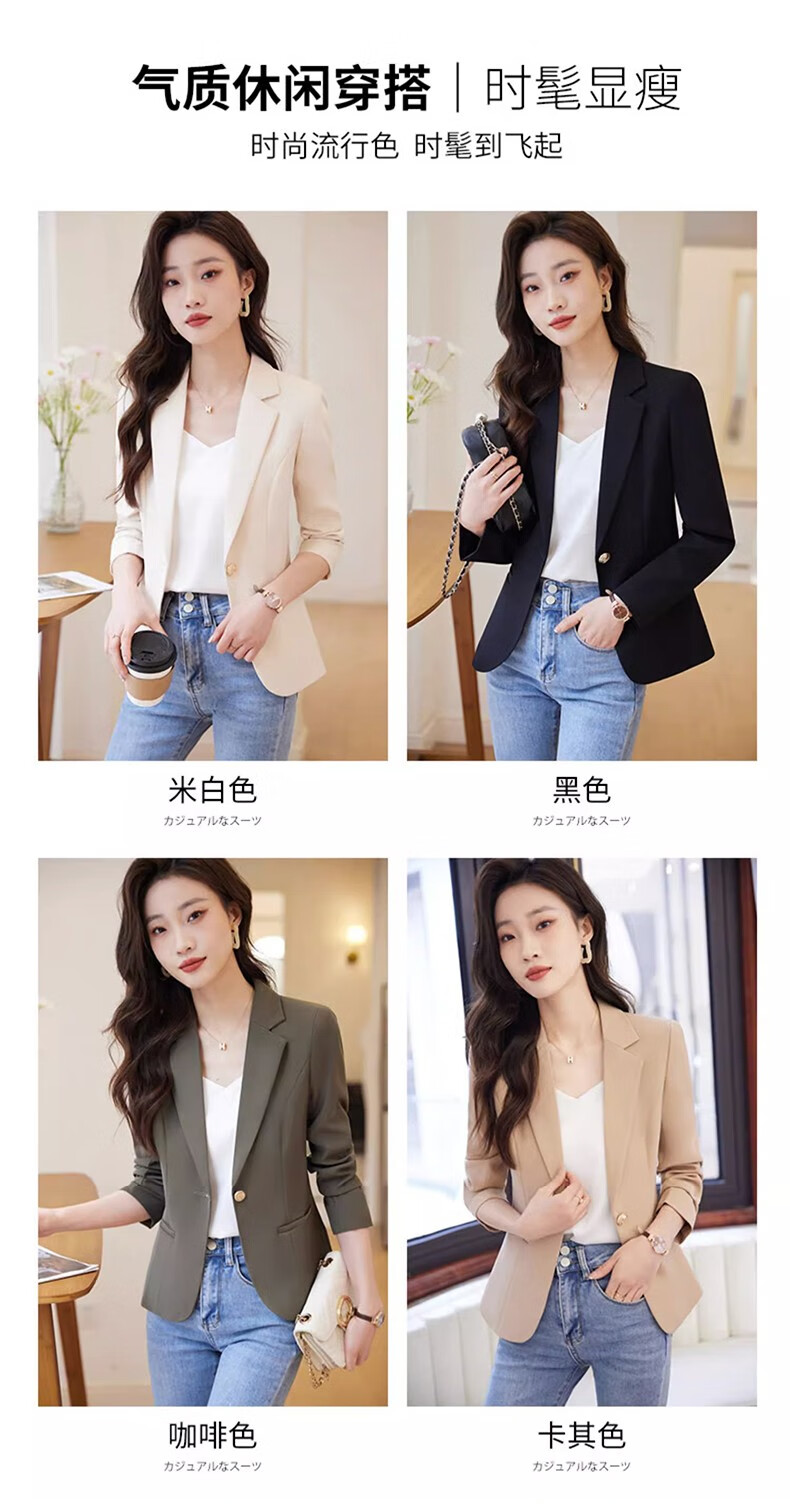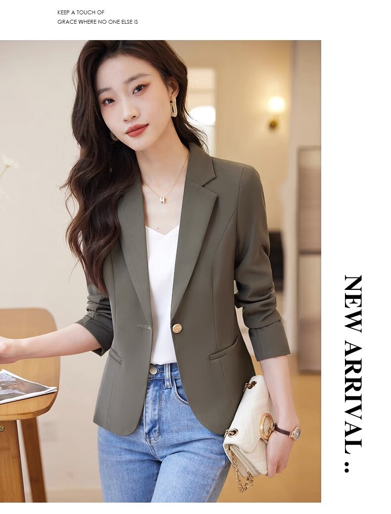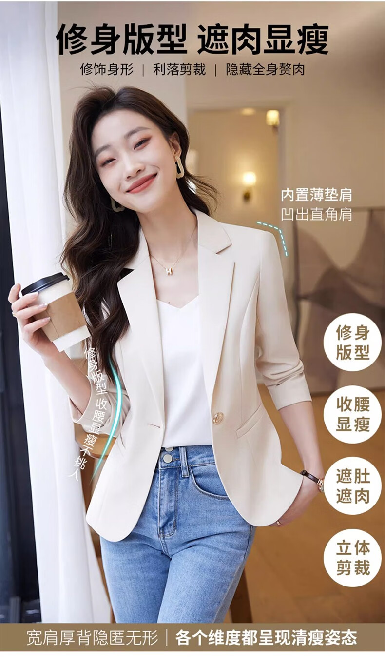 Jian Ting chaqueta de traje blanquecino para mujer primavera y otoño 2026 otoño nuevo traje de otoño pequeño informal de alta gama para mujer traje blanquecino M (90-99Jin Jin es igual a 0,5 kg)