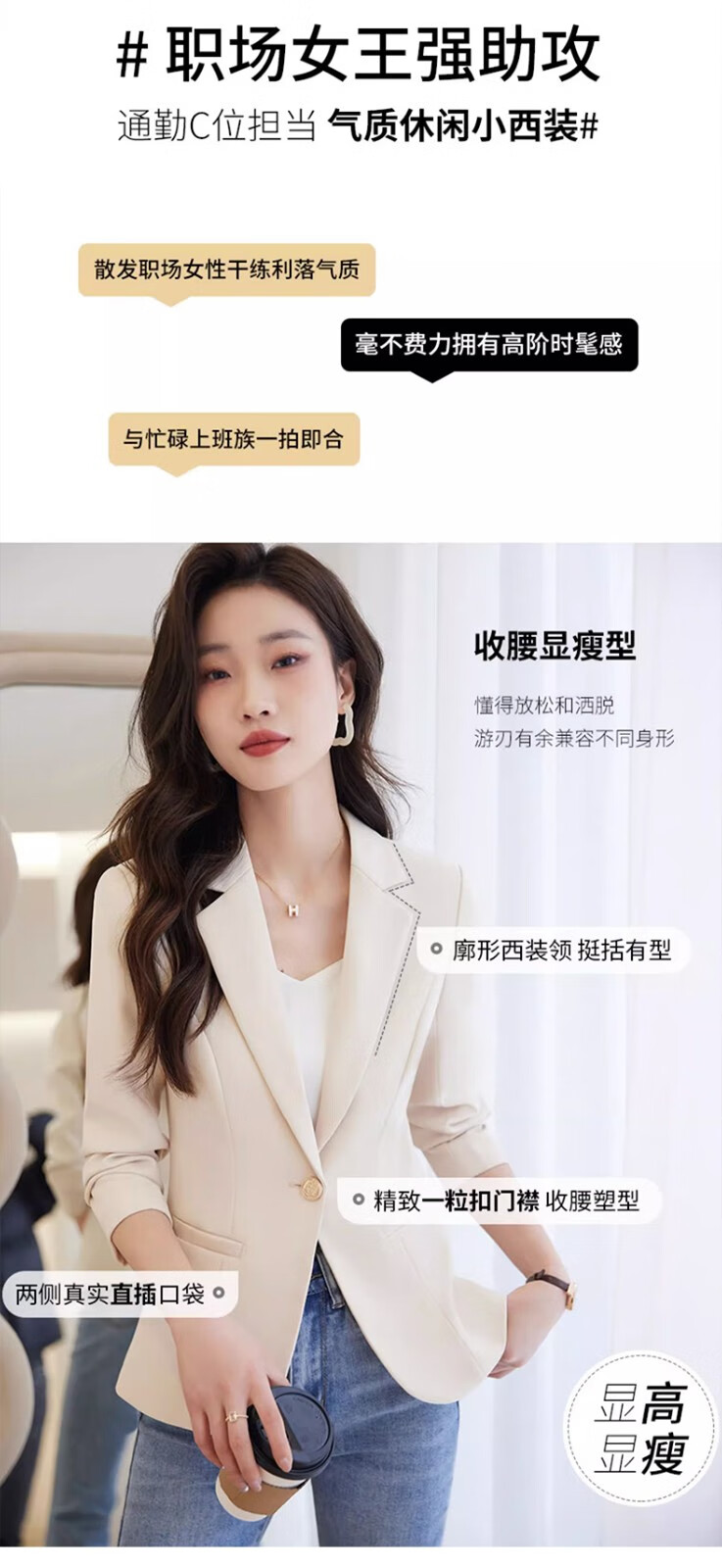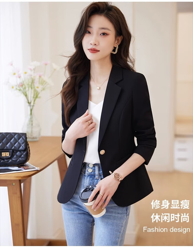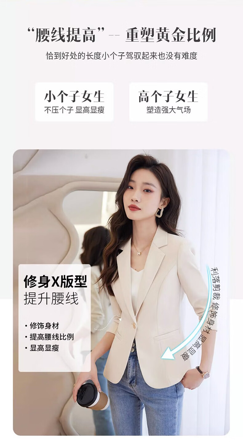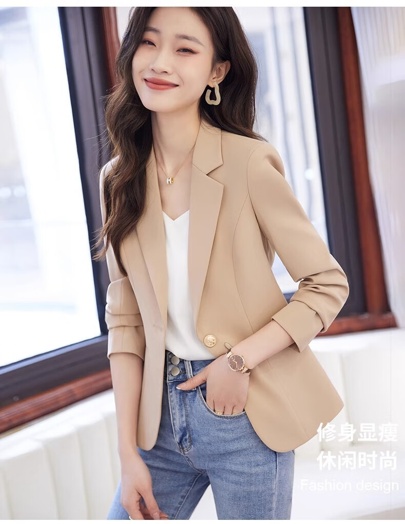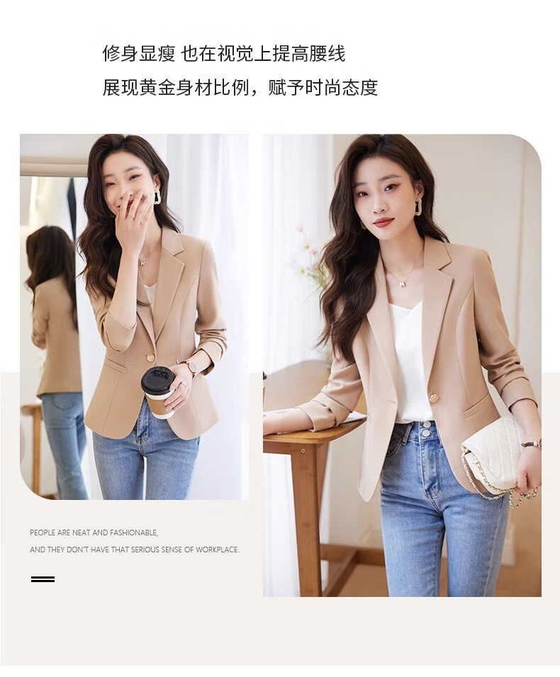 Jian Ting chaqueta de traje blanquecino para mujer primavera y otoño 2026 otoño nuevo traje de otoño pequeño informal de alta gama para mujer traje blanquecino M (90-99Jin Jin es igual a 0,5 kg)