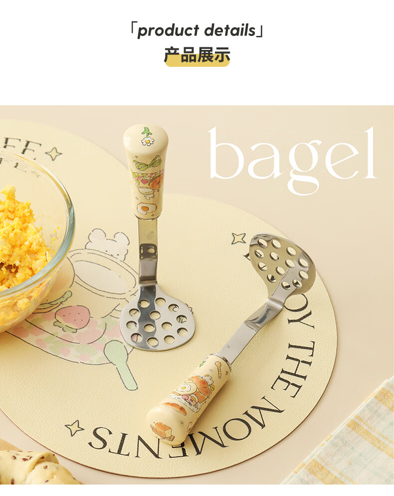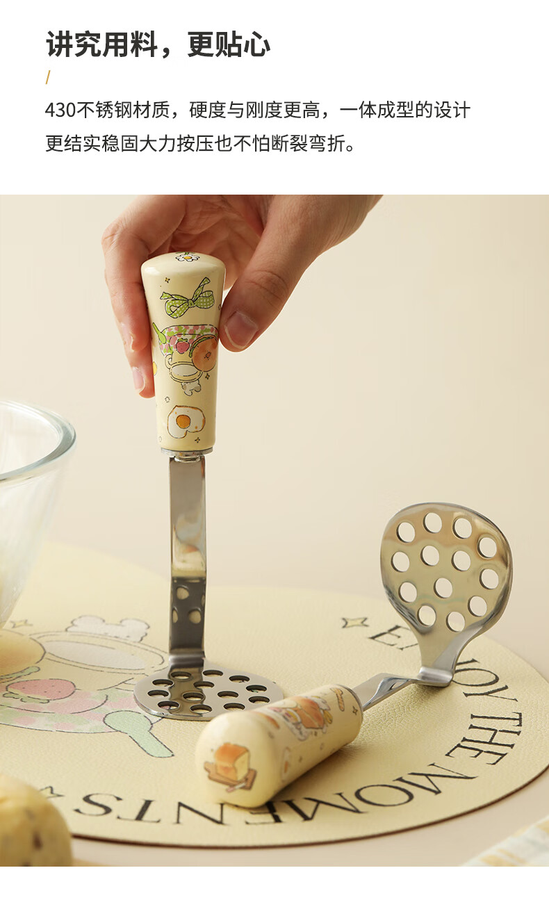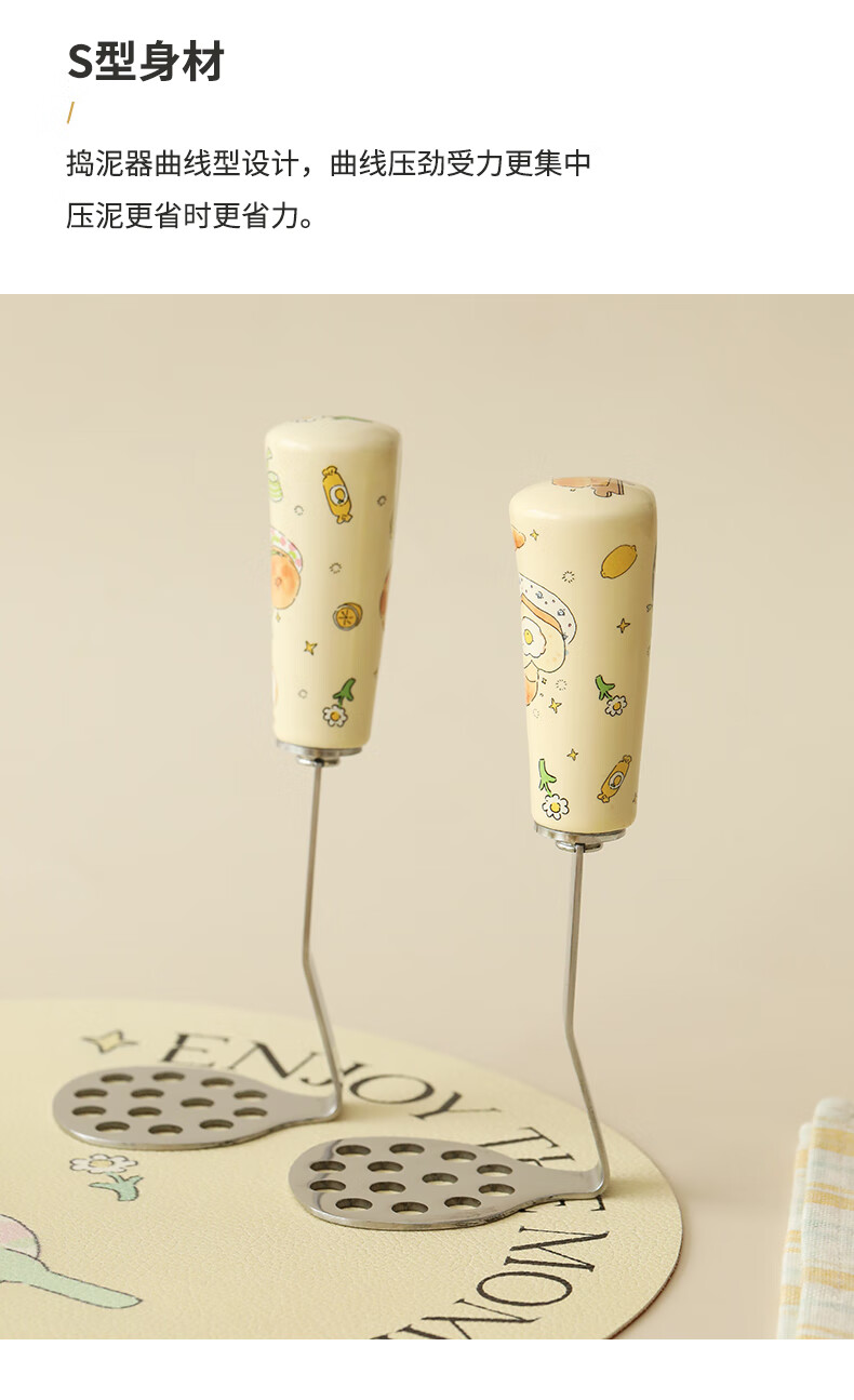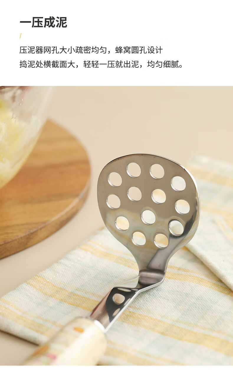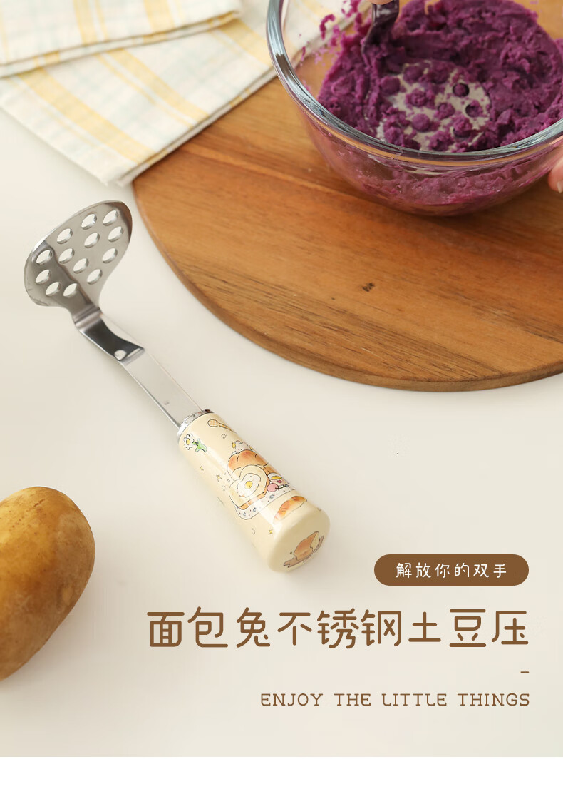 Blue Lotus Blue Lotus Panda Little Flower Stainless Steel Potato Mashed Masher Masher Household Baby Food Tool Artifact Bagel Style Swipe right to see picture 2 for details