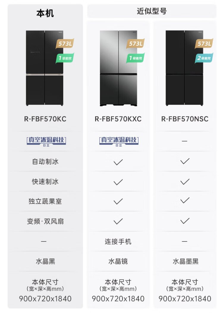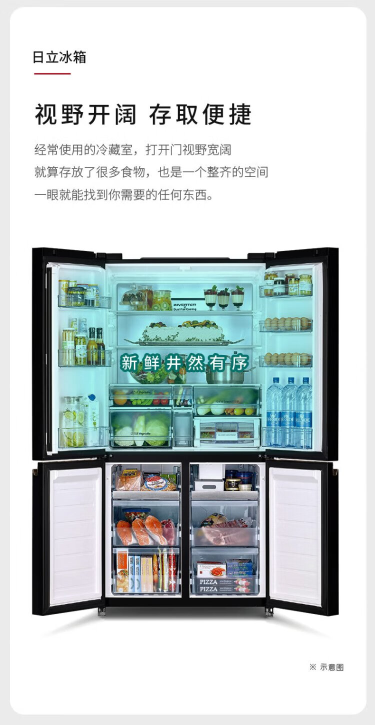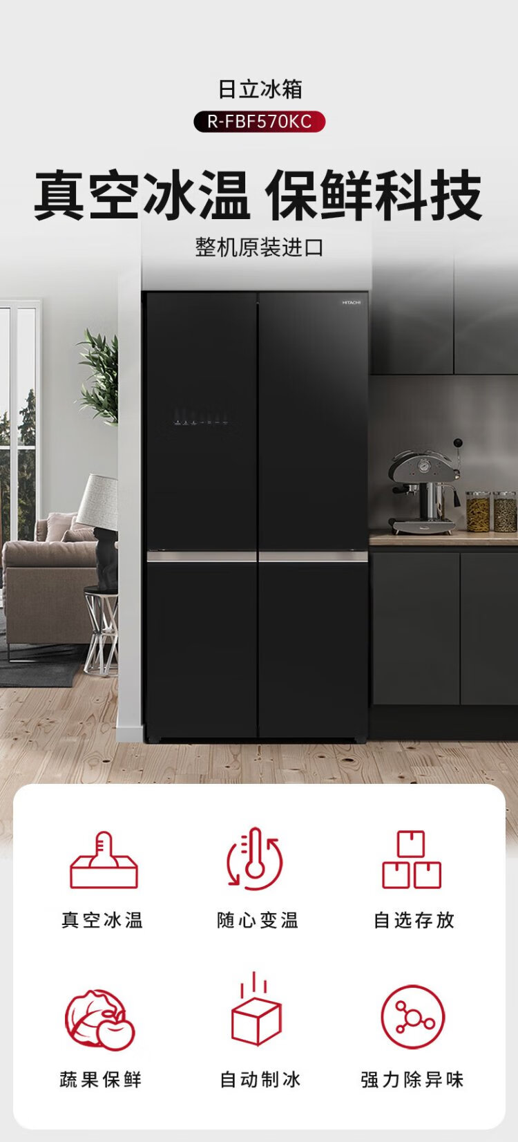HITACHI Hitachi refrigerator 573L large capacity cross-door four-door original imported R-FBF570KC vacuum preservation automatic ice making crystal black