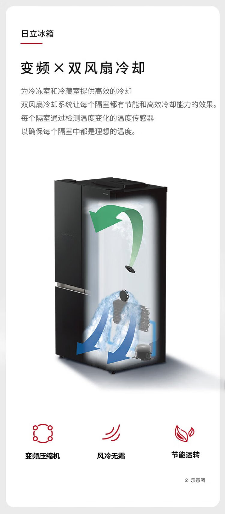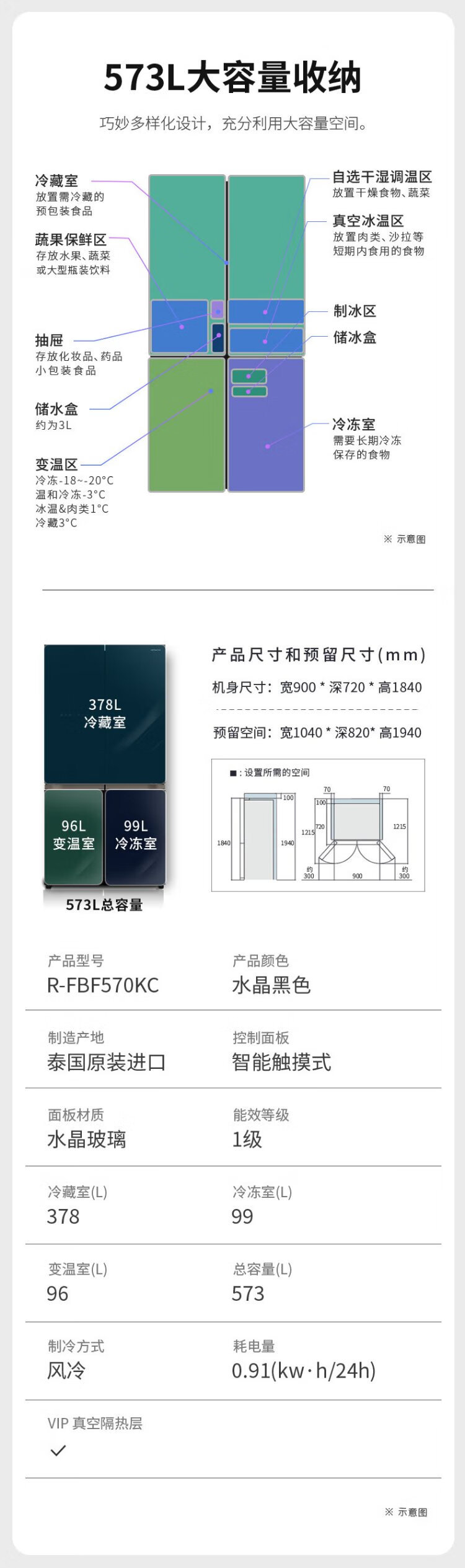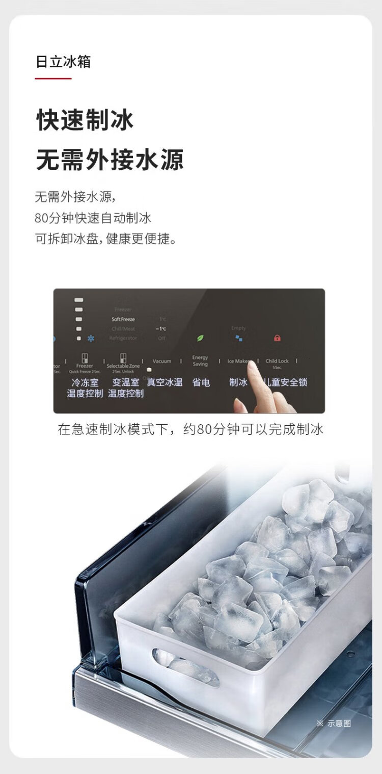 HITACHI Hitachi refrigerator 573L large capacity cross-door four-door original imported R-FBF570KC vacuum preservation automatic ice making crystal black