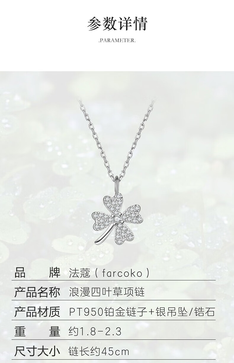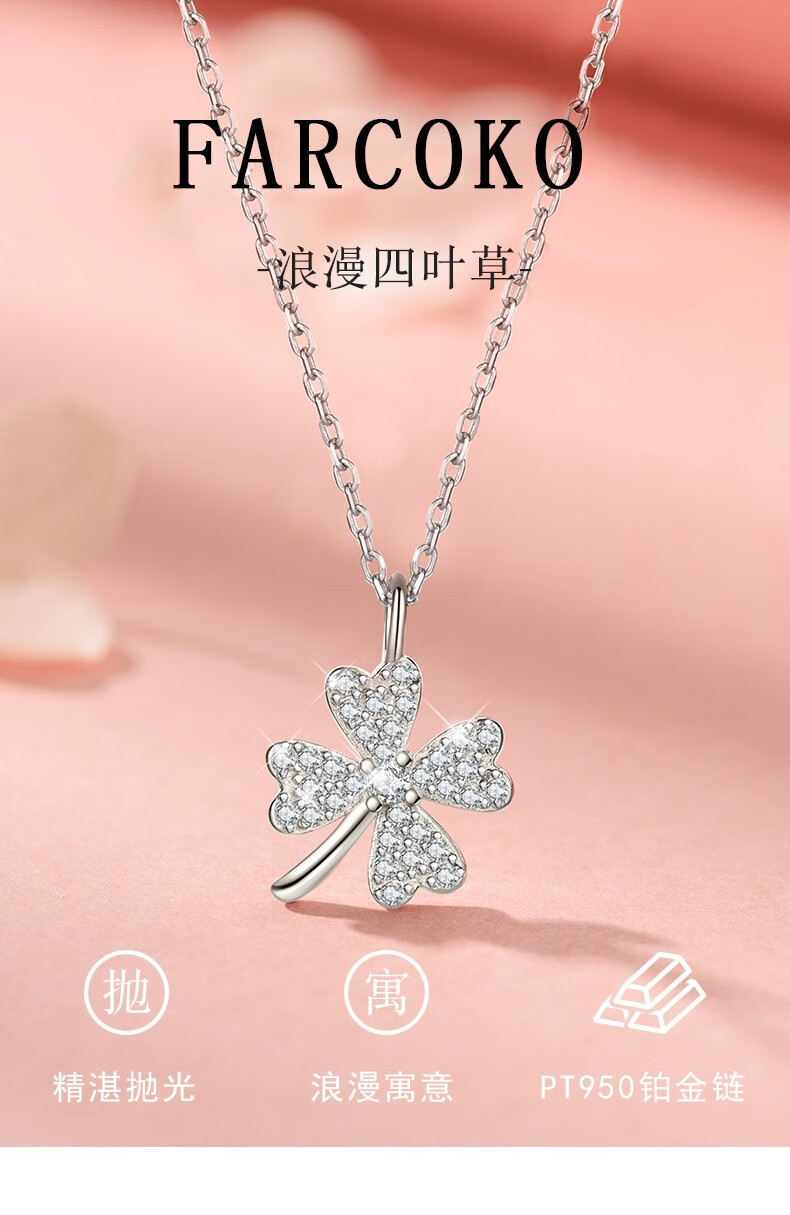 Farcoko pt950 platinum necklace women's four-leaf clover pendant platinum clavicle chain fashion jewelry birthday gift for girlfriend pt950 platinum necklace + diamond four-leaf clover pendant - exquisite high-end gift box