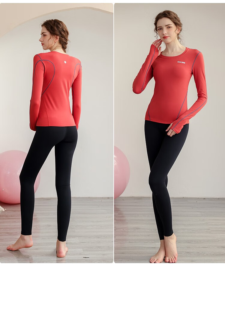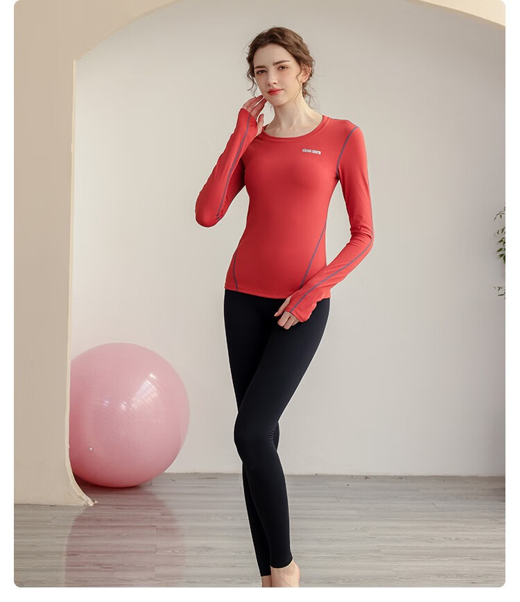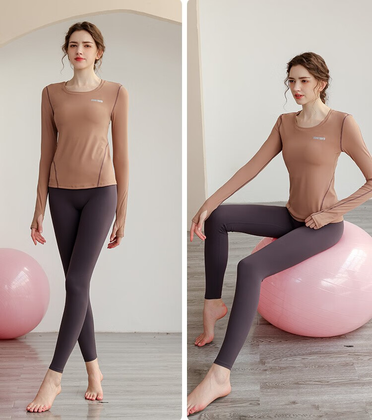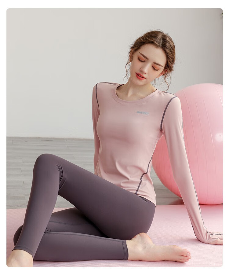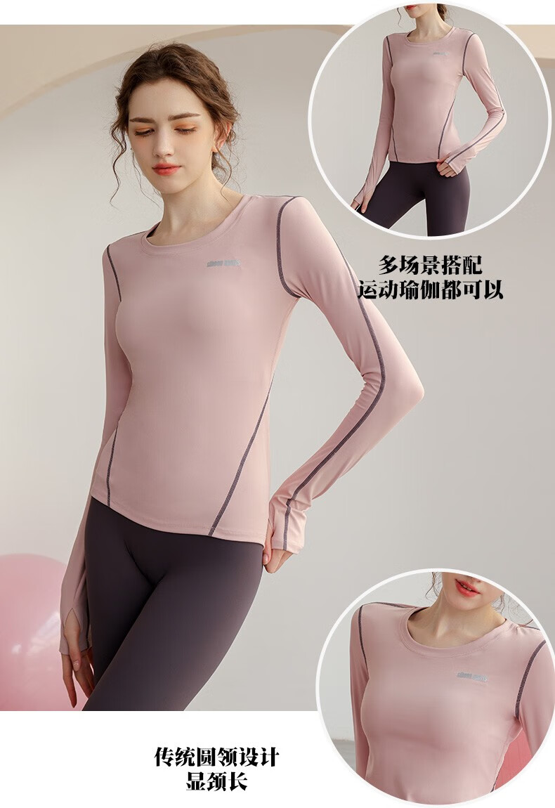 Sporn yoga clothing women's suit autumn and winter long-sleeved Pilates top professional fitness clothing slimming temperament sports training clothing pink top + gray leg shaping pants (two-piece set) M 90-100Jin Jin equals 0.5 kg