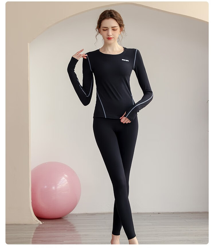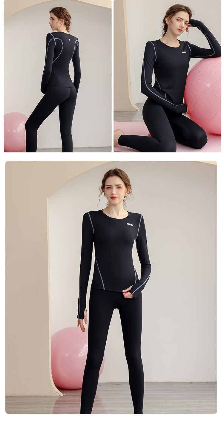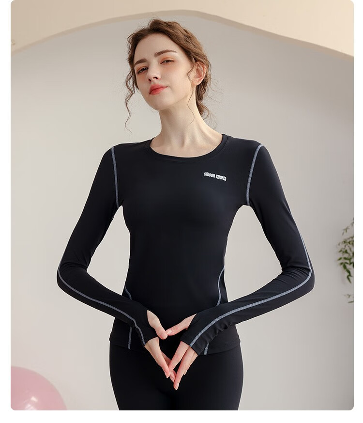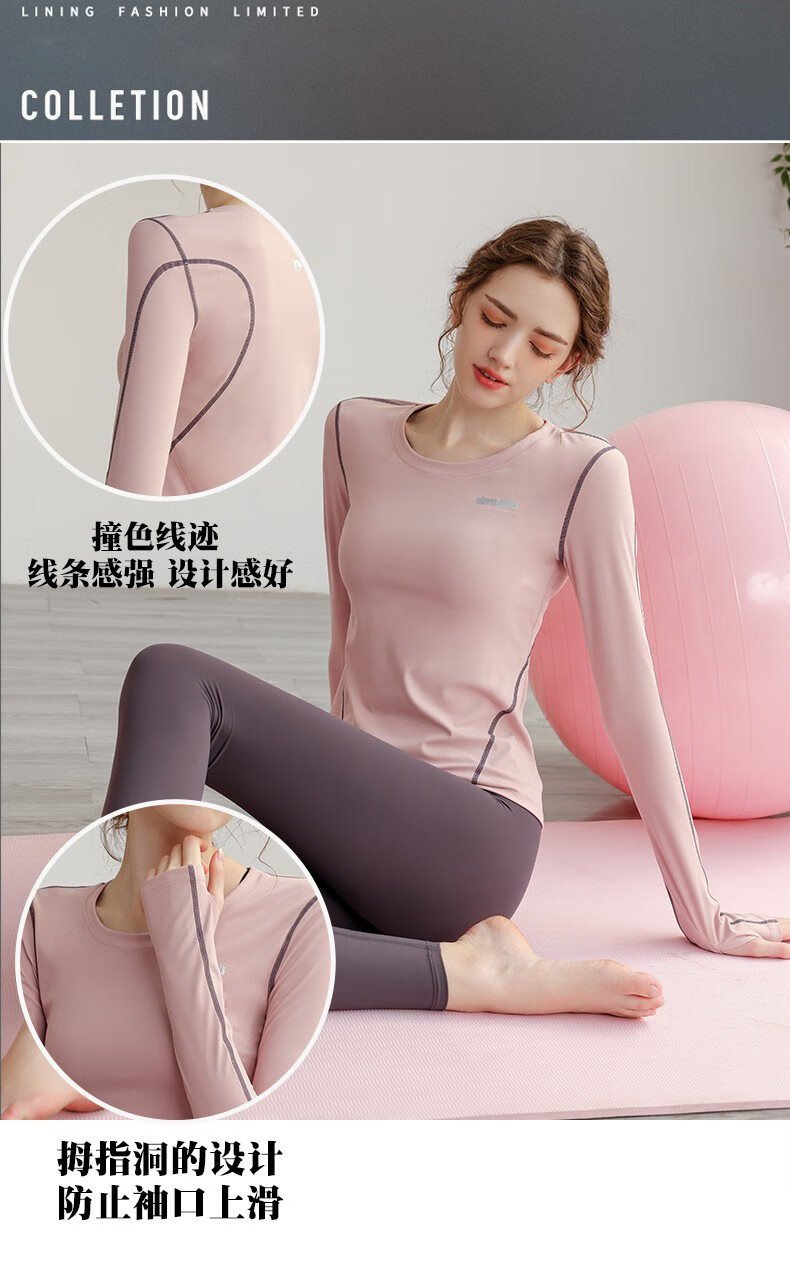 Sporn yoga clothing women's suit autumn and winter long-sleeved Pilates top professional fitness clothing slimming temperament sports training clothing pink top + gray leg shaping pants (two-piece set) M 90-100Jin Jin equals 0.5 kg