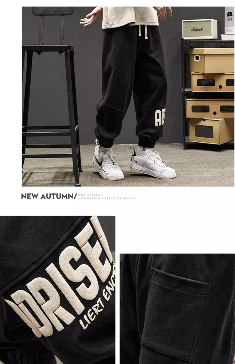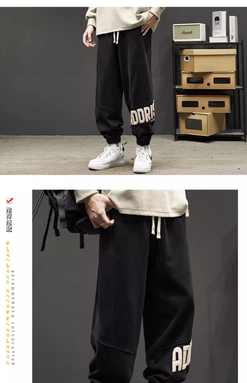 SHANNU casual pants men's autumn and winter velvet thickened overalls men's pants Korean style ins leg-locking loose sportswear trousers 2236 black 2XL (recommended 160-175 Jin Jin equals 0.5 kg)