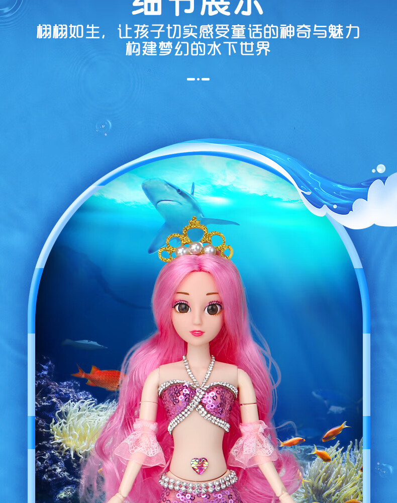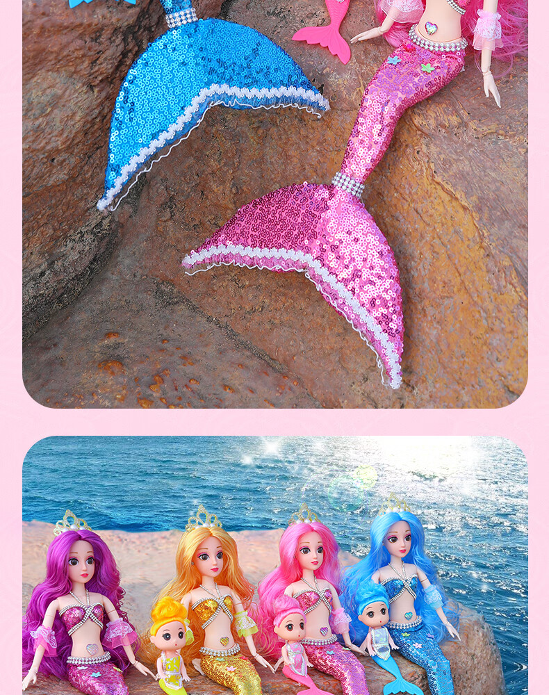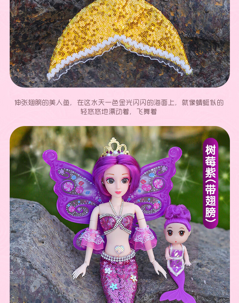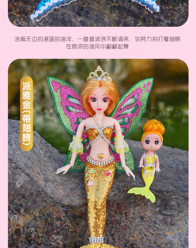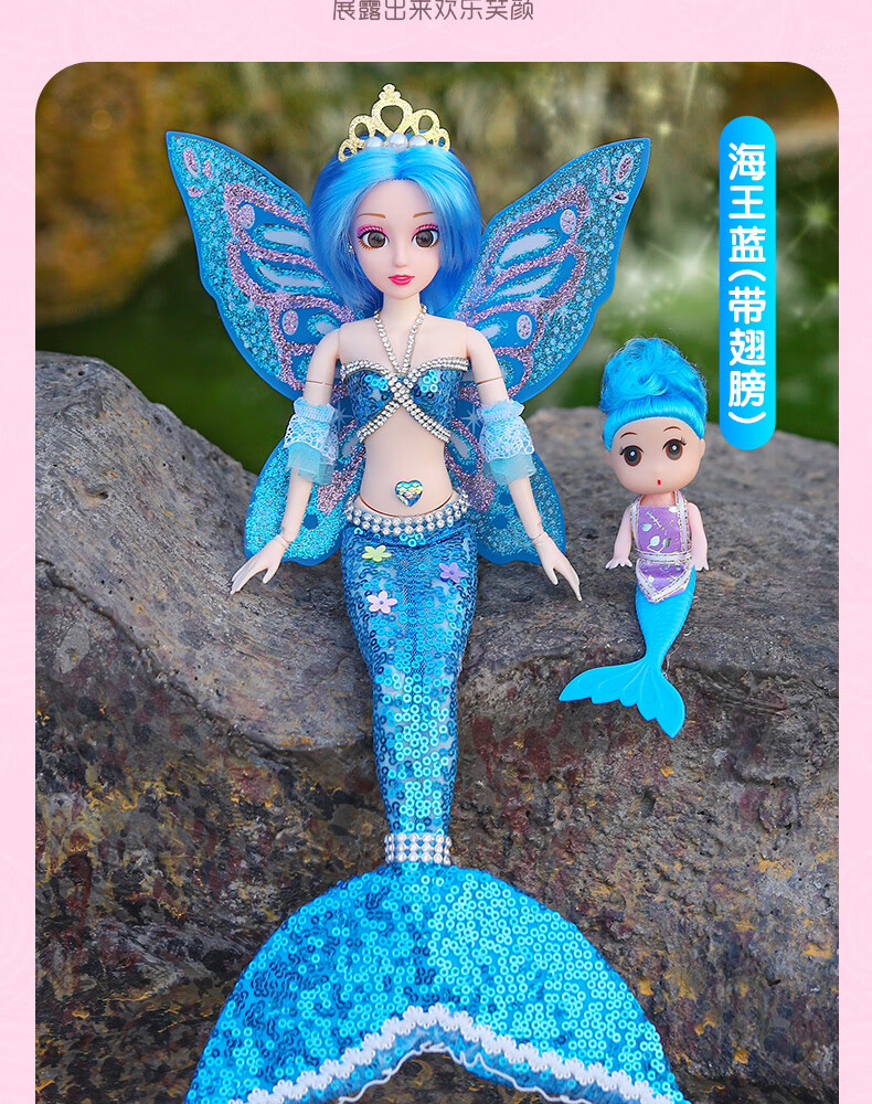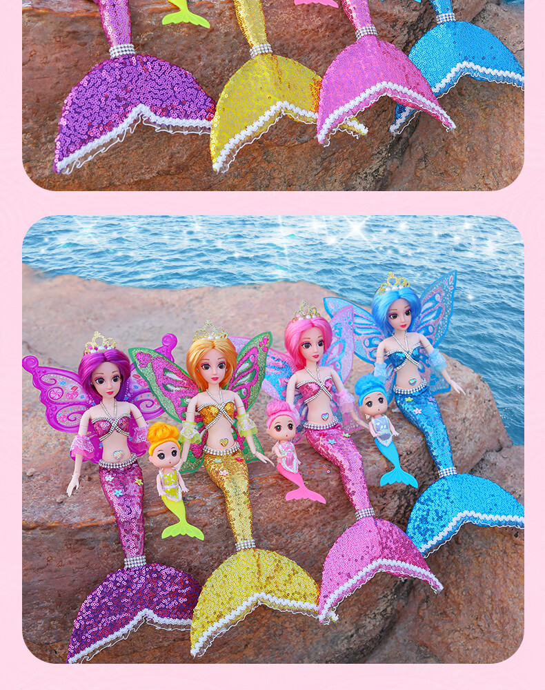 Lemmy Bear Mermaid Doll Princess Doll Set Gift Box Children's Toy Girl 4-6 Years Old Birthday Gift Mermaid Doll Pink Musical Style + Wings