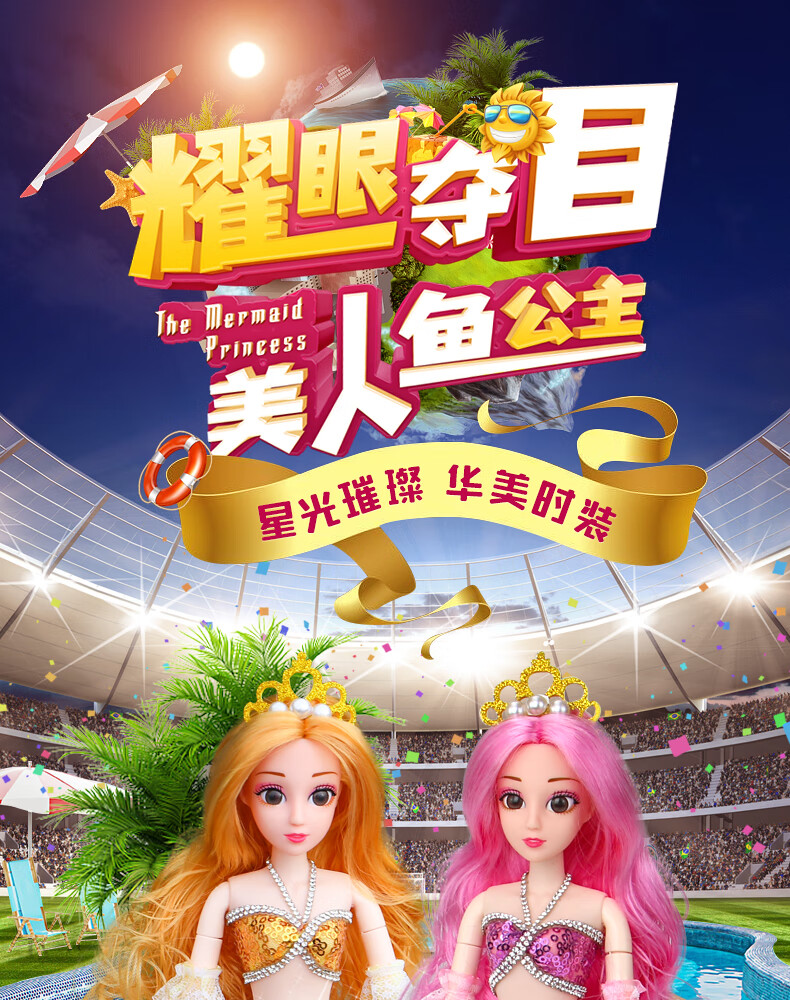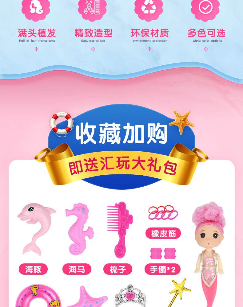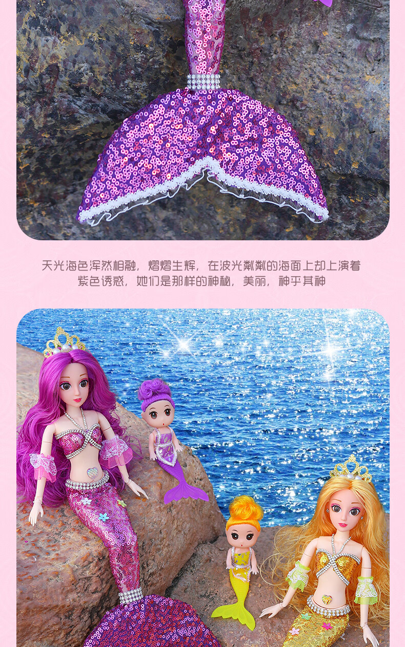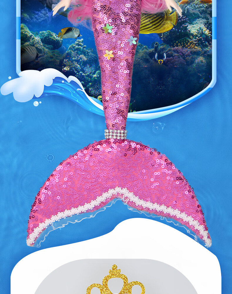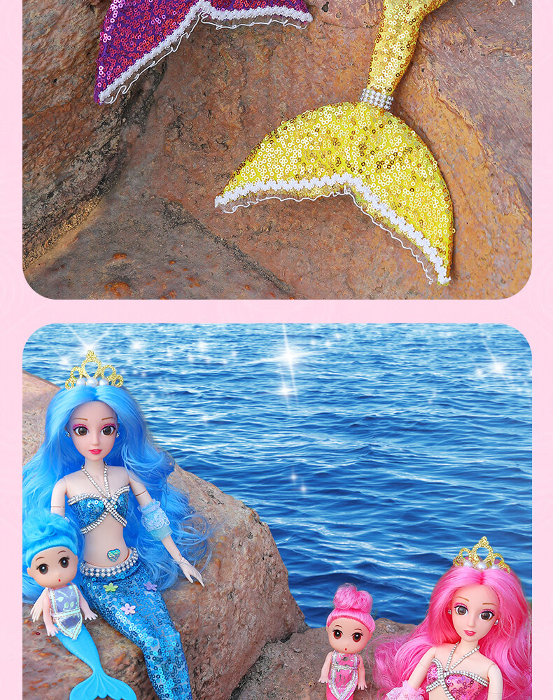 Lemmy Bear Mermaid Doll Princess Doll Set Gift Box Children's Toy Girl 4-6 Years Old Birthday Gift Mermaid Doll Pink Musical Style + Wings