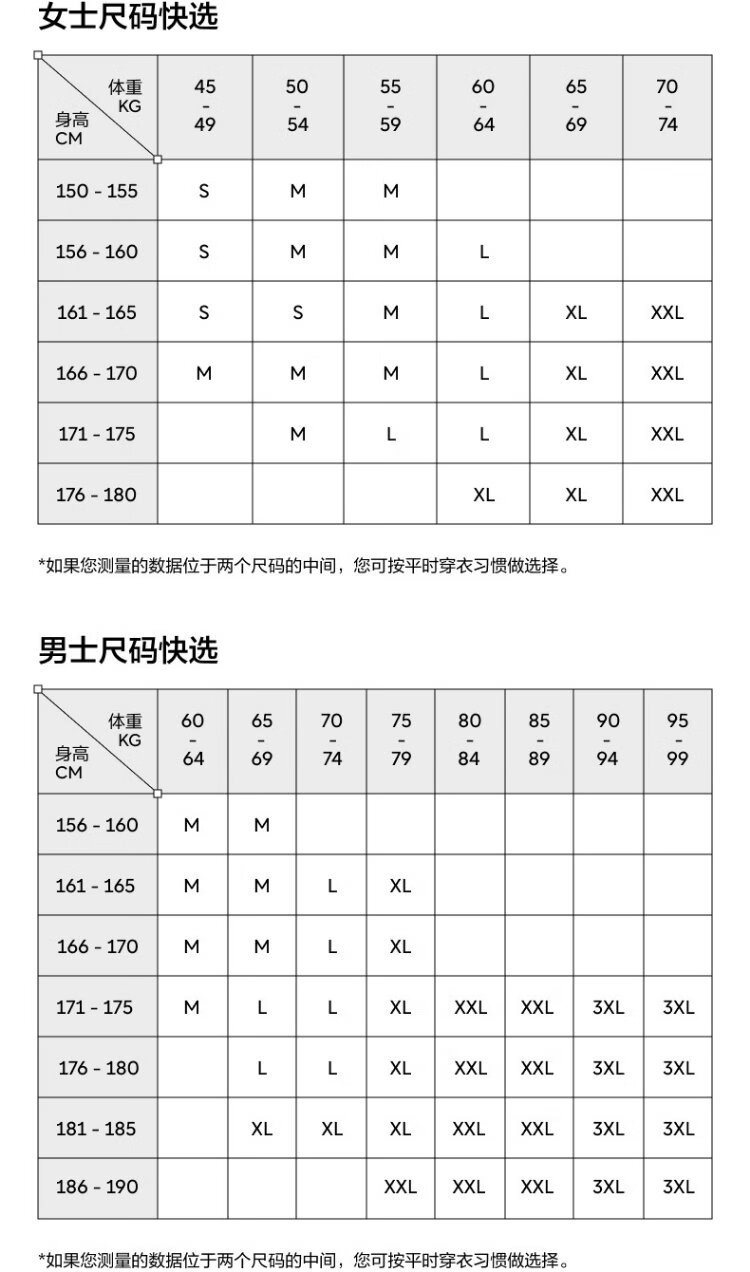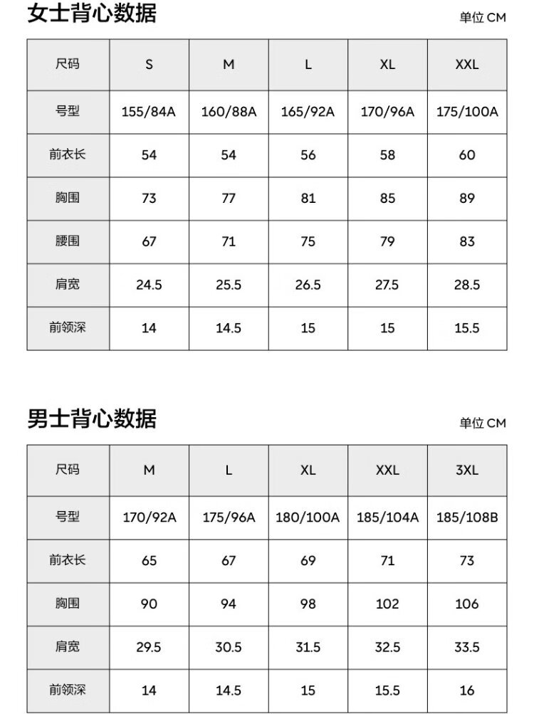 China (cm) 160-165/84-86 165-170 / 88-90 167-172 / 92-96 168-173 / 98-102 170-176 / 106-110