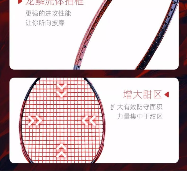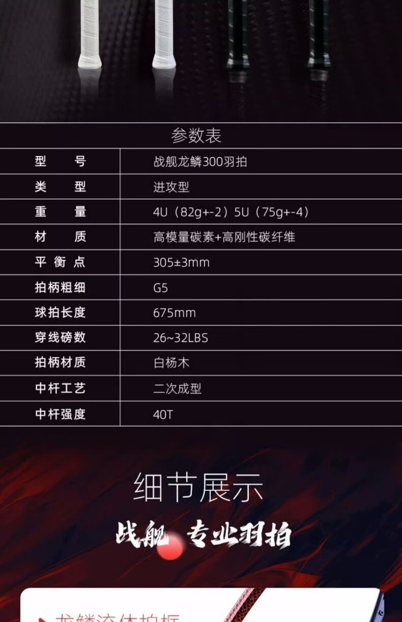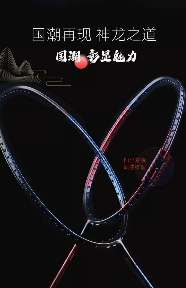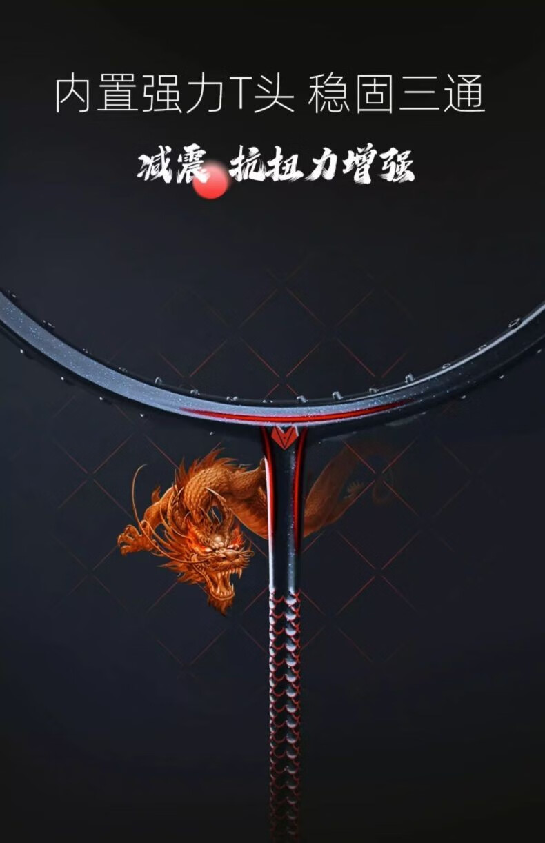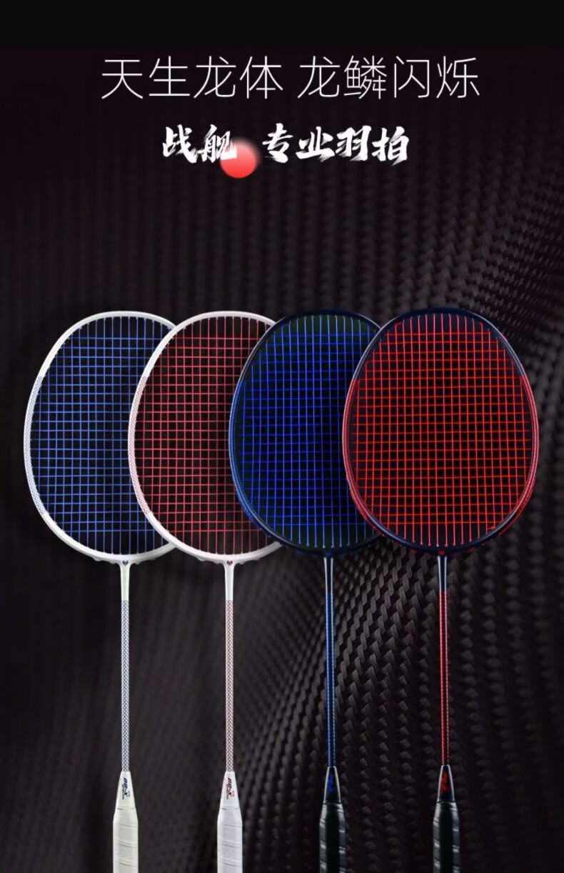 Battleship Battleship full carbon badminton racket lightweight carbon fiber training men's and women's bow and arrow series Dragon Scale 4U5U Dragon Scale 300-Red and Black 5U (75-79g) single pack