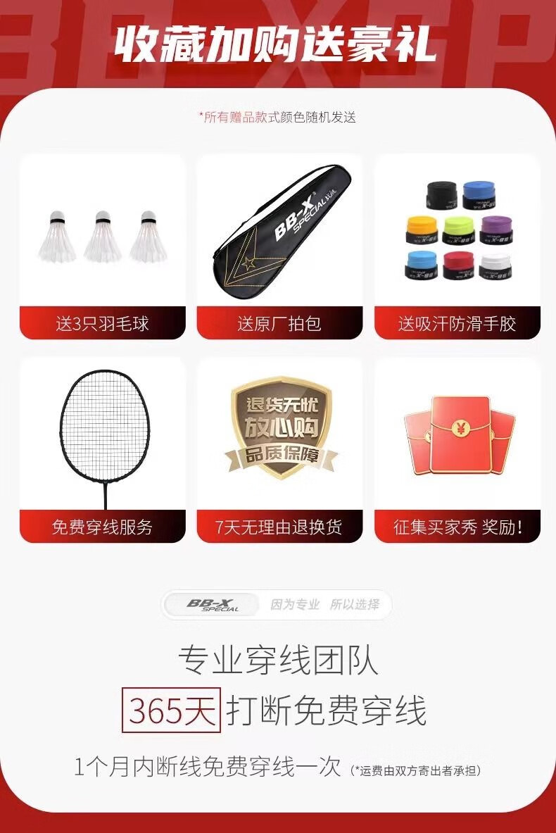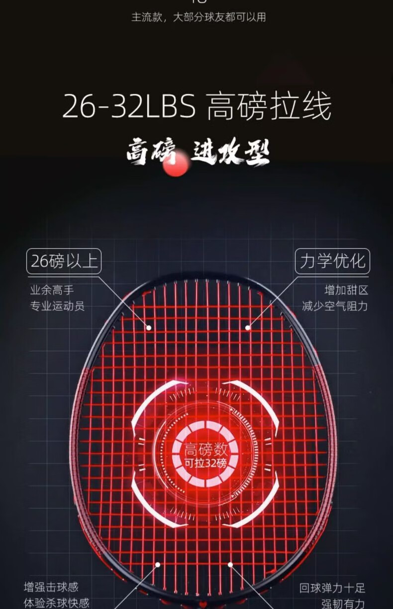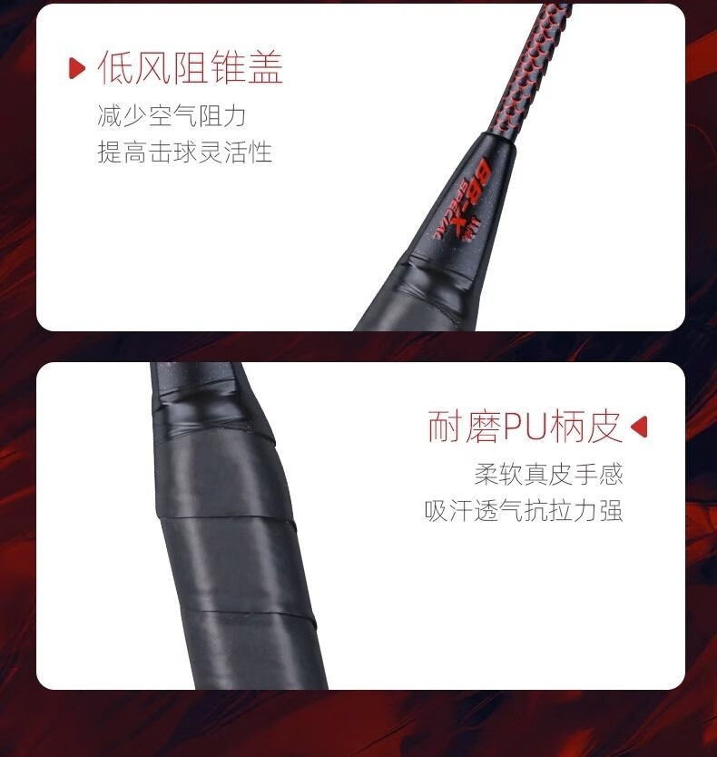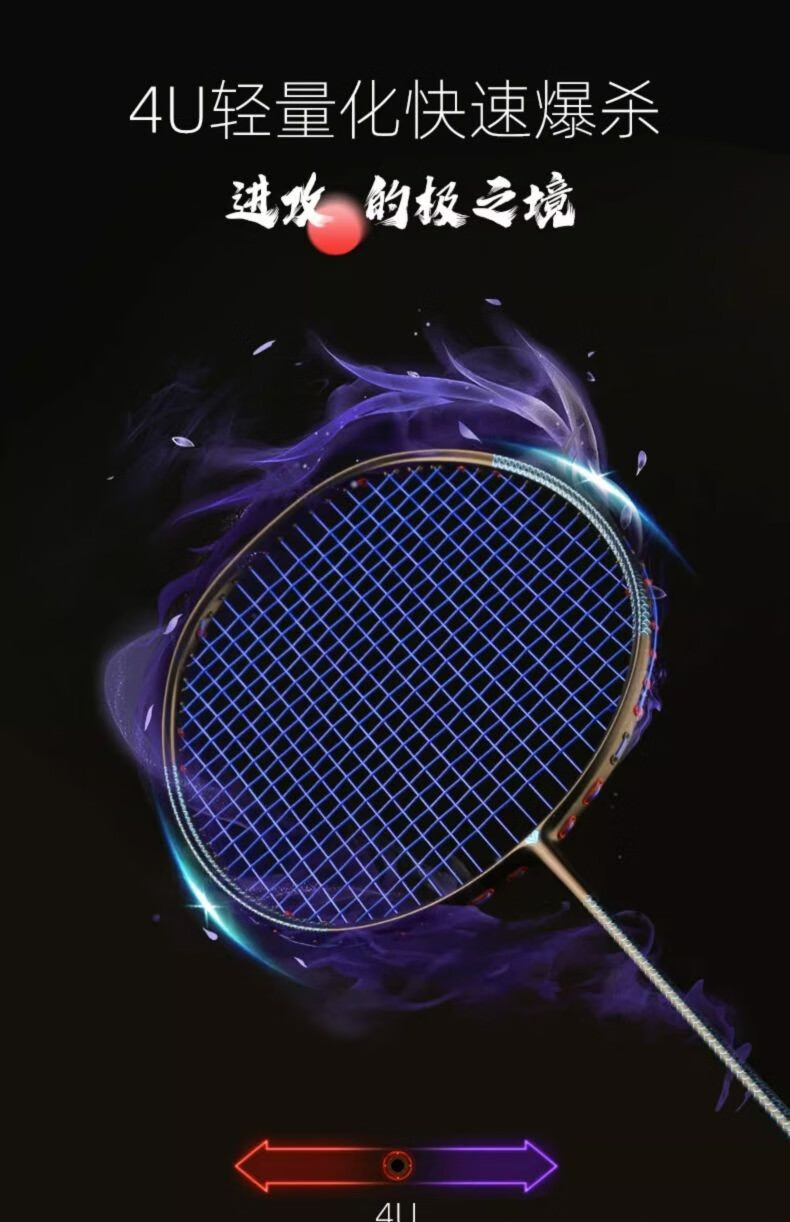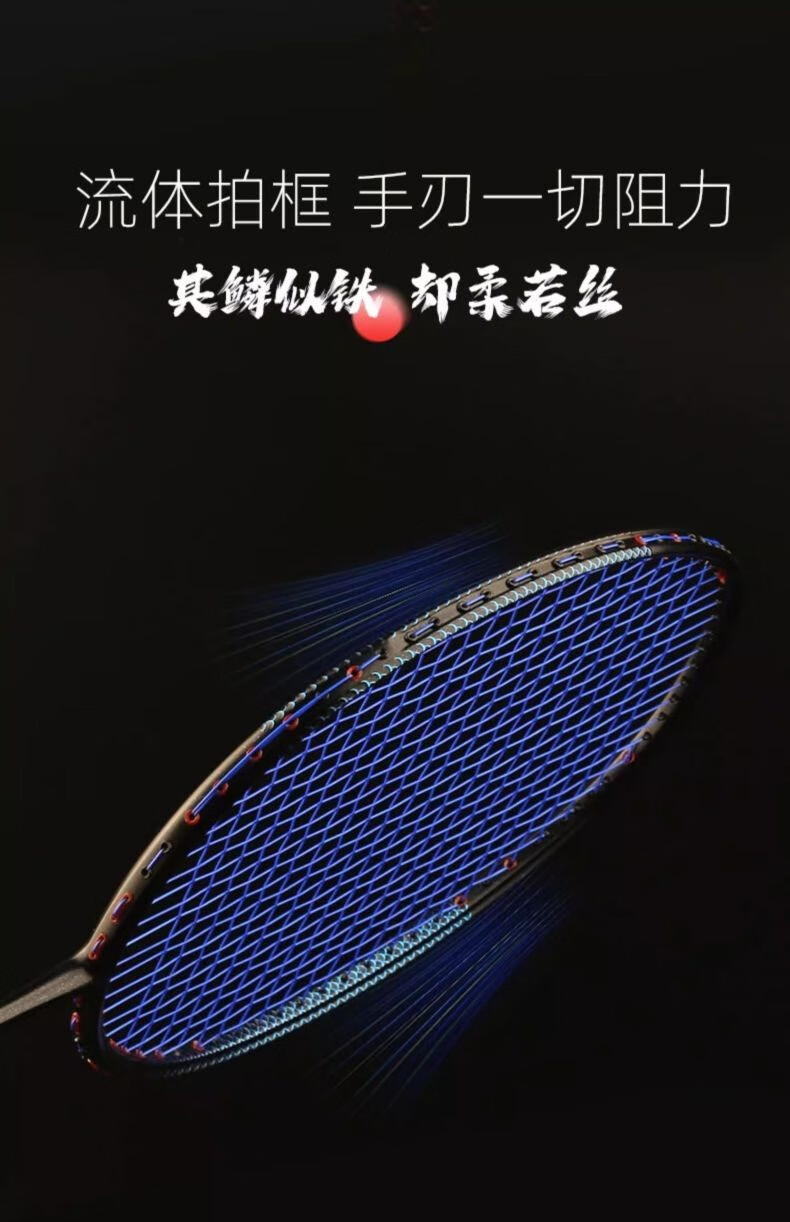Battleship Battleship full carbon badminton racket lightweight carbon fiber training men's and women's bow and arrow series Dragon Scale 4U5U Dragon Scale 300-Red and Black 5U (75-79g) single pack