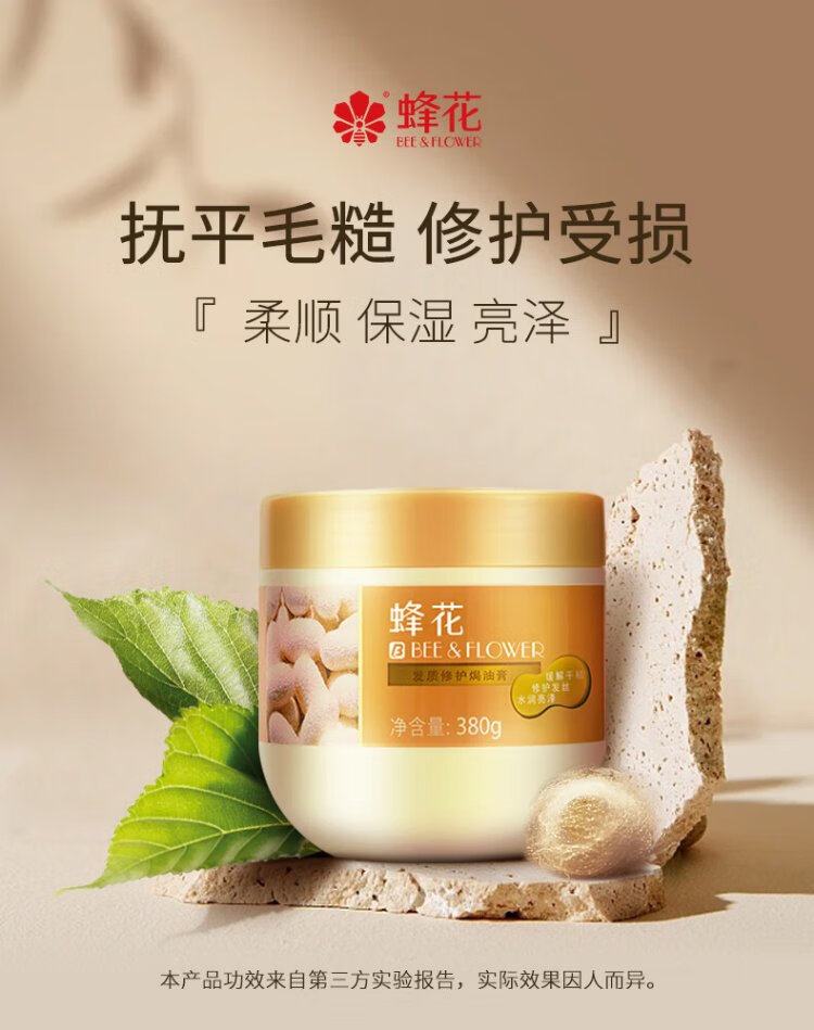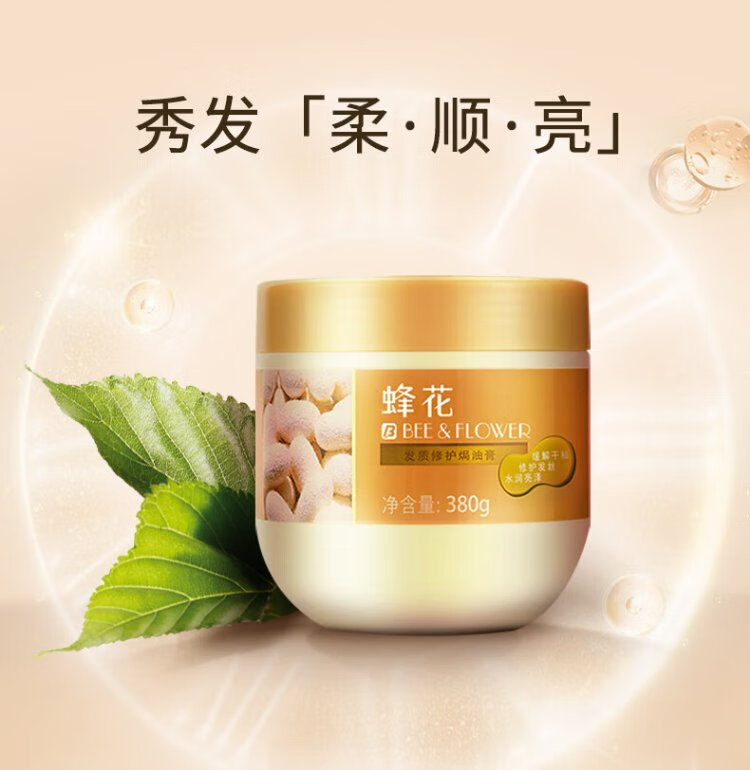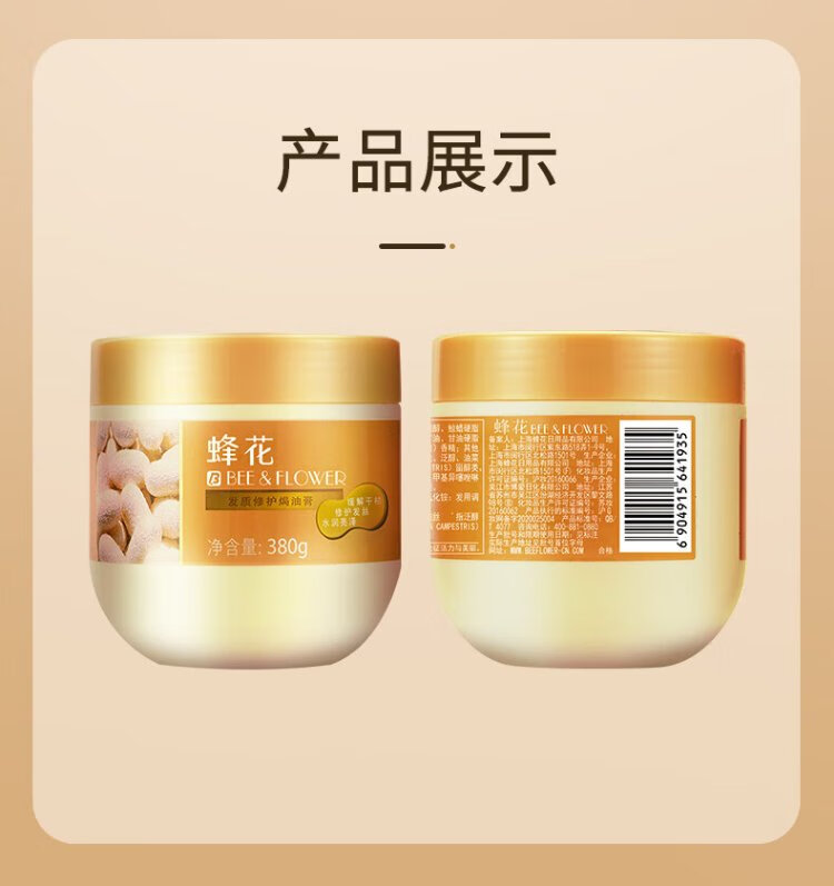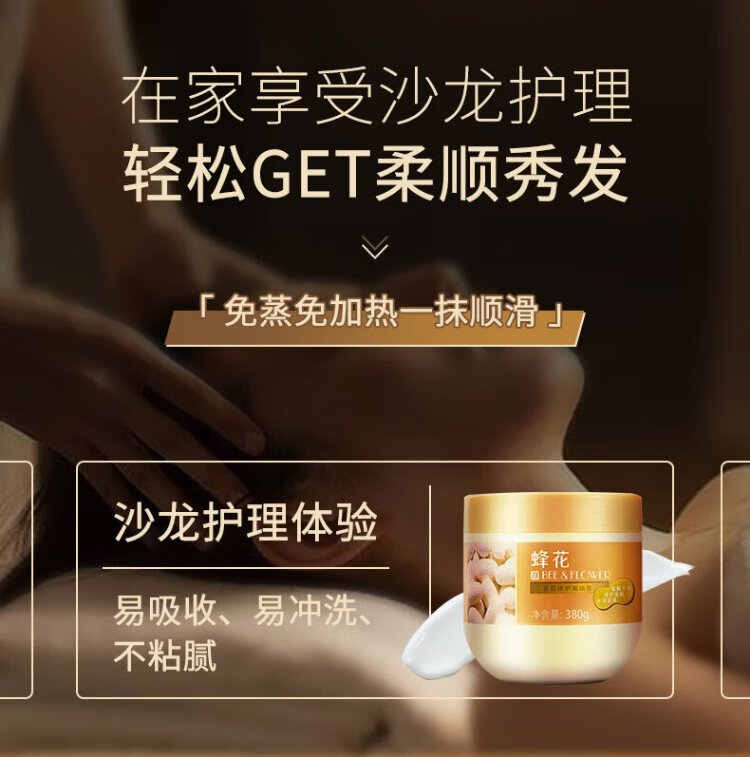 Bee flower hair mask, repairing and baking ointment, evaporation-free film, molded hair nutrient oil to improve roughness, perm and dye damage, unisex, bee flower hair repair and baking ointment, 380g*1 bottle