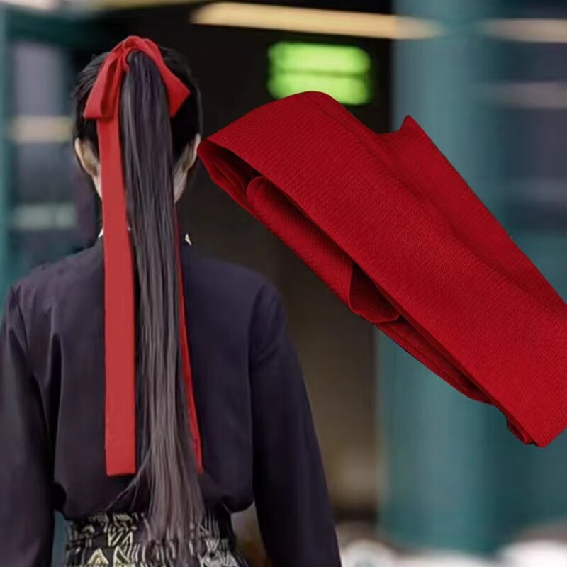萌客朵 古风发带汉服飘带红色丝带扎头发发绳绑发头绳儿童头饰古装腰带 酒红色【约1.6米】
