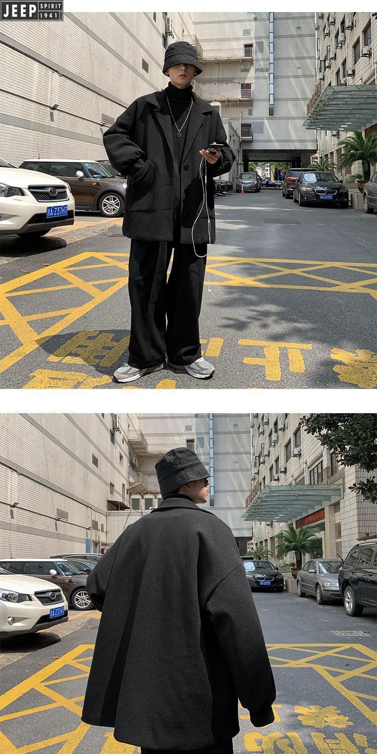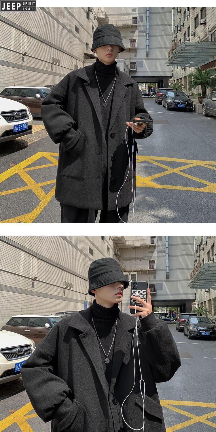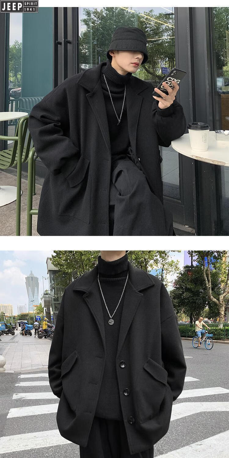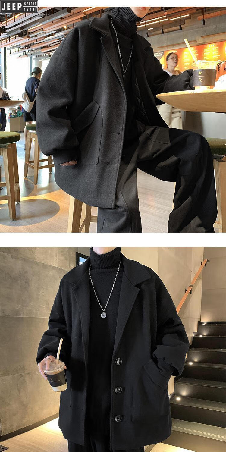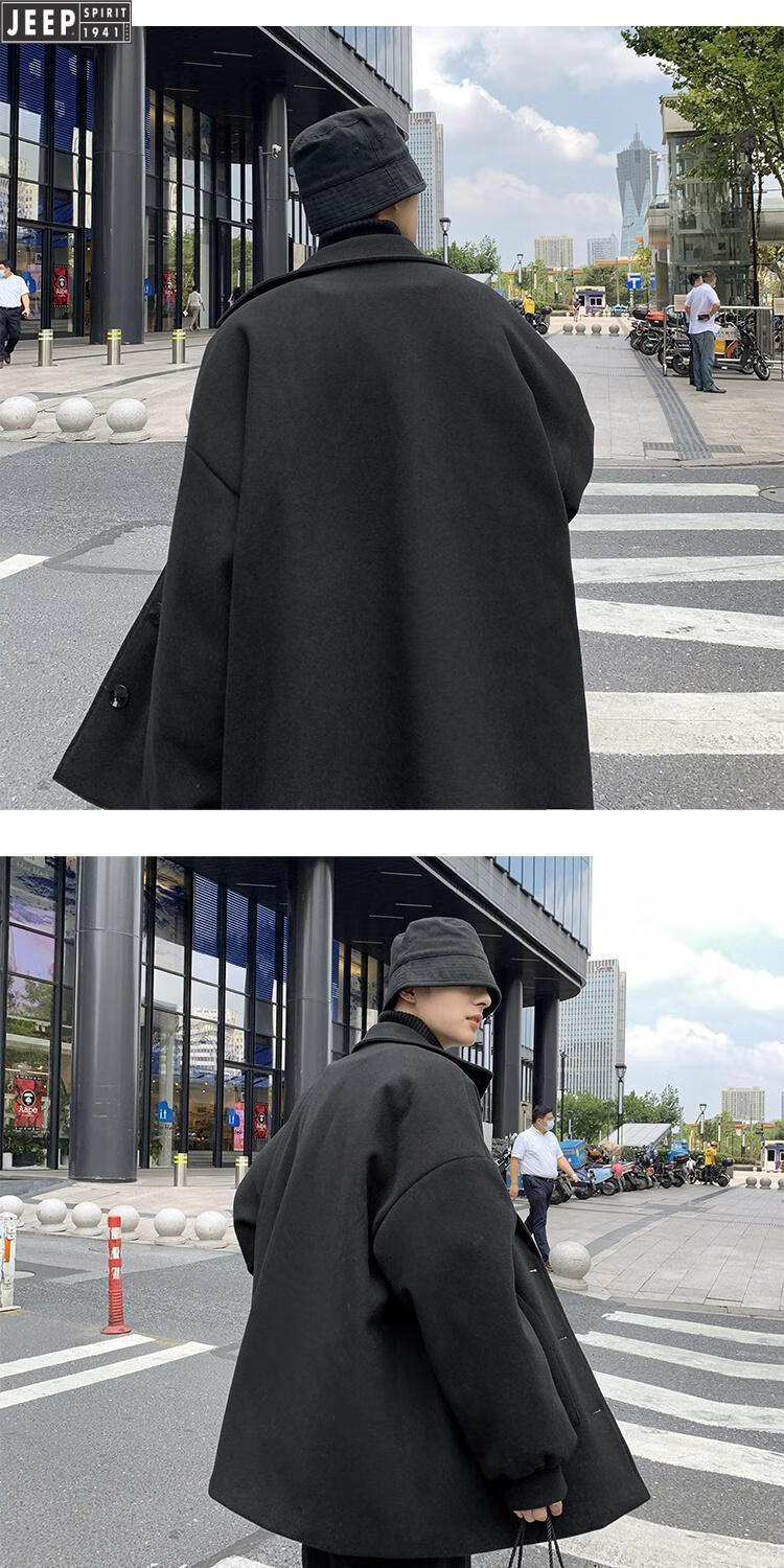 JEEP Men's Casual Windbreaker Spring and Autumn British Style Short Woolen Jacket Trendy Men Youth Loose and Handsome Brand Men's Clothing Black XL Follow the store for priority delivery