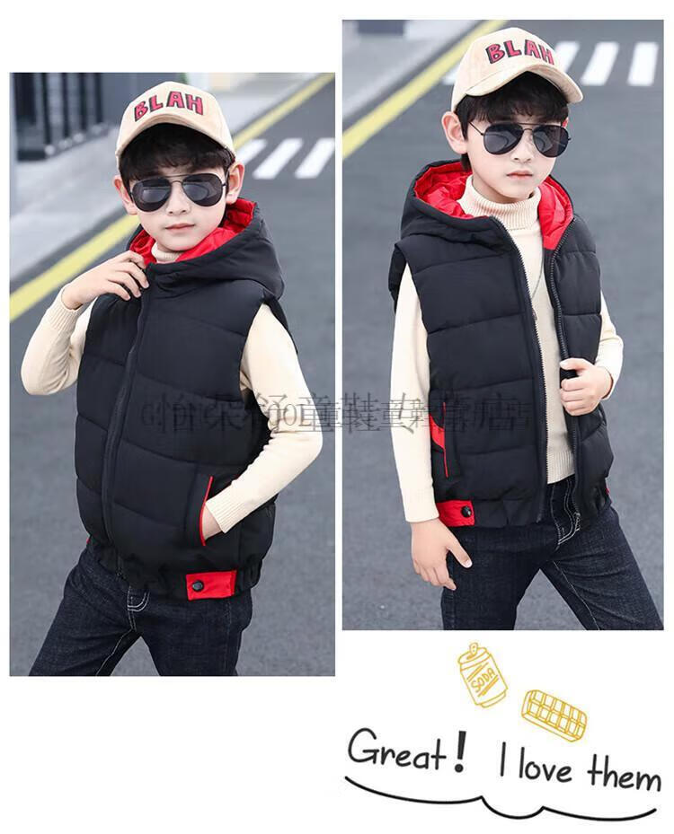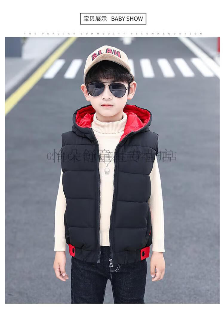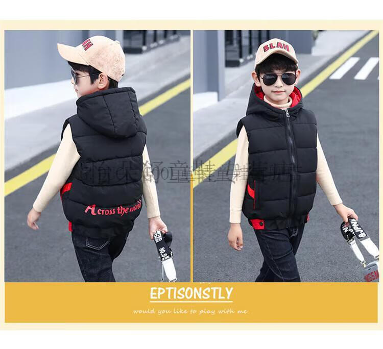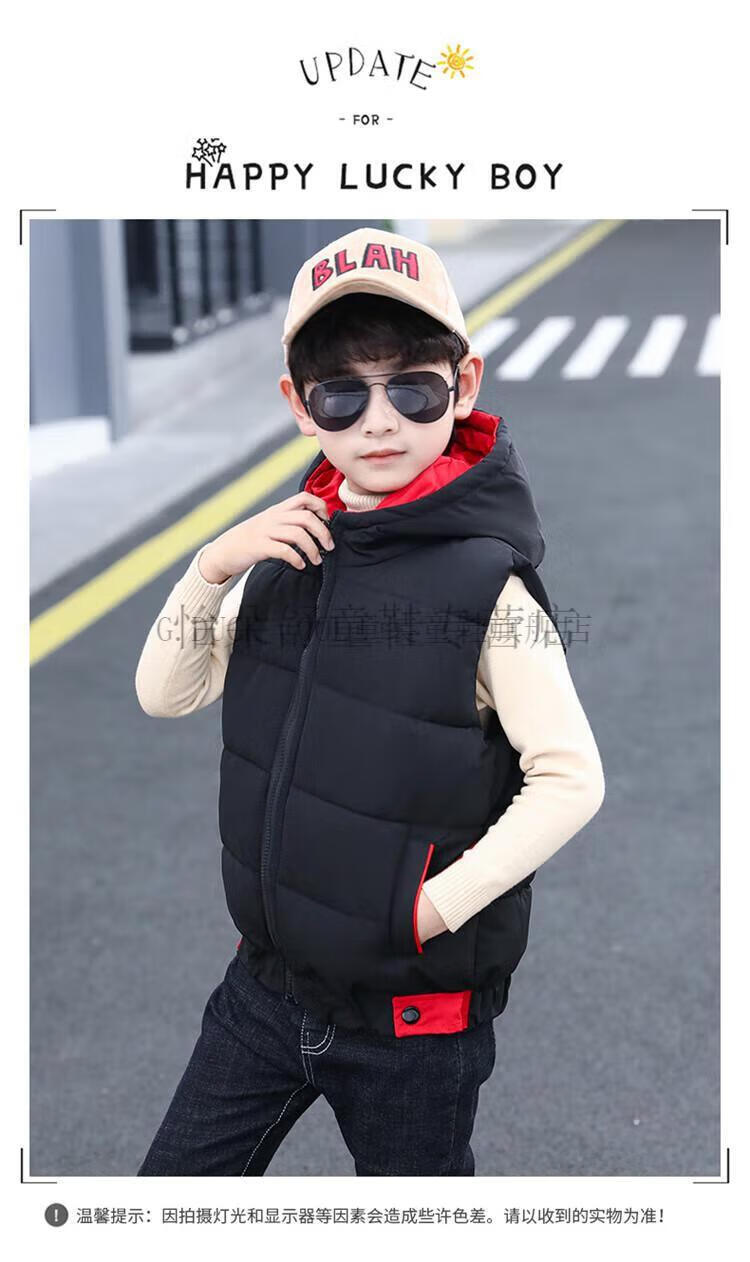 G.DUCKKIDS boys' vest autumn and winter children's vest outer wear thickened warm winter cotton jacket boy handsome student clothes black 160