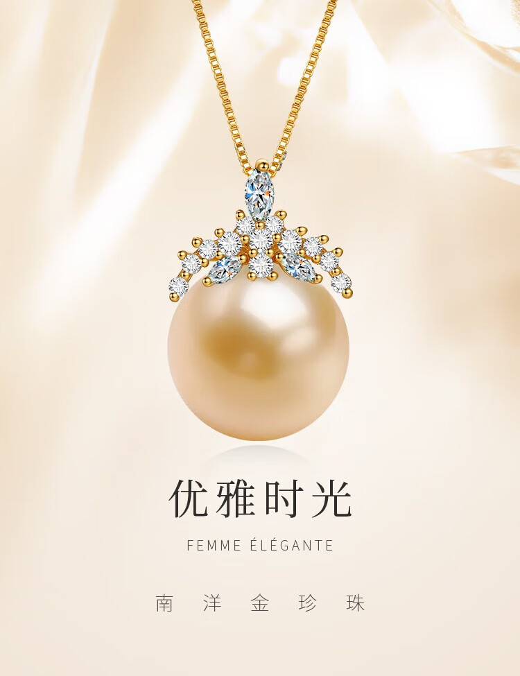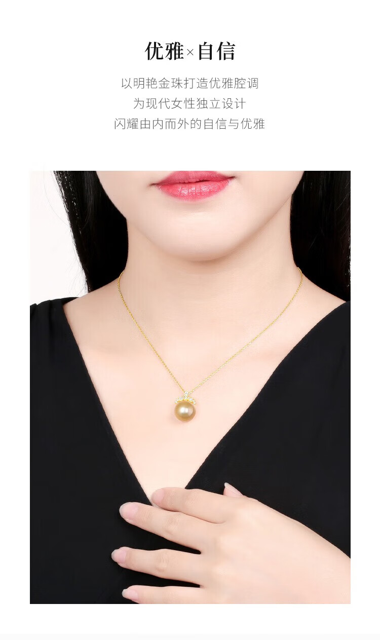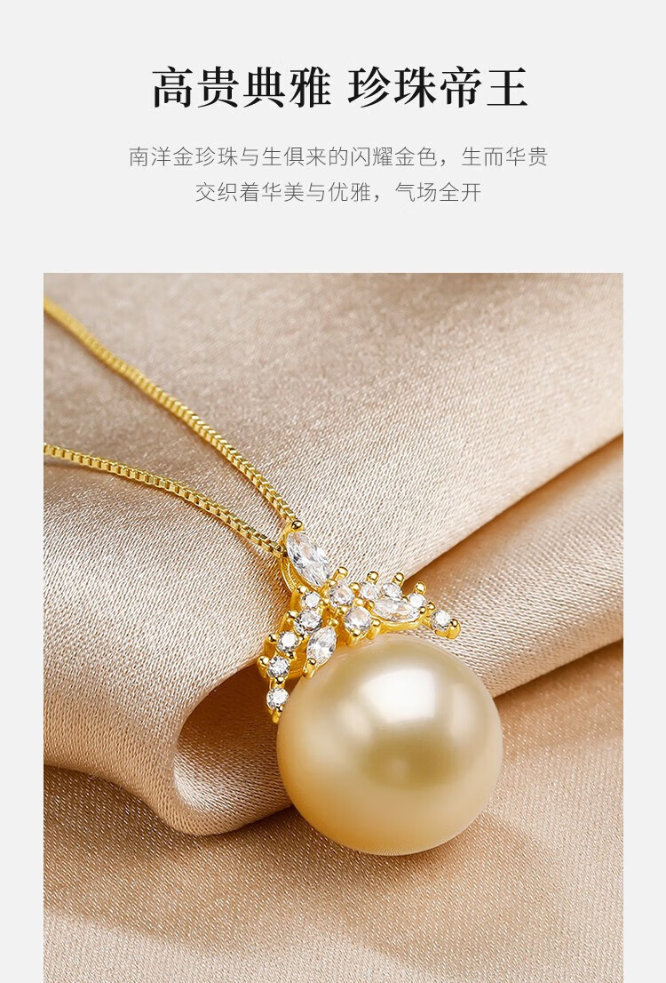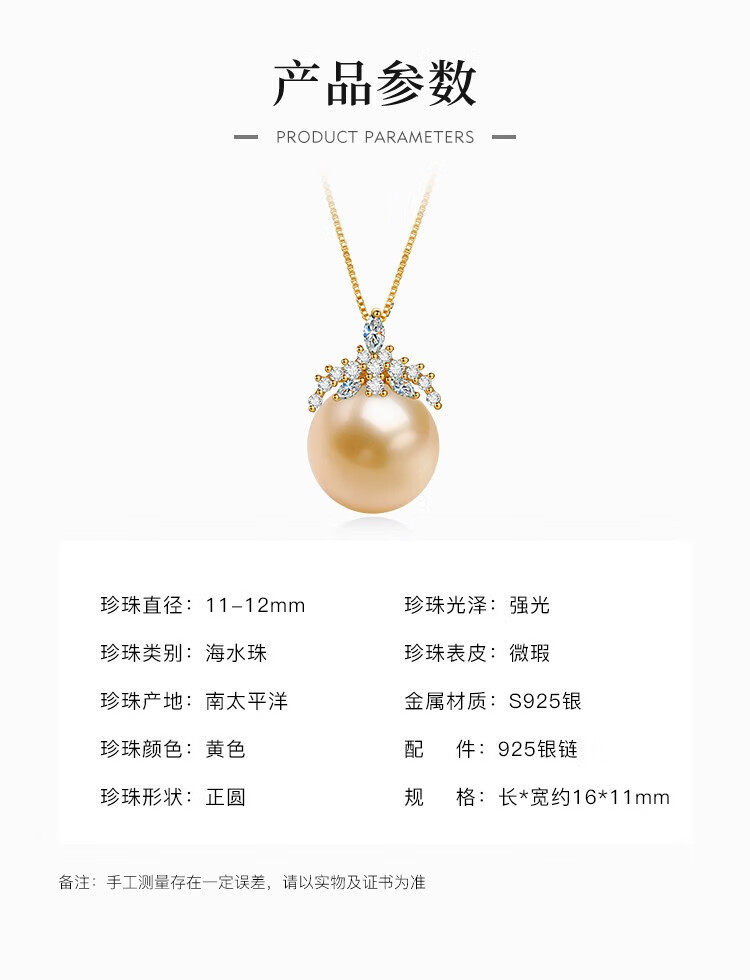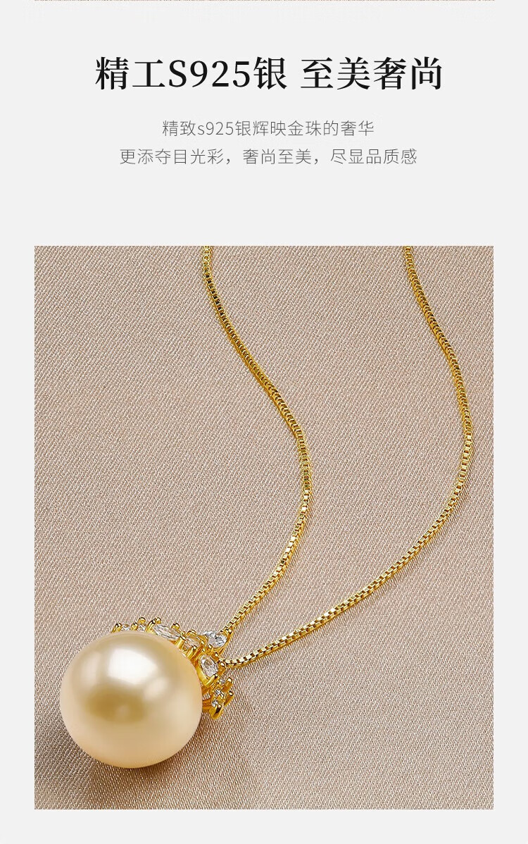 Queen of Pearls 11-12mm strong light and delicate South Sea gold pearl pendant seawater pearl necklace birthday gift for wife