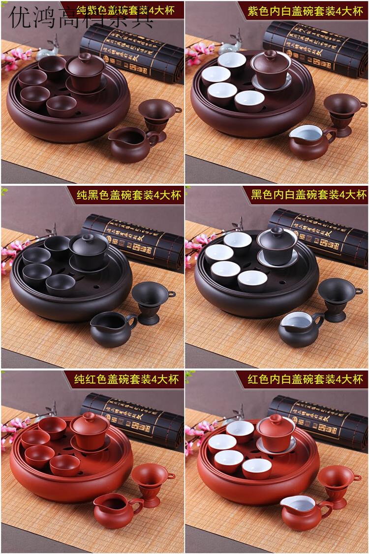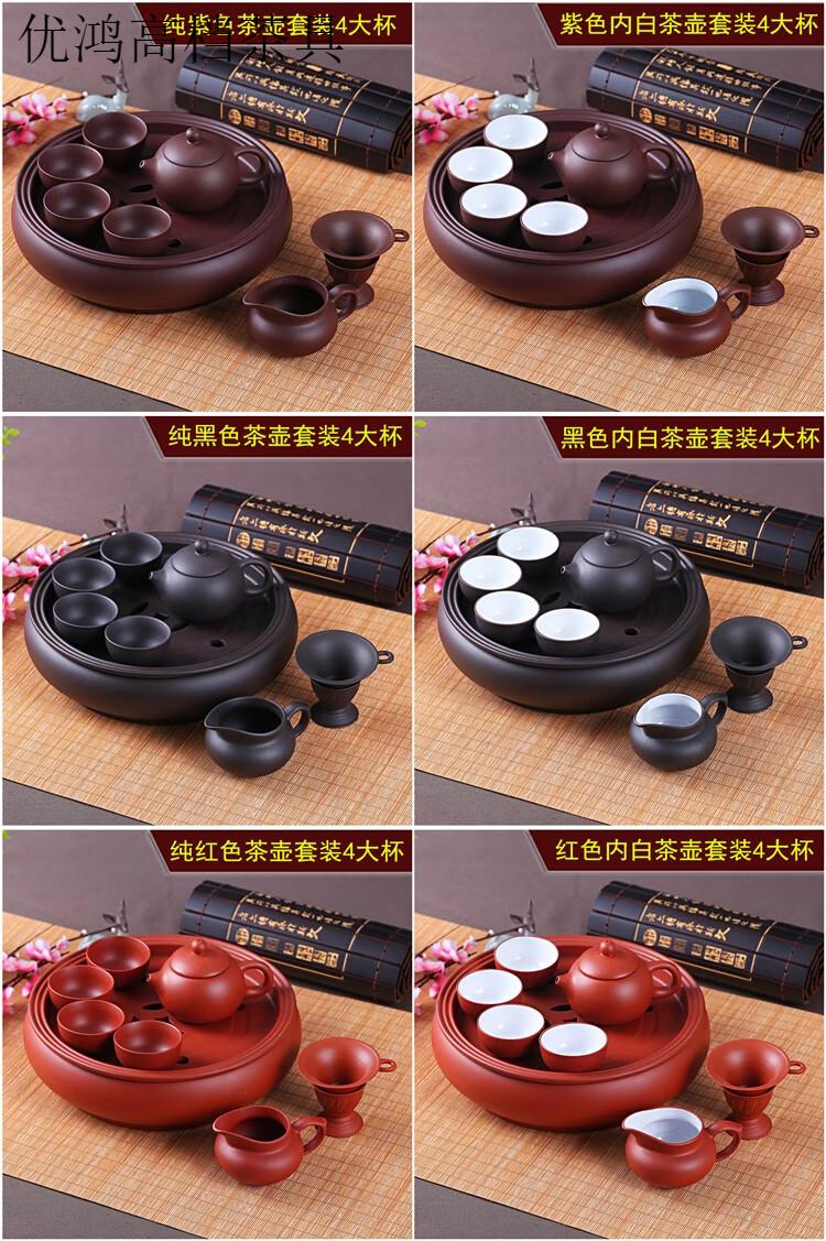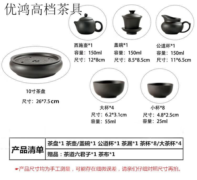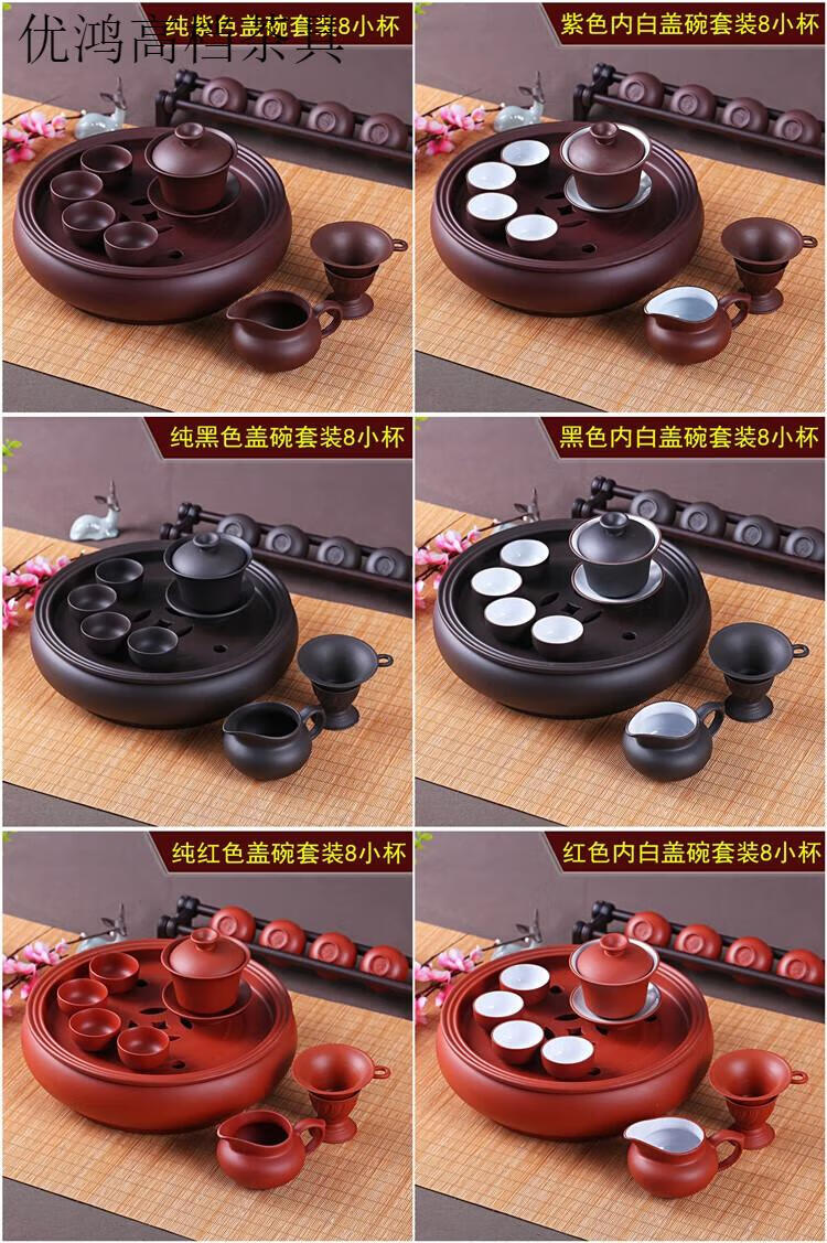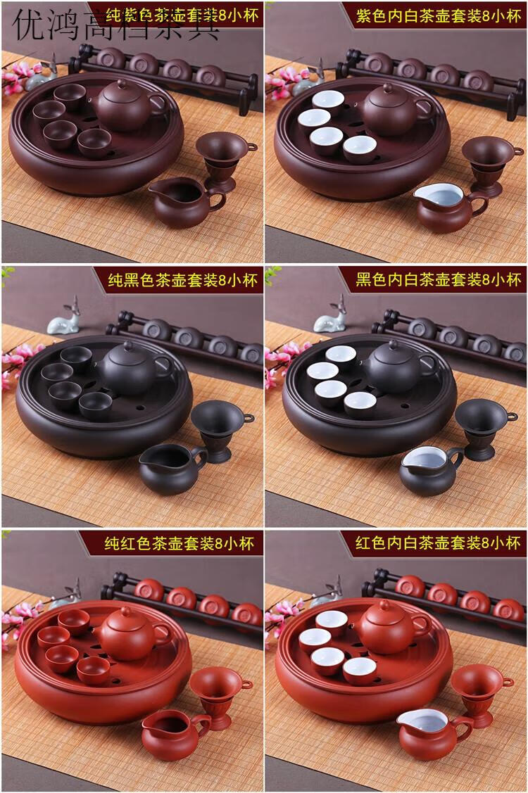 Jingdezhen (jdz) tea set high-end Kung Fu tea set modern purple clay tea set tea cup teapot tea tray set pure purple teapot set 8 small cups + six gentlemen