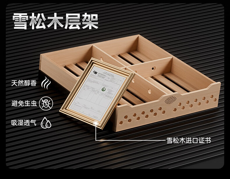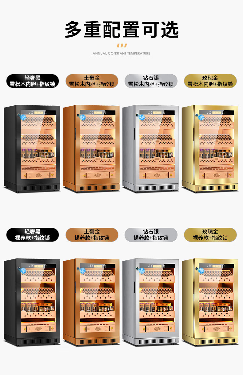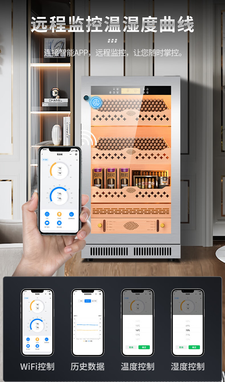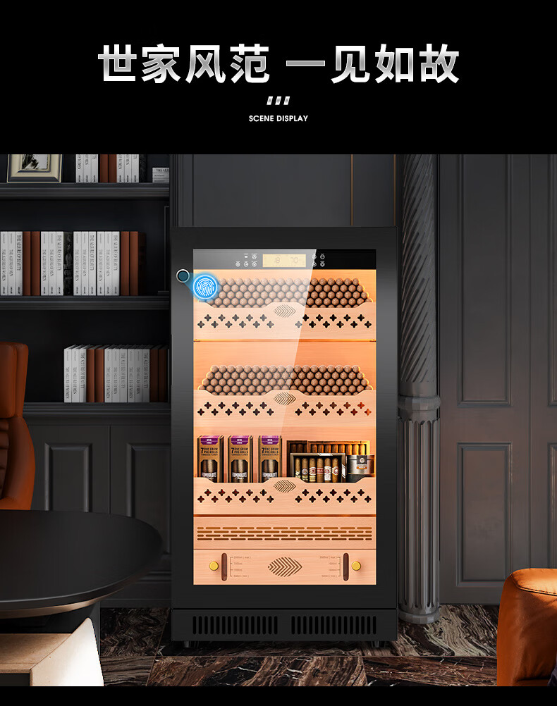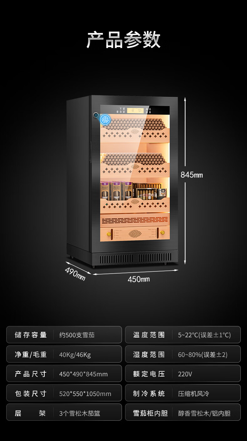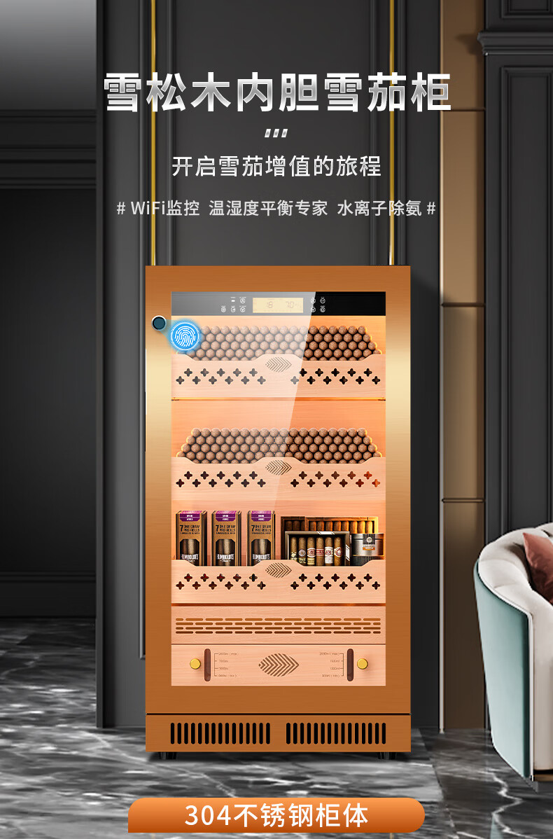 FUKE FK-22C cigar cabinet household cedar wood liner shelf variable frequency air-cooled frost-free compressor WiFi remote intelligent control fingerprint lock constant temperature and humidity cigar moisturizing smoke cabinet light luxury black cedar wood liner WiFi + purified ammonia + constant temperature and humidity