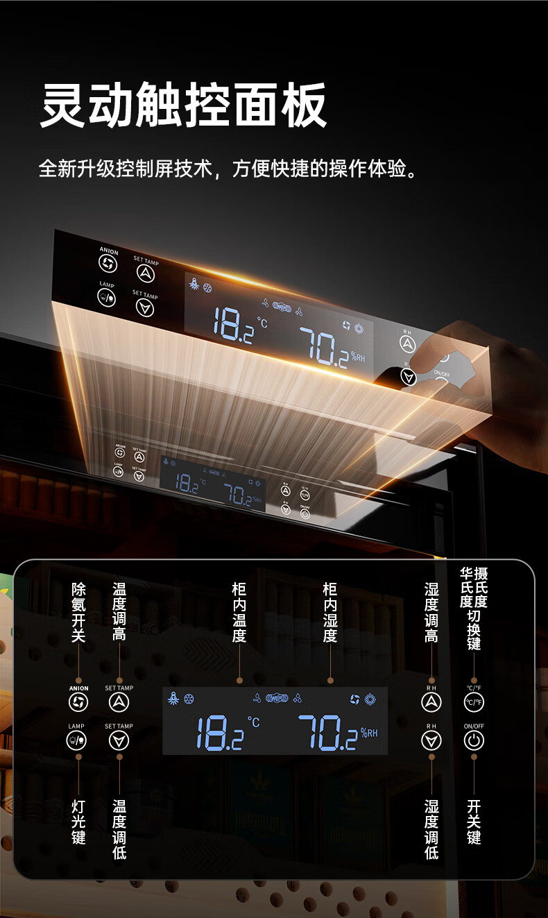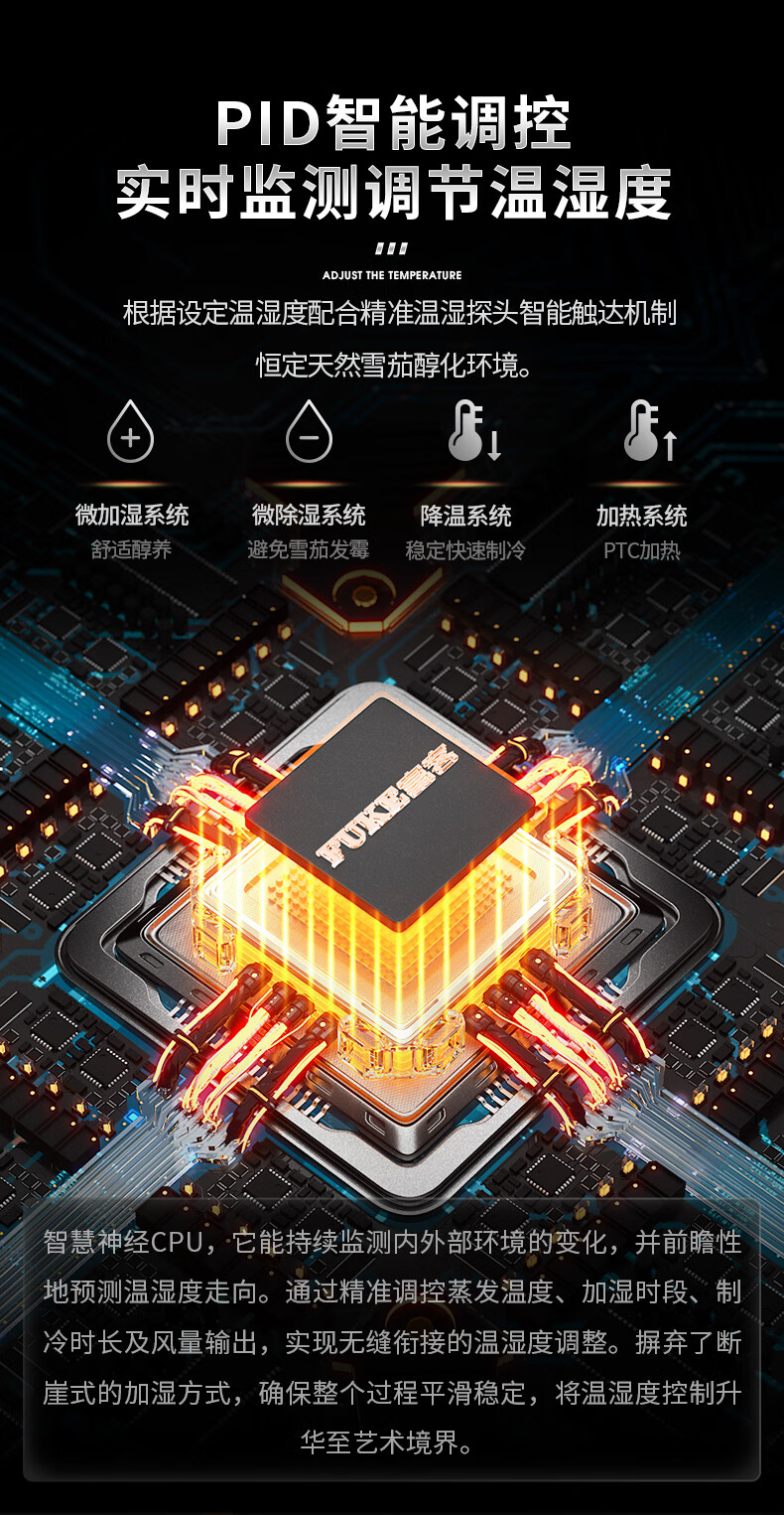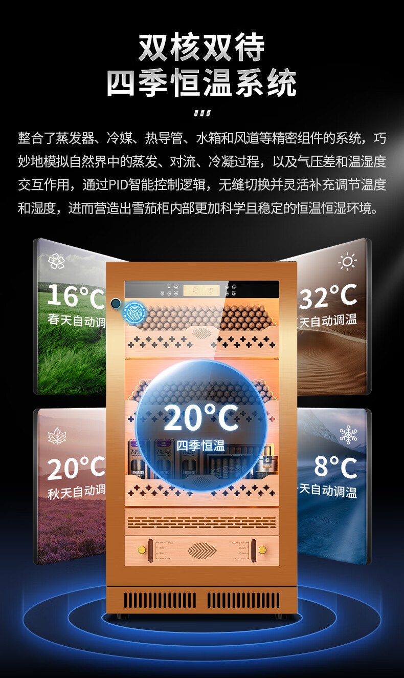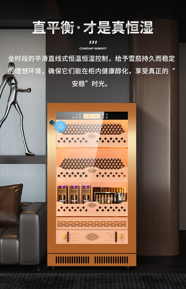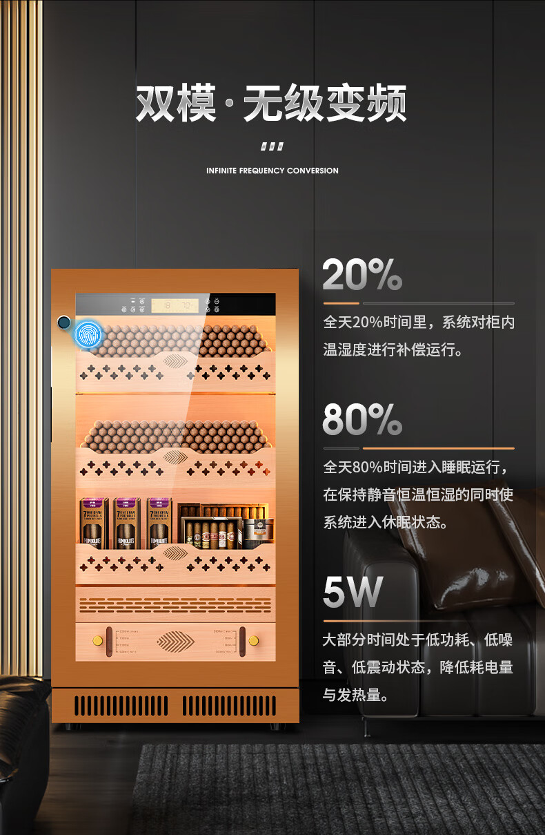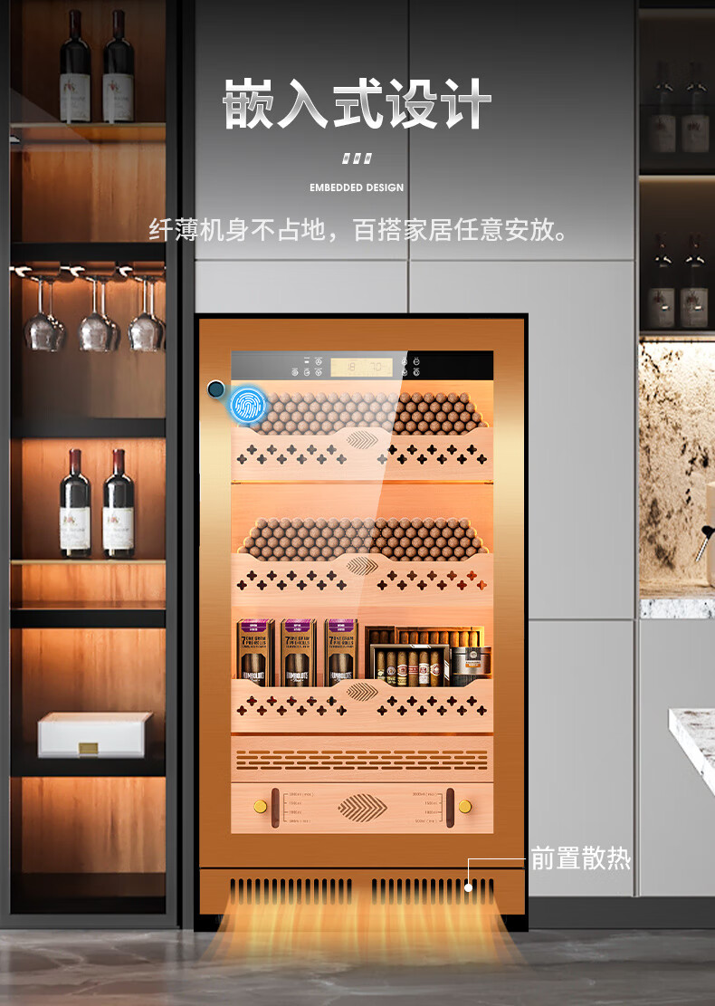 FUKE FK-22C cigar cabinet household cedar wood liner shelf variable frequency air-cooled frost-free compressor WiFi remote intelligent control fingerprint lock constant temperature and humidity cigar moisturizing smoke cabinet light luxury black cedar wood liner WiFi + purified ammonia + constant temperature and humidity