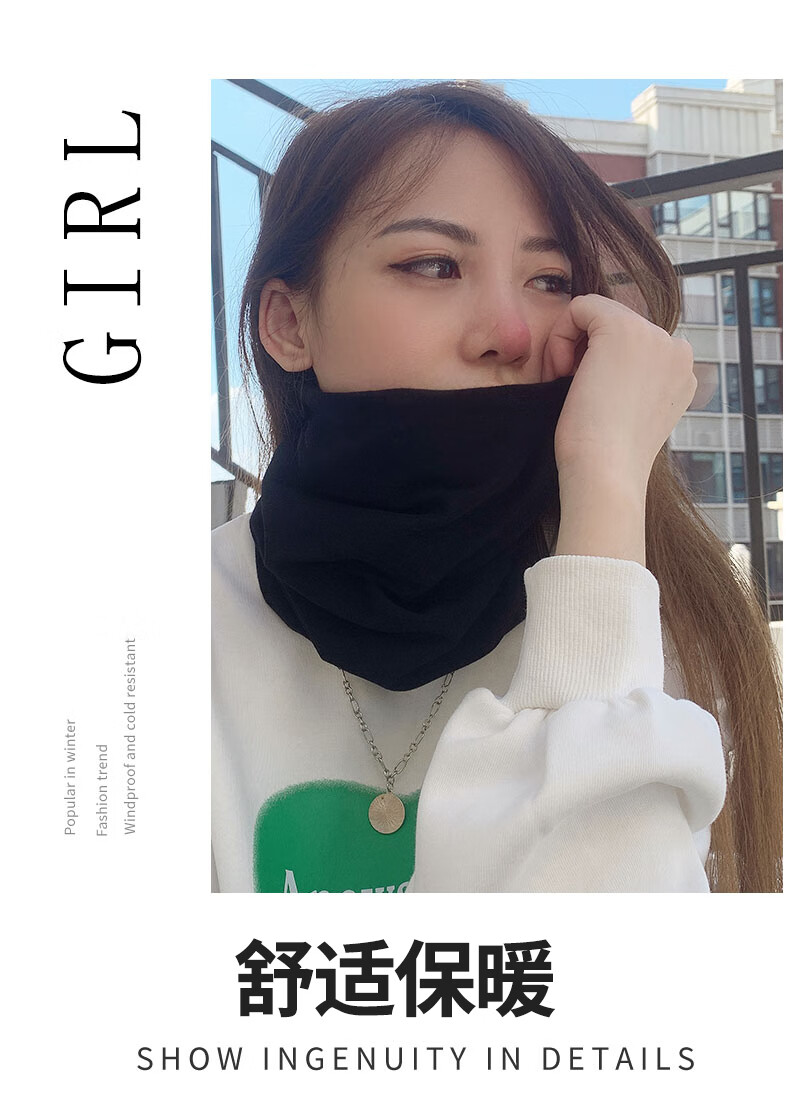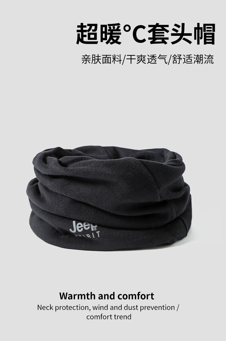 JEEP SPIRIT pure cotton neck gaiter for men, winter warm neck protection, small neck scarf, women's cycling outdoor cold protection scarf, windproof mask, black (pure cotton straight style), one size fits all