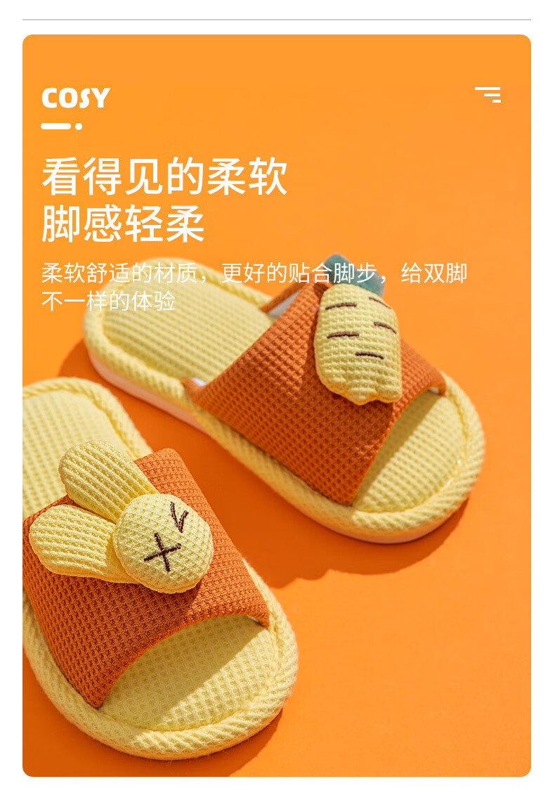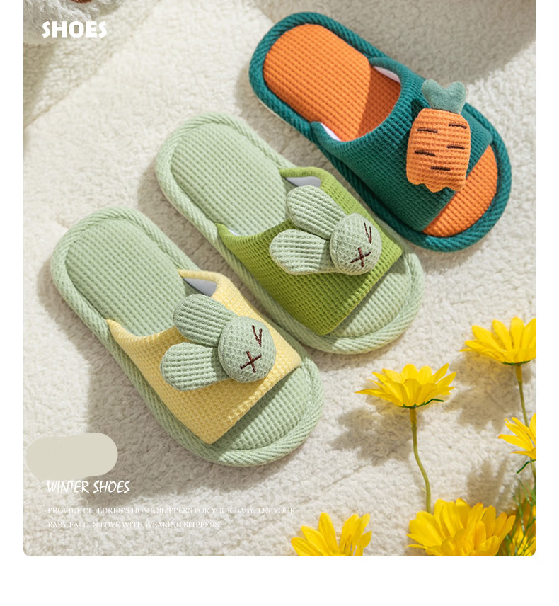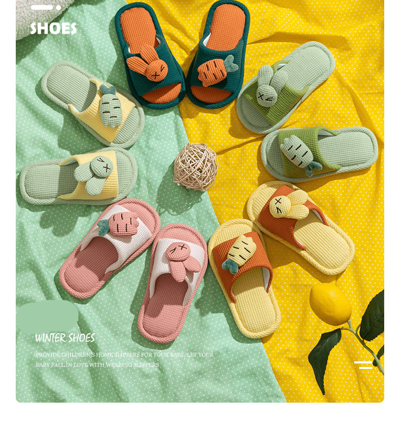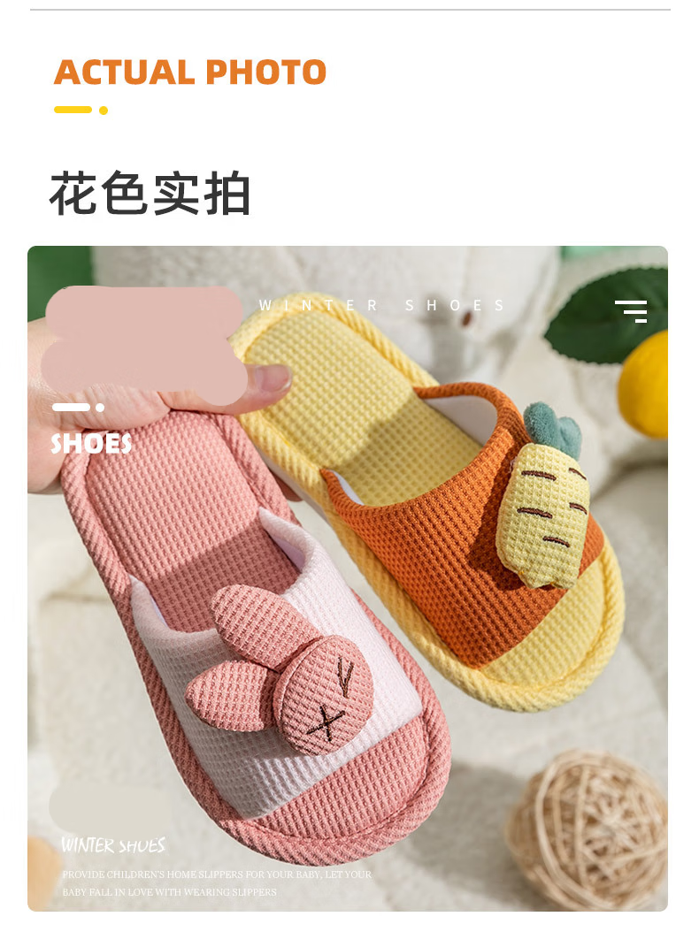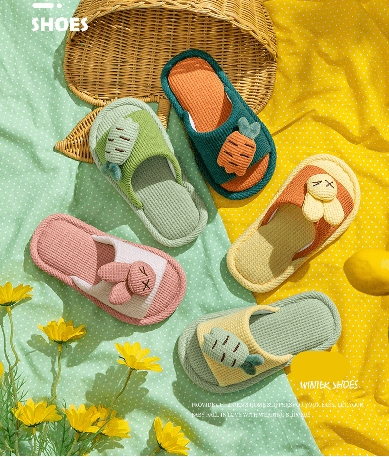 Yuou 2025 New Children's Linen Slippers Parent-child Indoor Silent Slippers Men's and Women's Home Cartoon Cotton and Linen Slippers LXW Carrot Rabbit Opening Pink 24-25 Sizes Inner Length 15CM (Suitable for 2-3 Years Old)
