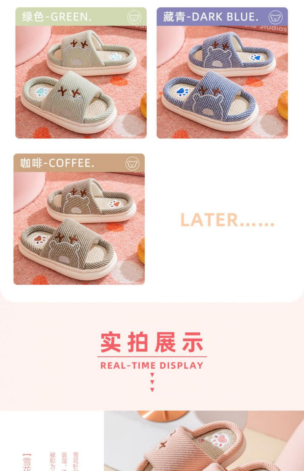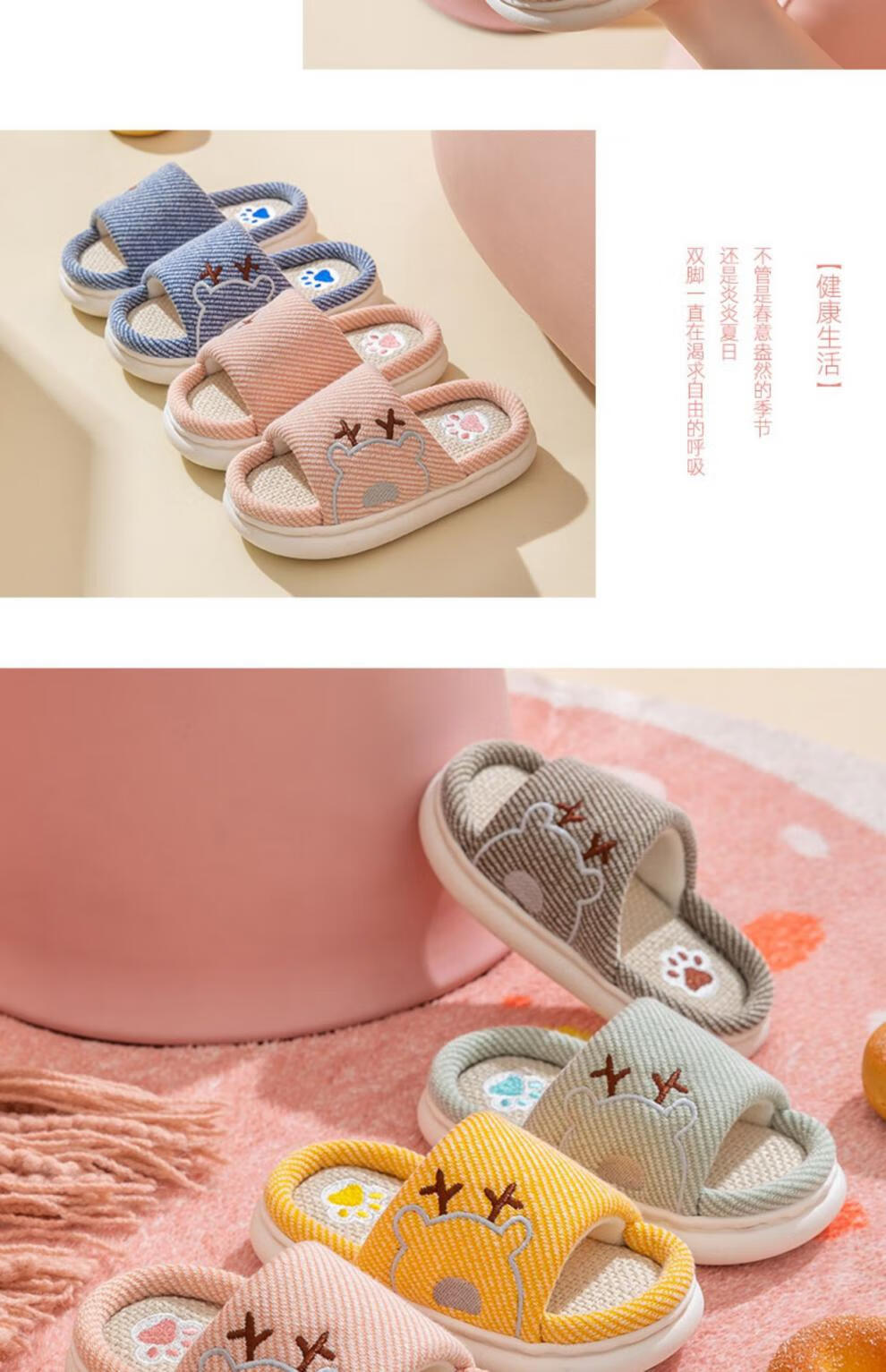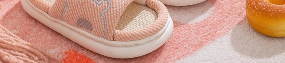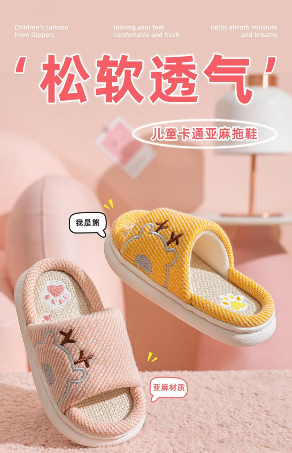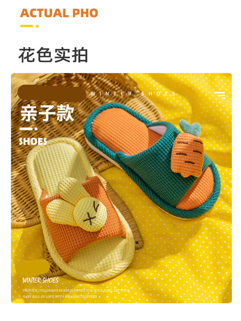 Yuou 2025 New Children's Linen Slippers Parent-child Indoor Silent Slippers Men's and Women's Home Cartoon Cotton and Linen Slippers LXW Carrot Rabbit Opening Pink 24-25 Sizes Inner Length 15CM (Suitable for 2-3 Years Old)