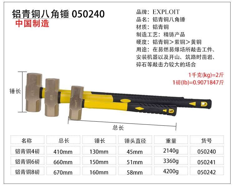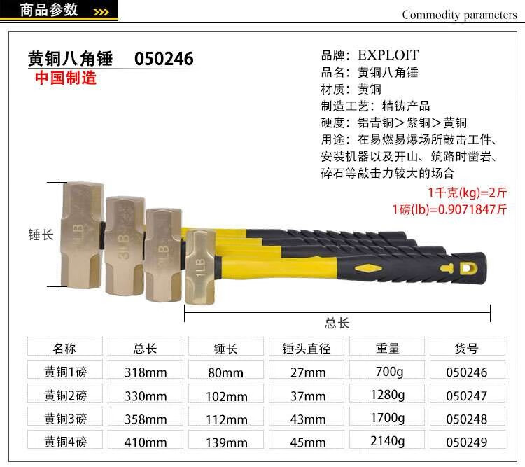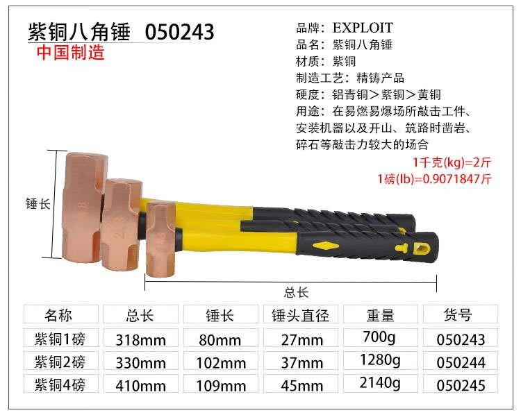 EXPLOIT brass octagonal hammer molded handle copper hammer copper octagonal hammer copper hammer large hammer head pure brass brass 3LB