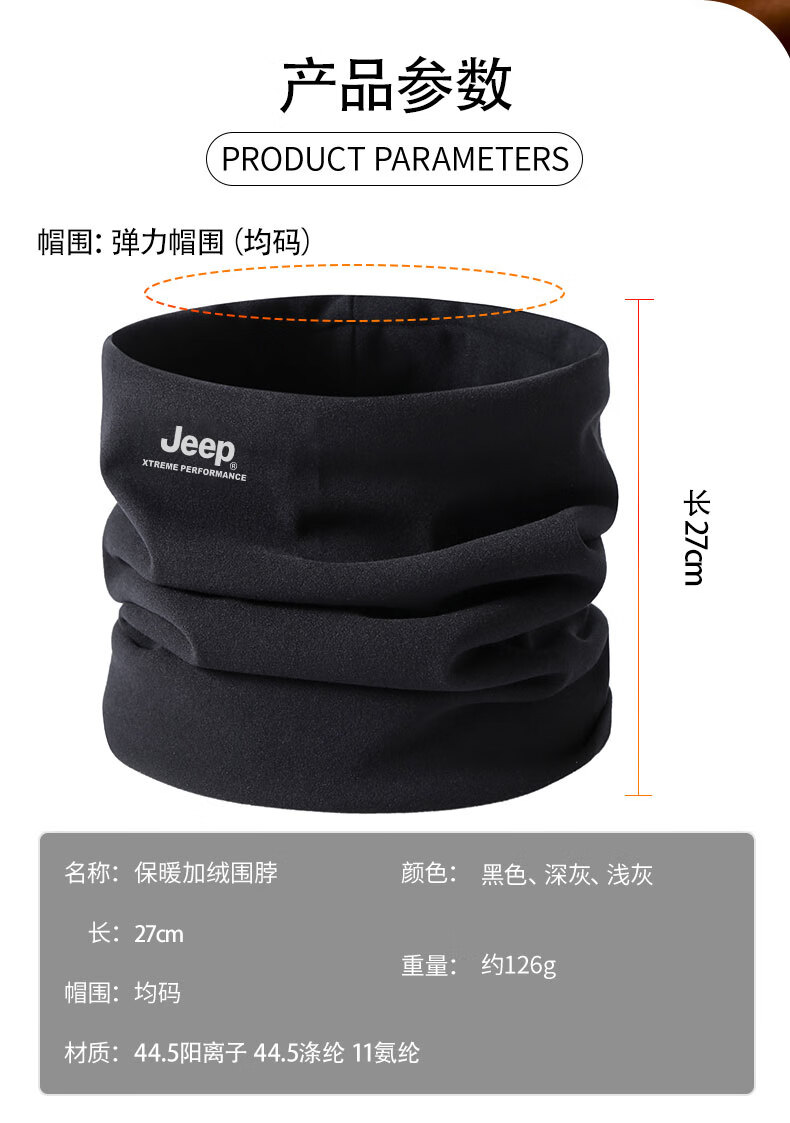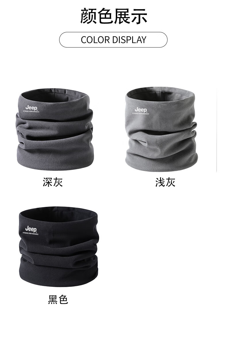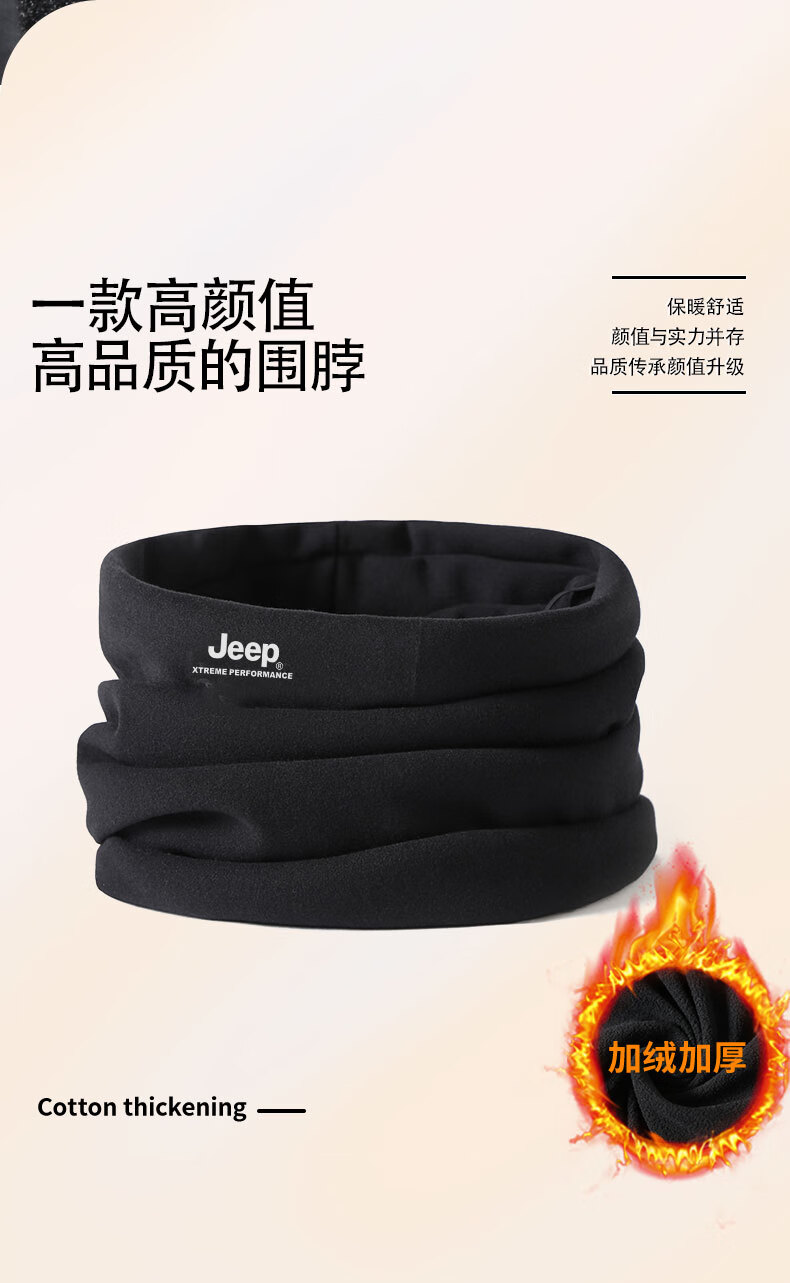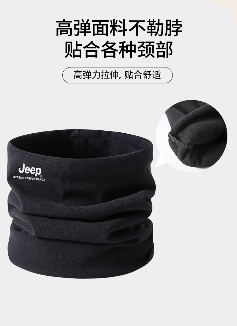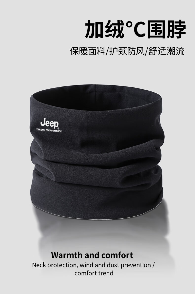 Jeep scarf men's winter cervical vertebrae riding motorcycle windproof mask warm neck protector men's sports scarf women's black (straight style) one size