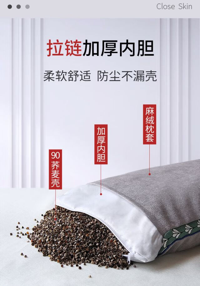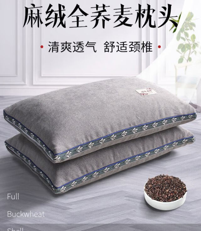 Ye Hanwei linen full buckwheat hull pillow buckwheat pillow large buckwheat hull pillow core long pillow for home use cyan one 4Jin Jin equals 0.5kg buckwheat 35*55cm