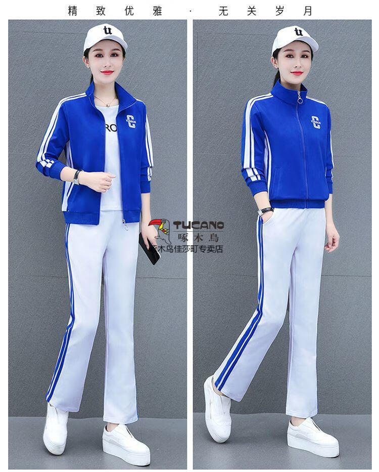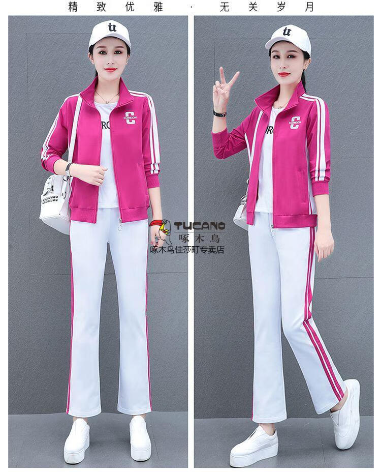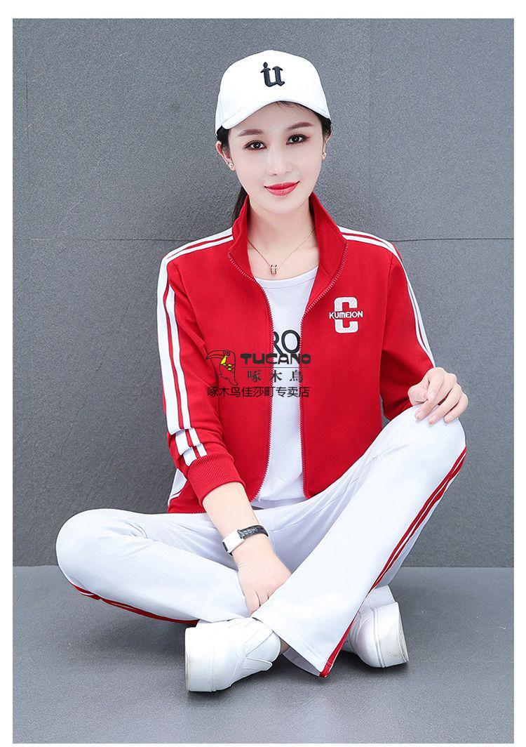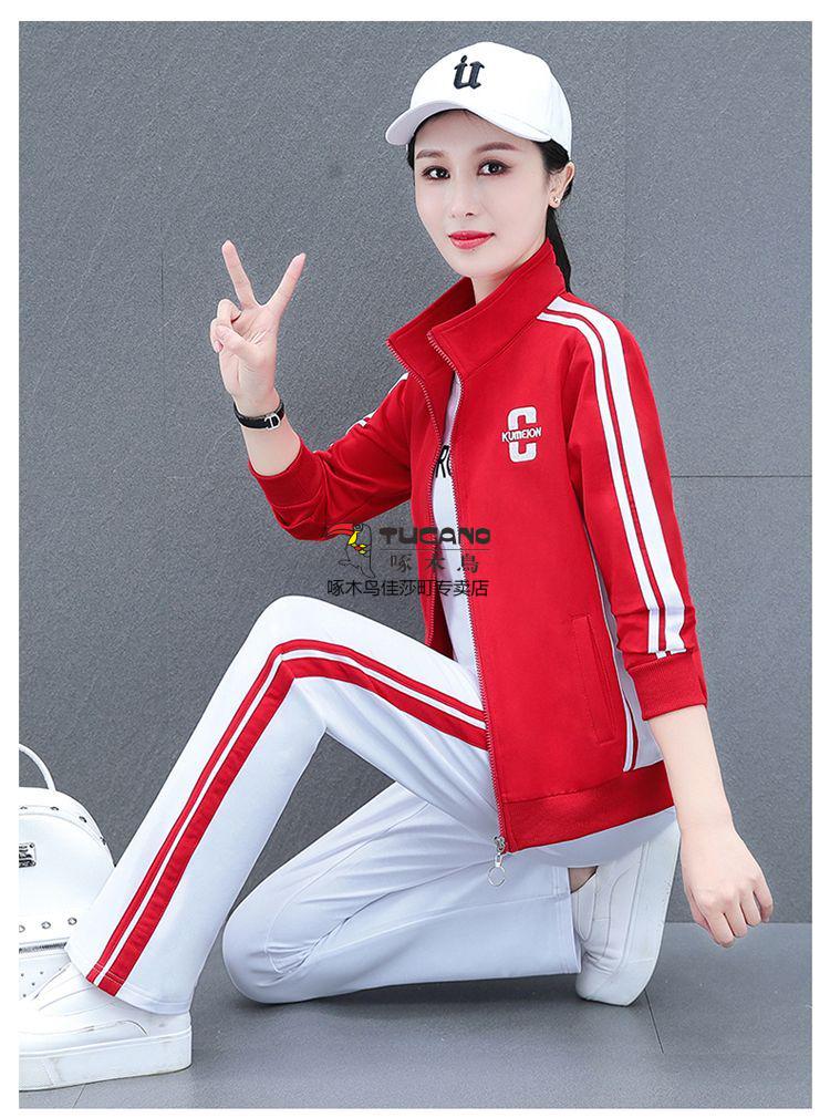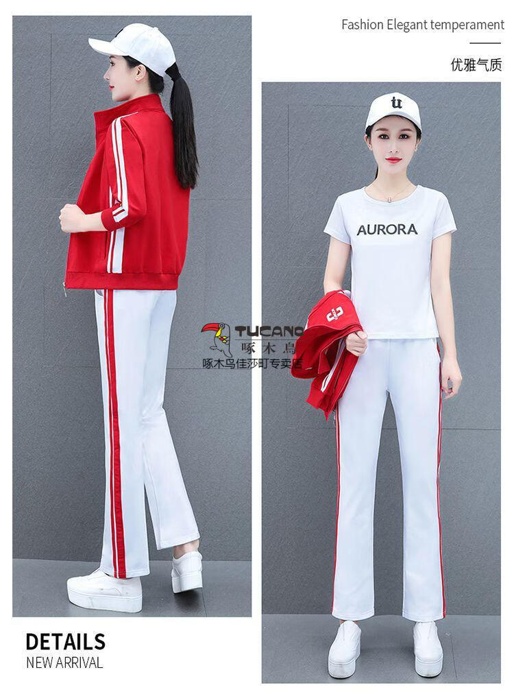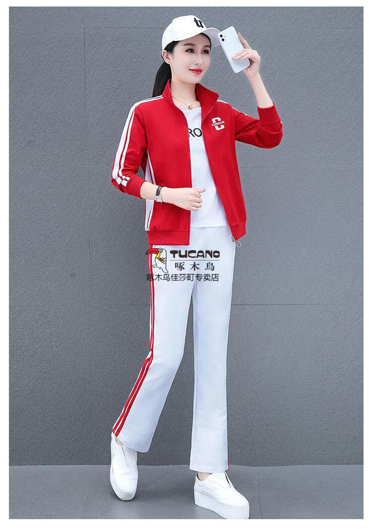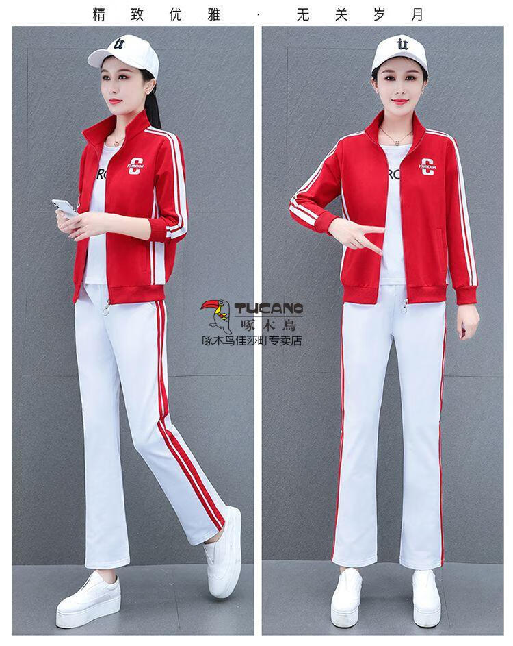 Playboy Fashion Women's Casual Sportswear Suit Women's Autumn Square Dance Clothing Fashion Three-piece Set Red White Pants Three-piece Set 2XL 125-140Jin Jin equals 0.5 kg
