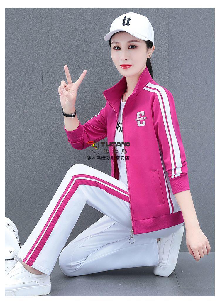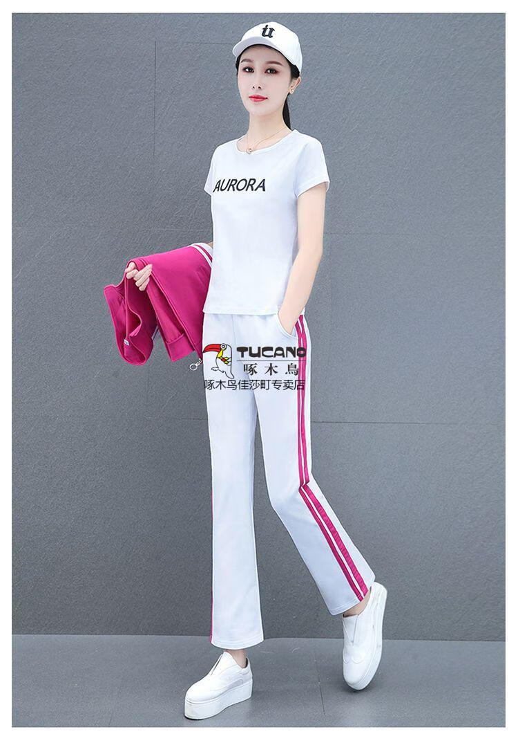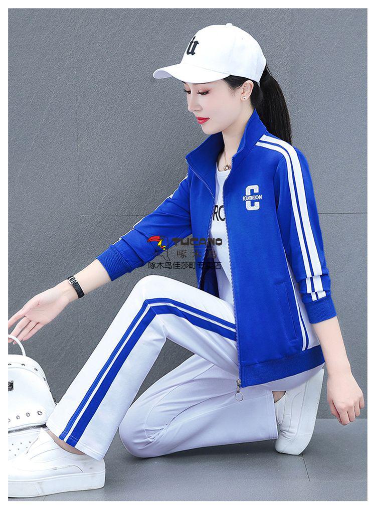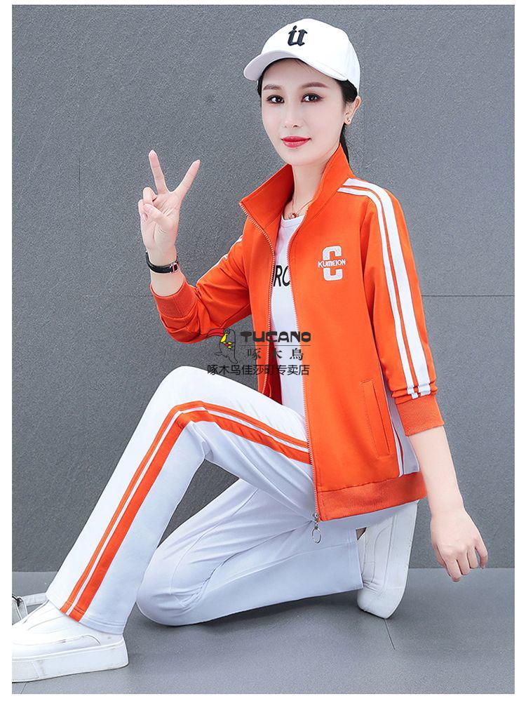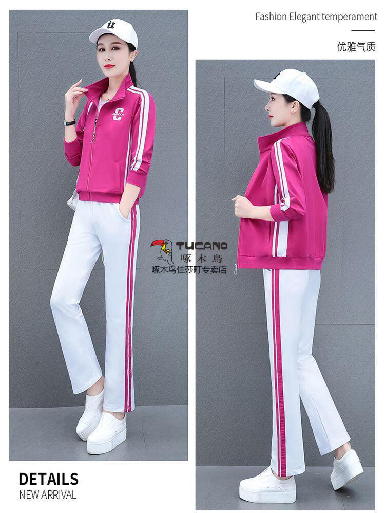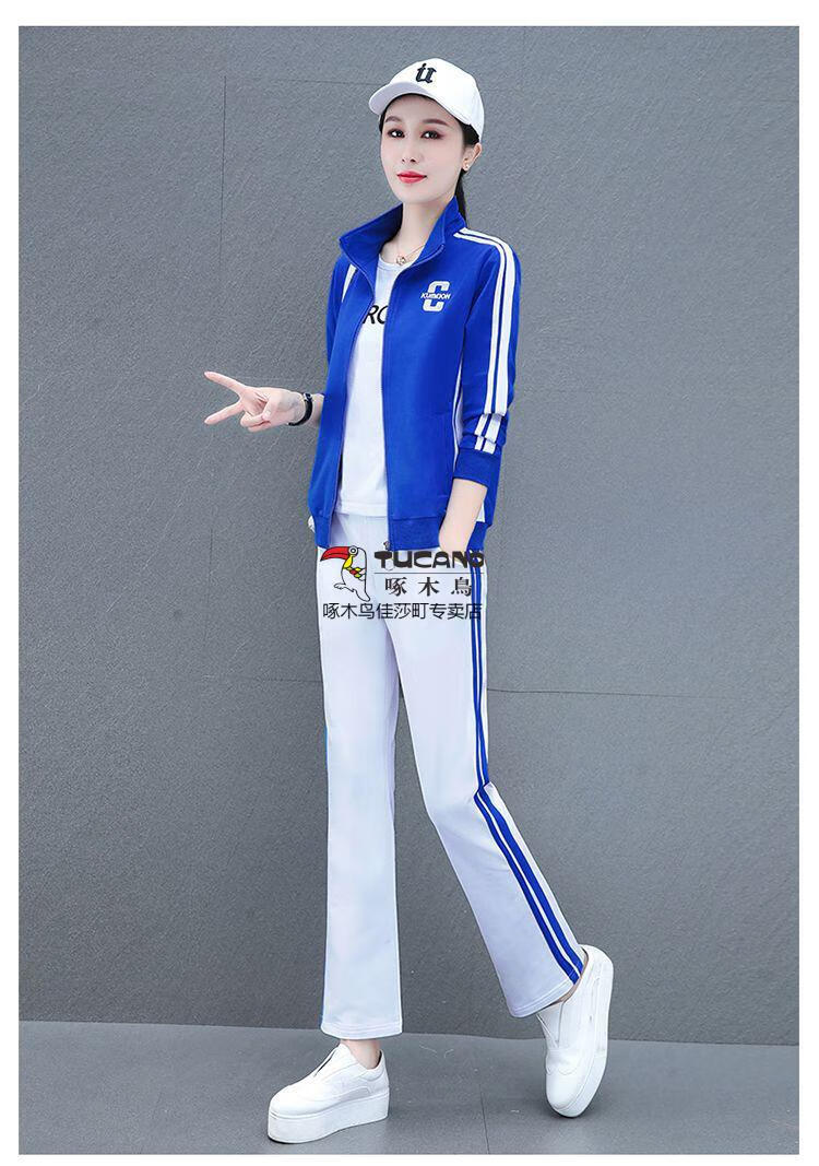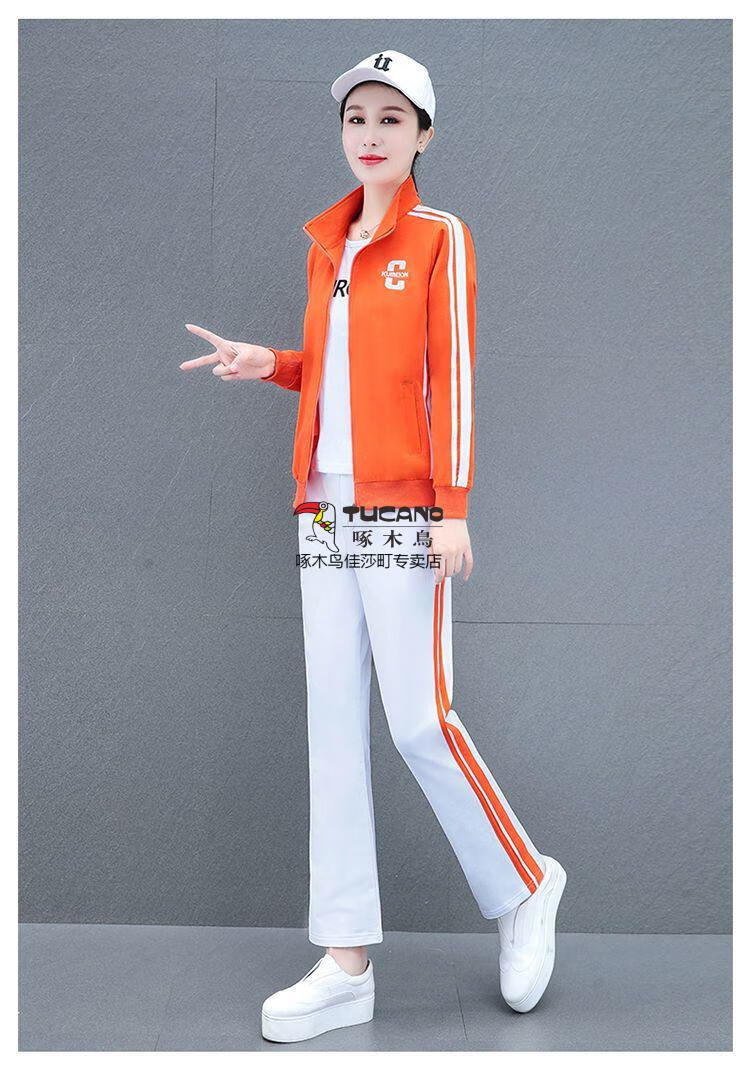 Playboy Fashion Women's Casual Sportswear Suit Women's Autumn Square Dance Clothing Fashion Three-piece Set Red White Pants Three-piece Set 2XL 125-140Jin Jin equals 0.5 kg