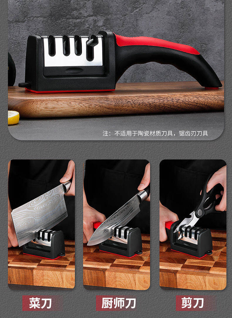 Jidaocook Multifunctional Knife Sharpening Artifact New Household Kitchen Knife Scissors Sharpener Universal Whetstone Quick Sharpening Red and Black #Fourth Gear # Anti-Slip Knife Sharpener