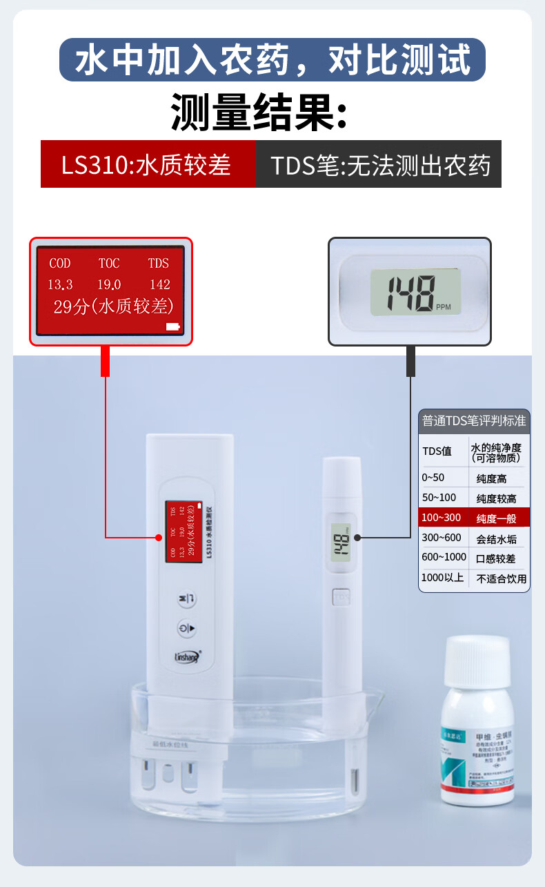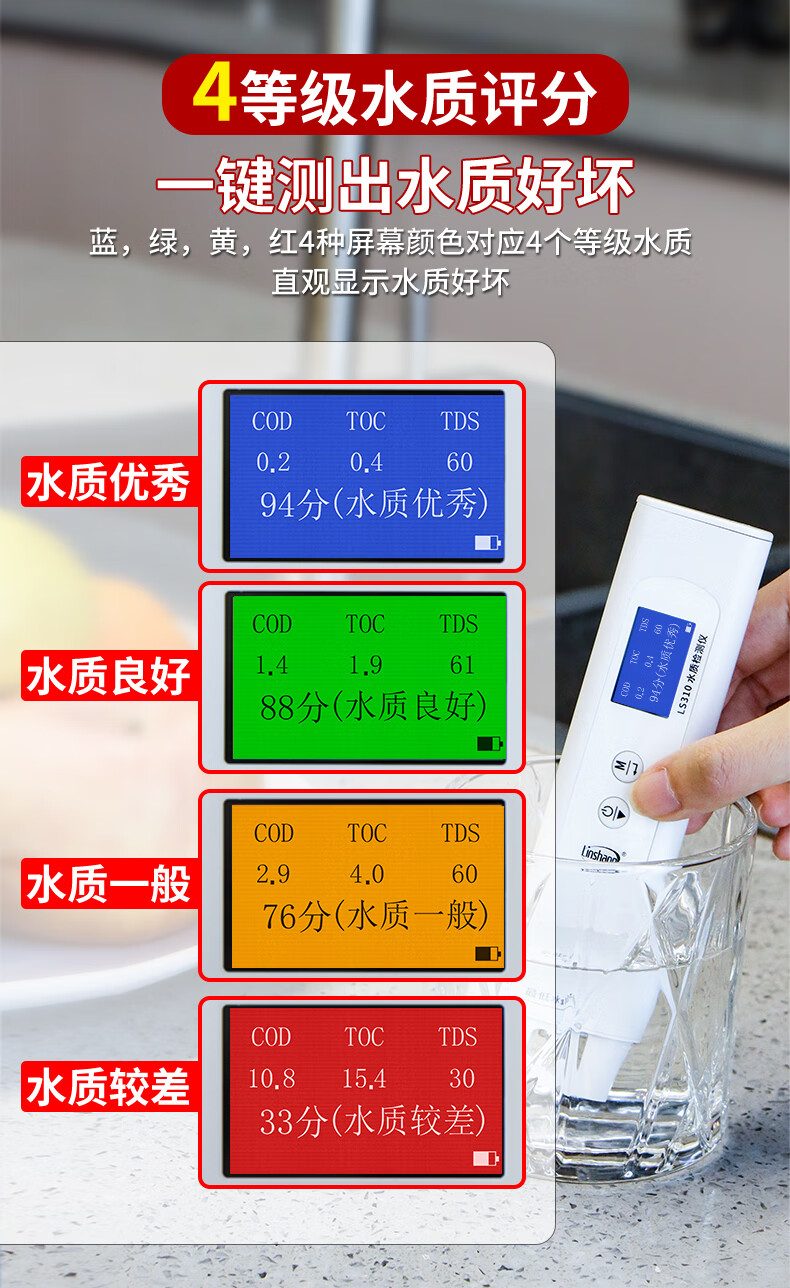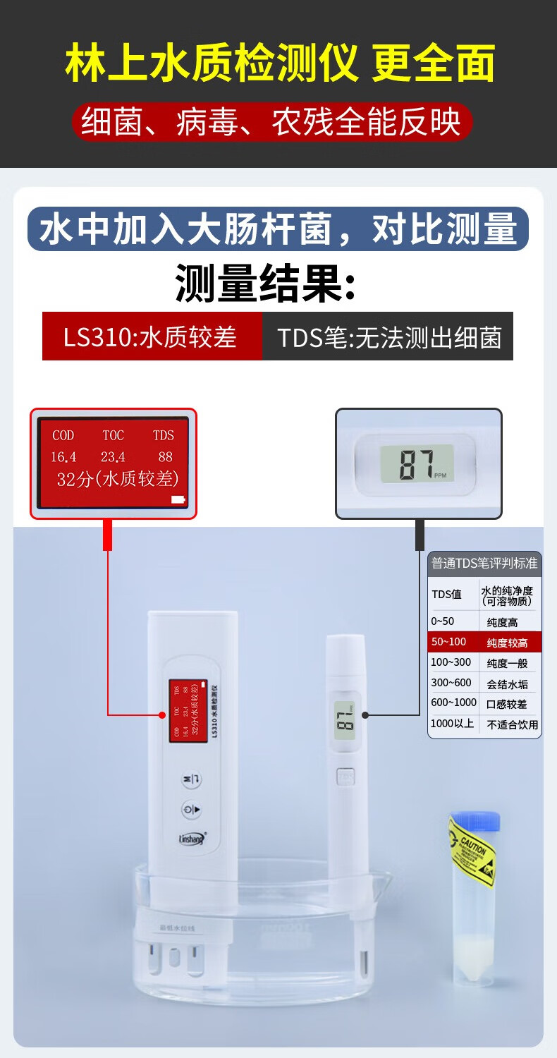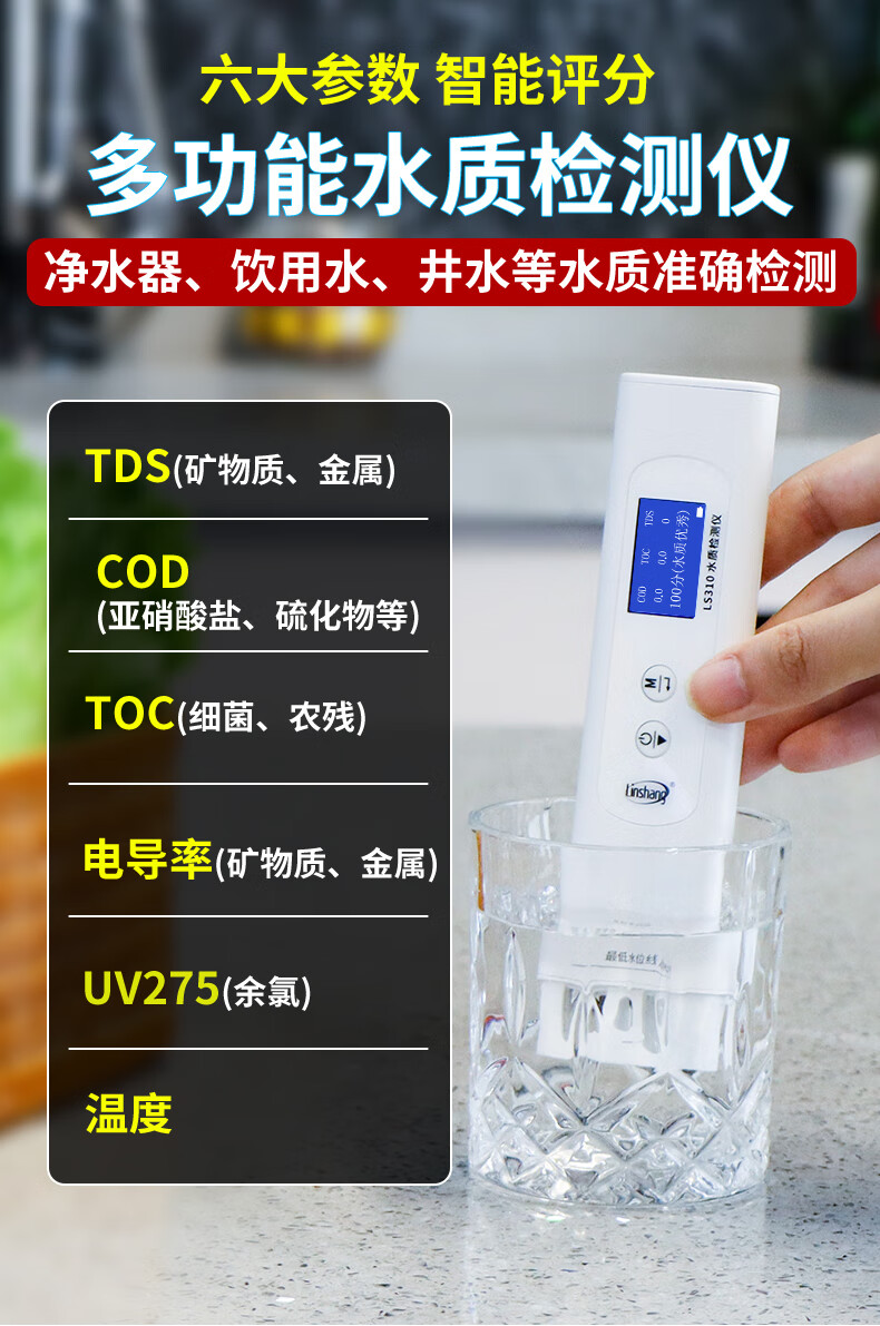 Linshang high-precision water quality detector multi-functional pen-type TDS conductivity meter household pure tap water test LS310 can measure six indicators, national metrology certification