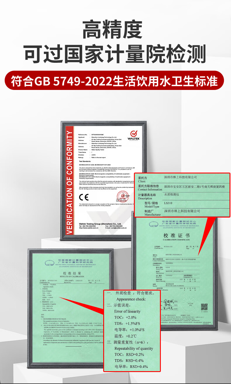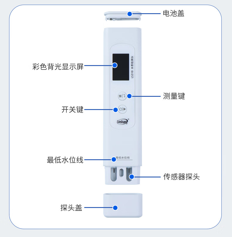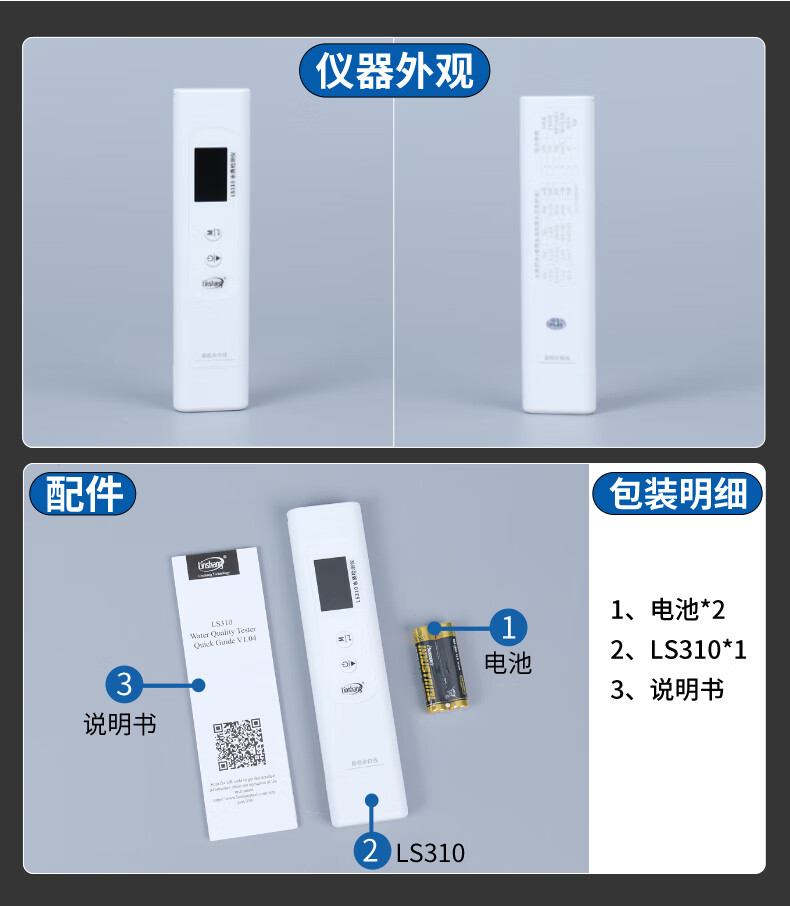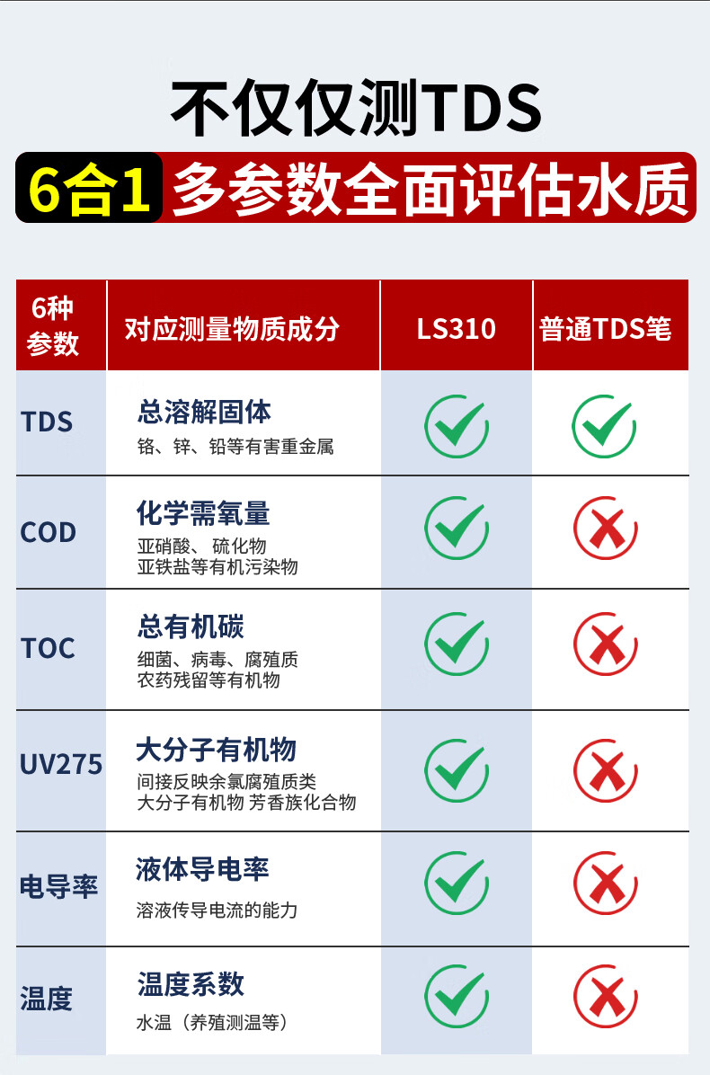 Linshang high-precision water quality detector multi-functional pen-type TDS conductivity meter household pure tap water test LS310 can measure six indicators, national metrology certification