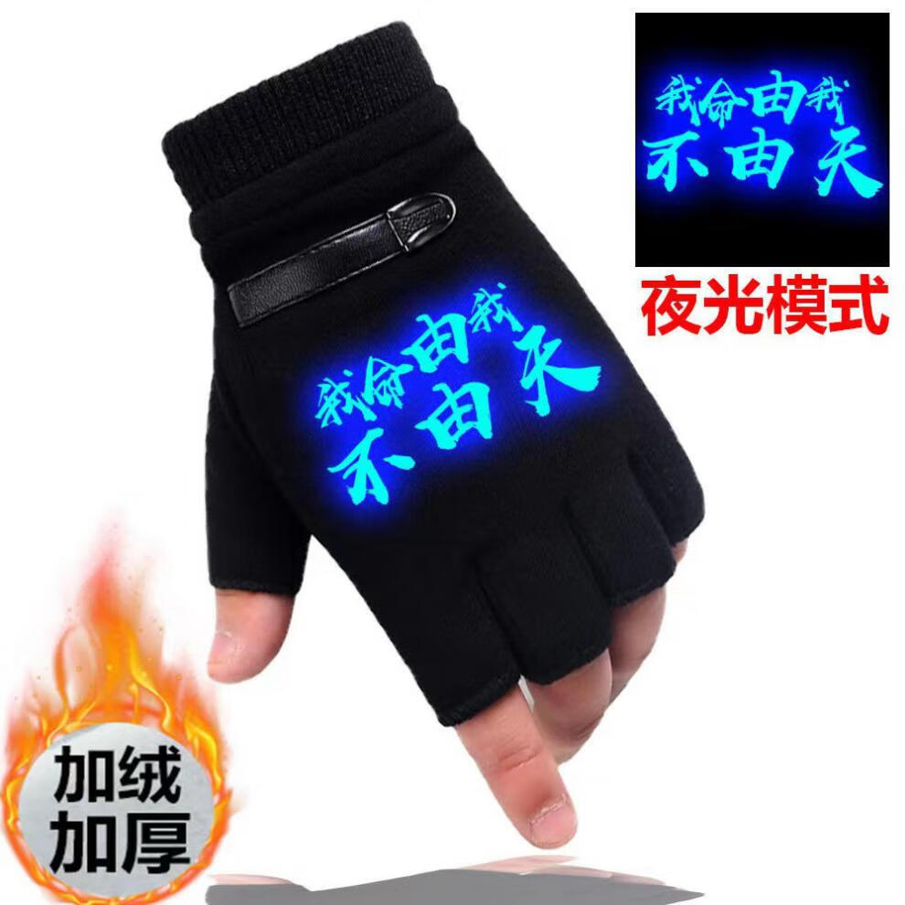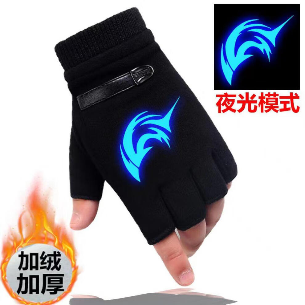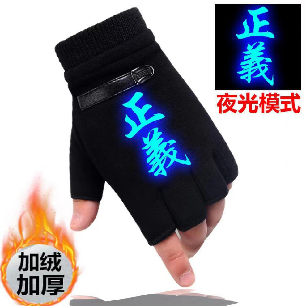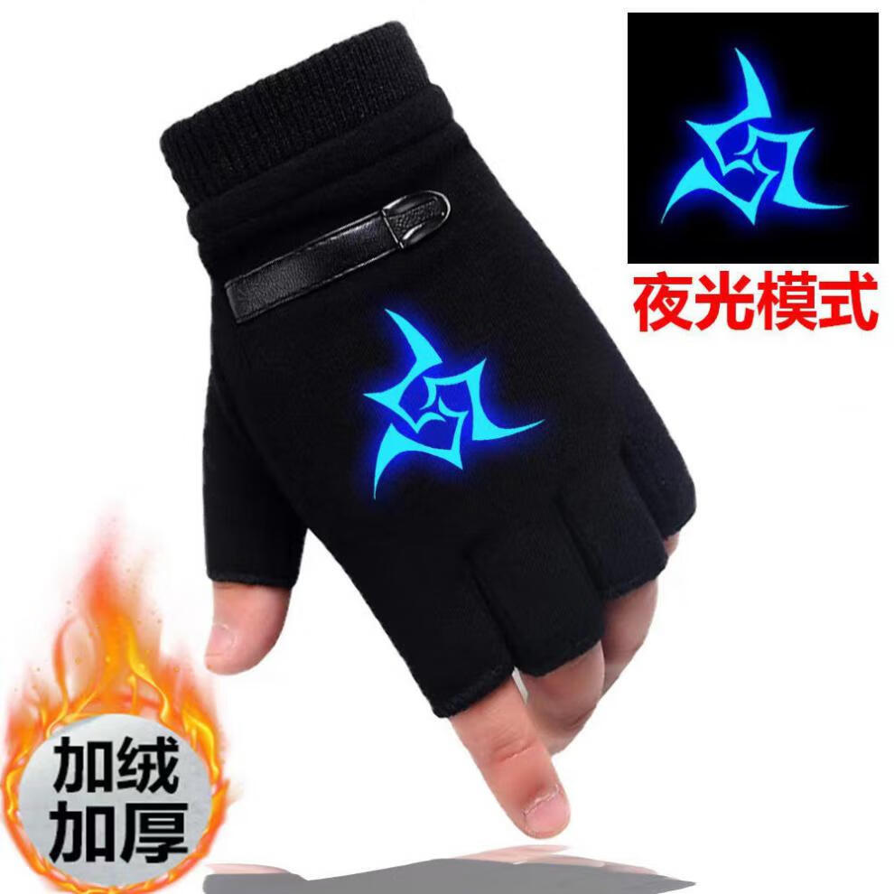 SKONWAT children's gloves, boys' five-finger and half-finger winter, older children's writing, boys and children, plus velvet to keep students warm, luminous fire shadow 1
