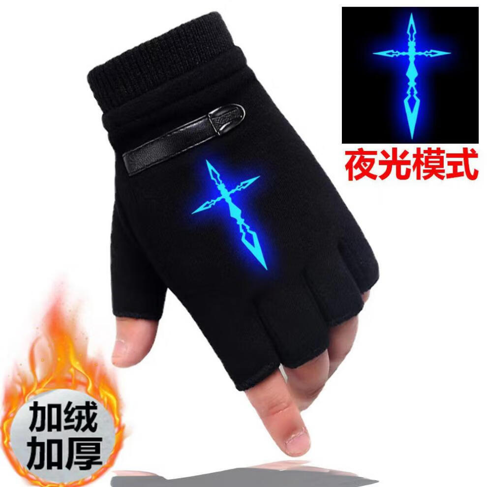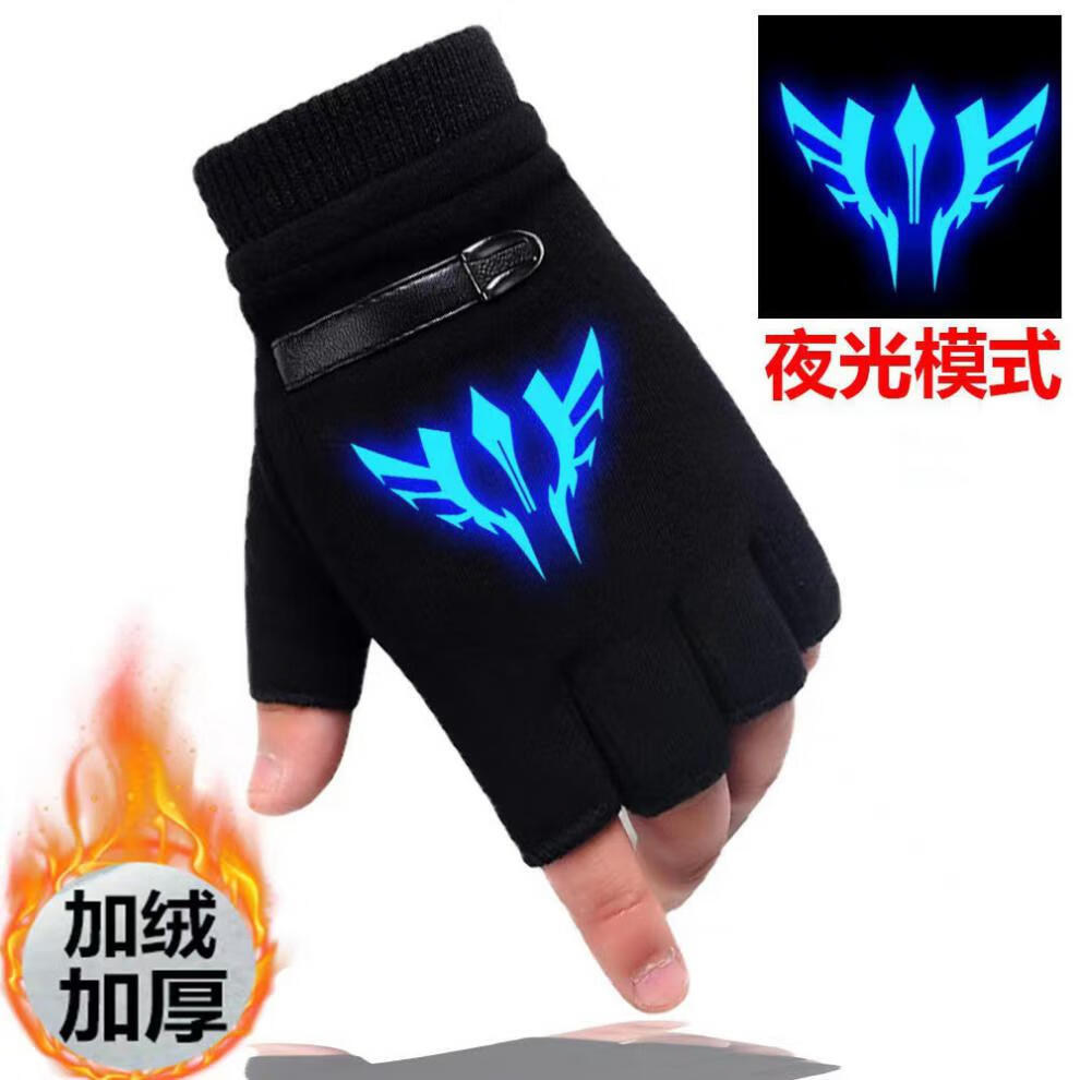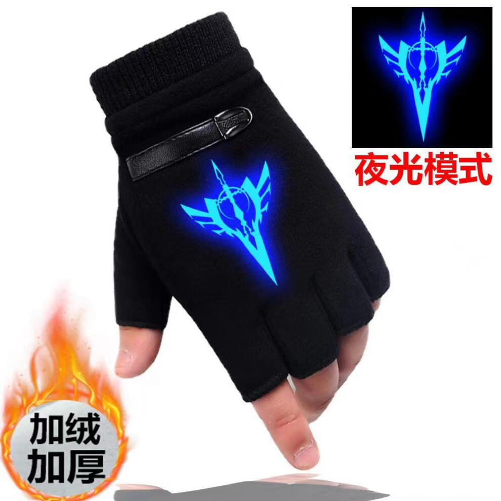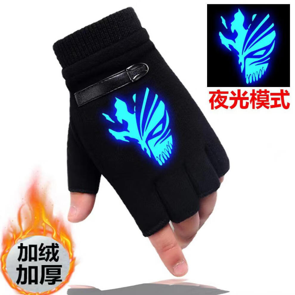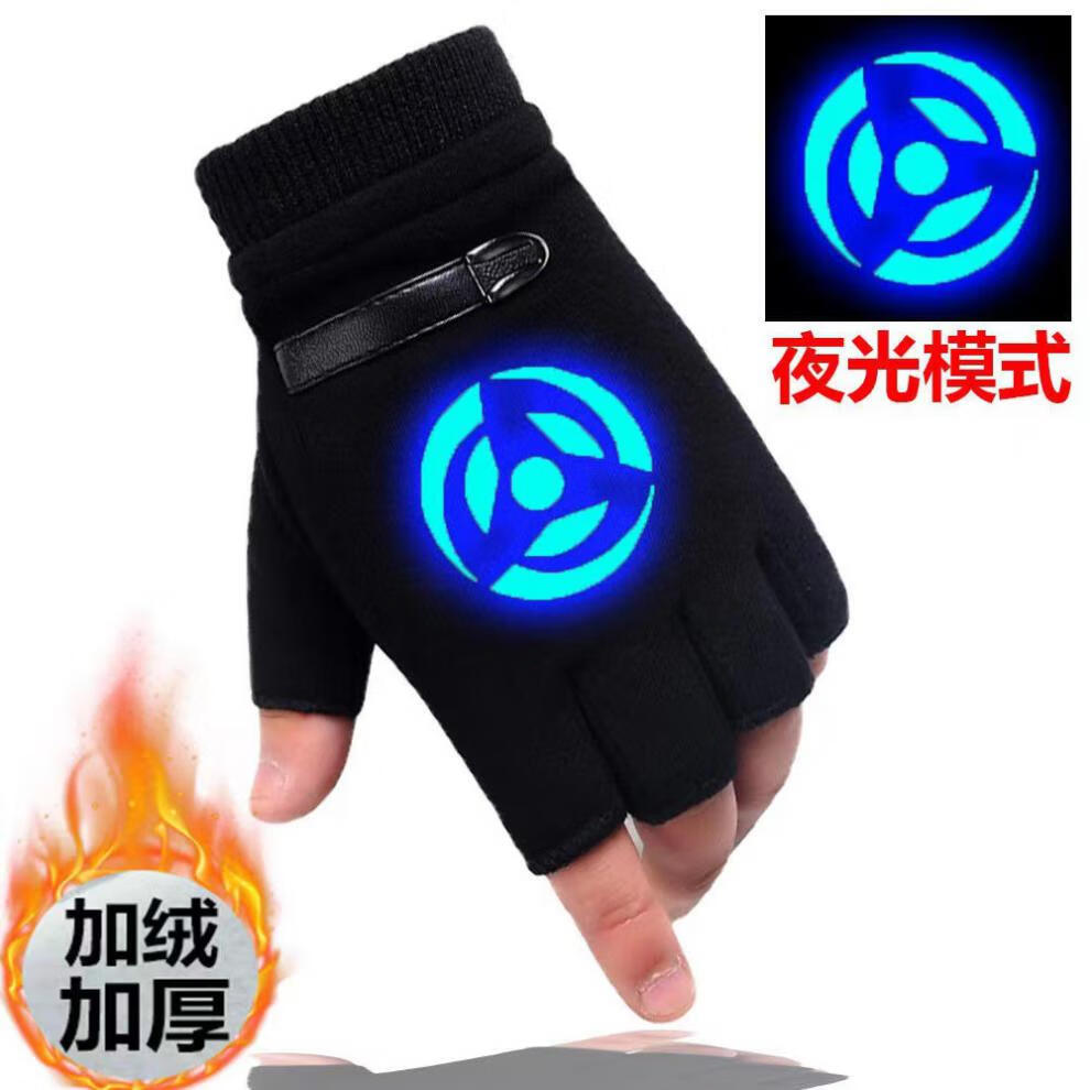 SKONWAT children's gloves, boys' five-finger and half-finger winter, older children's writing, boys and children, plus velvet to keep students warm, luminous fire shadow 1