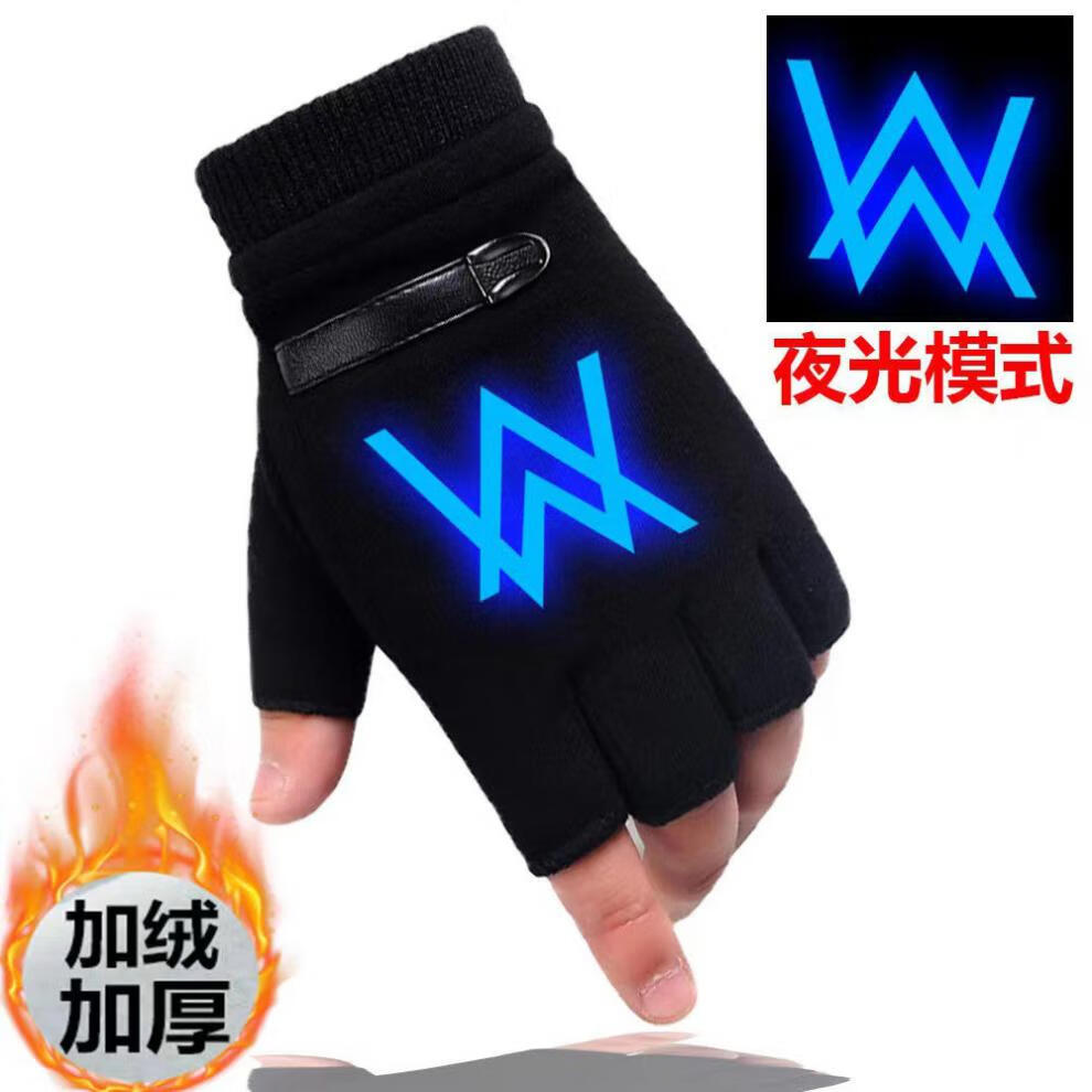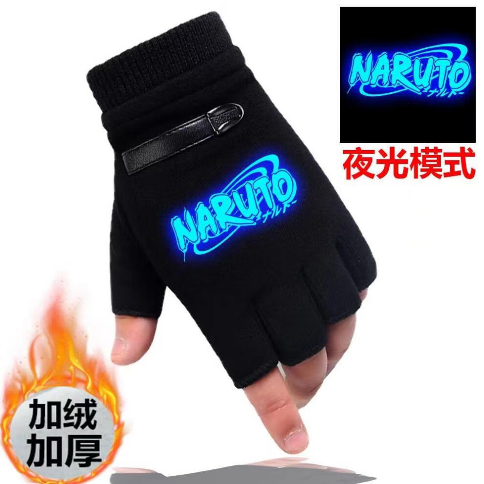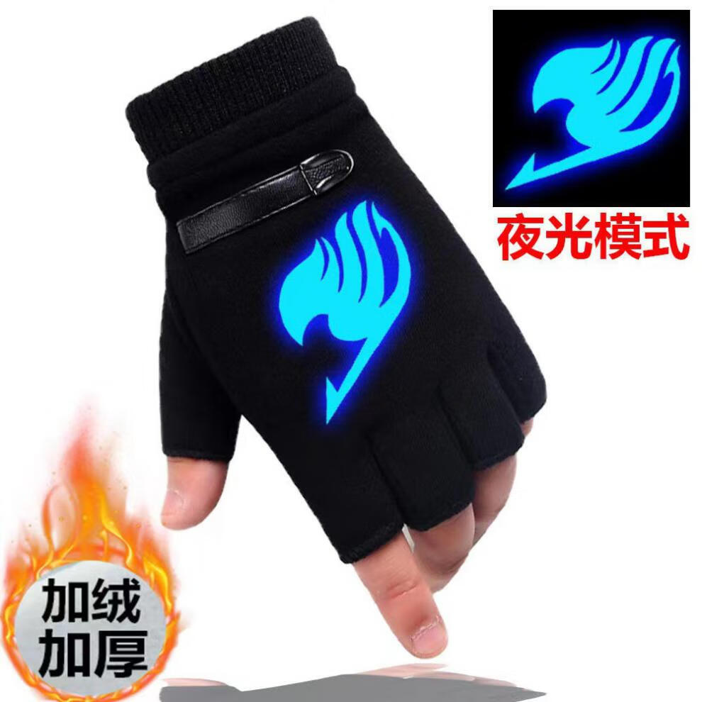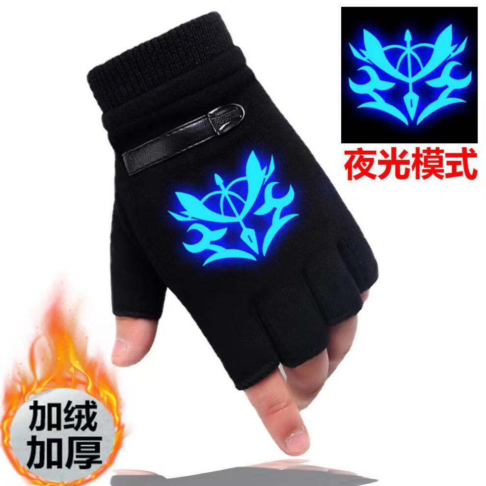 SKONWAT children's gloves, boys' five-finger and half-finger winter, older children's writing, boys and children, plus velvet to keep students warm, luminous fire shadow 1