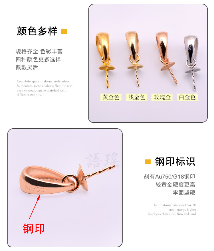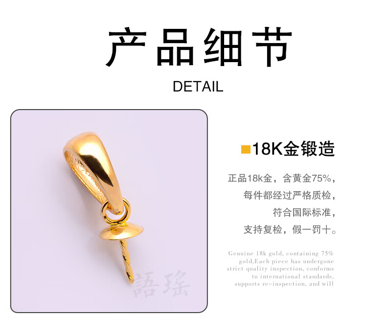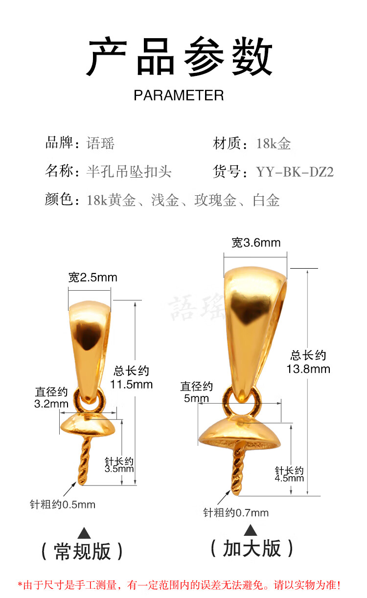 Yuyao 18k gold buckle head large pearl accessories pendant thickened version beeswax half hole round bead empty support DIY gold support thick gold regular version - thickened - half hole buckle head - 18k gold