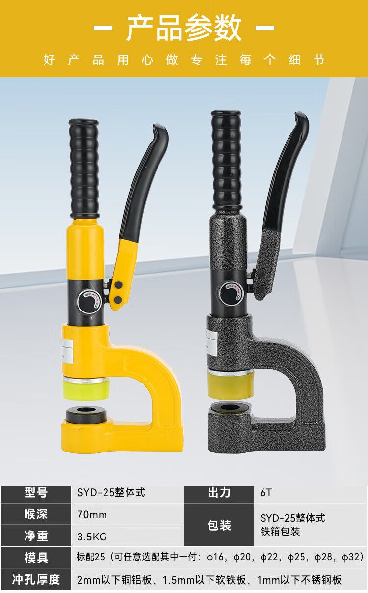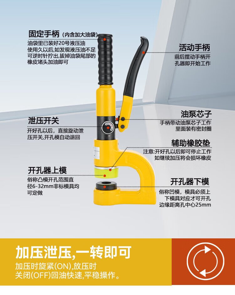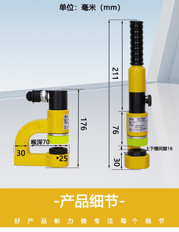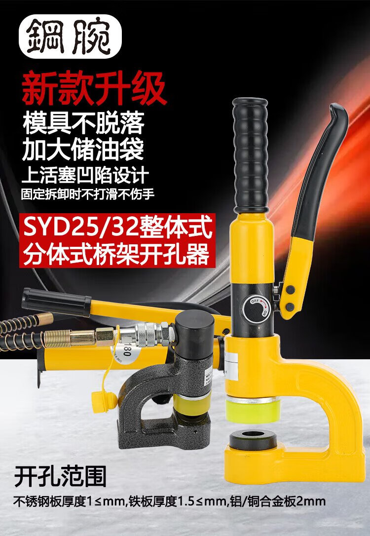 Steel wrist portable hydraulic hole opener manual wire trough long throat deep bridge punching mechanical and electrical box punch-free bridge puncher upgrade SYD25 type overall with 20+25+32 or optional 3 pairs of molds Note