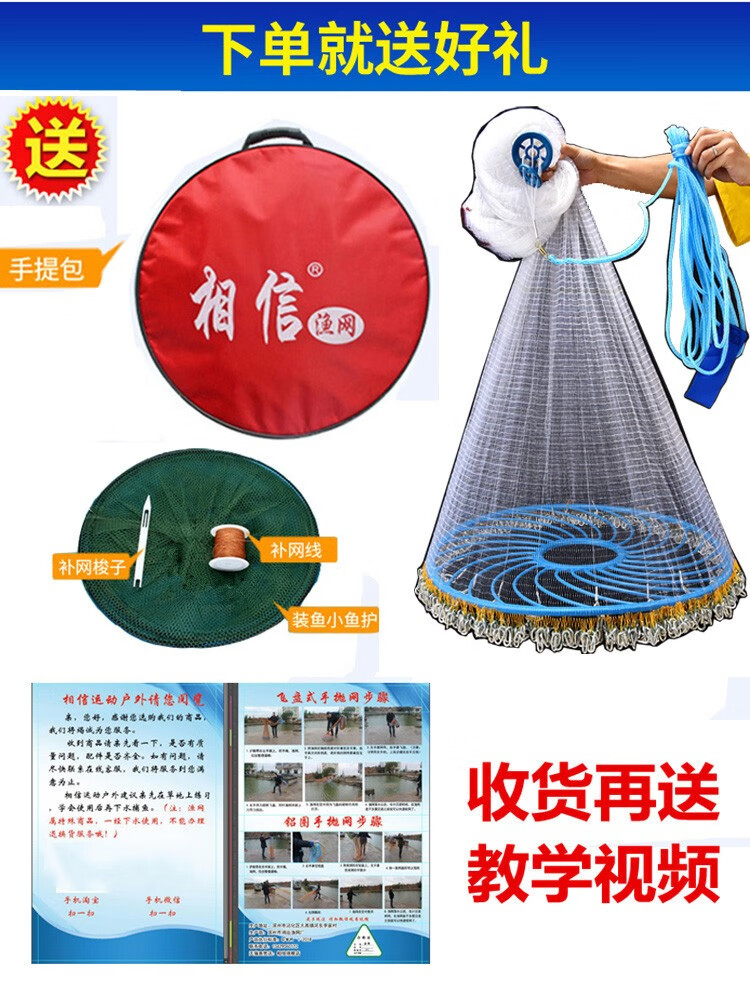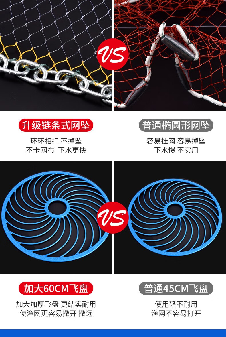 Manon Messiant Large Flying Disc Type Iron Chain Casting Disc Hand Throwing Fishing Net Powerful Horse Thread Braided Rotating Throwing Fishing Net Fishing Artifact Large Flying Disc Two Fingers Thick Wire 900 Type Free Luxury Fly