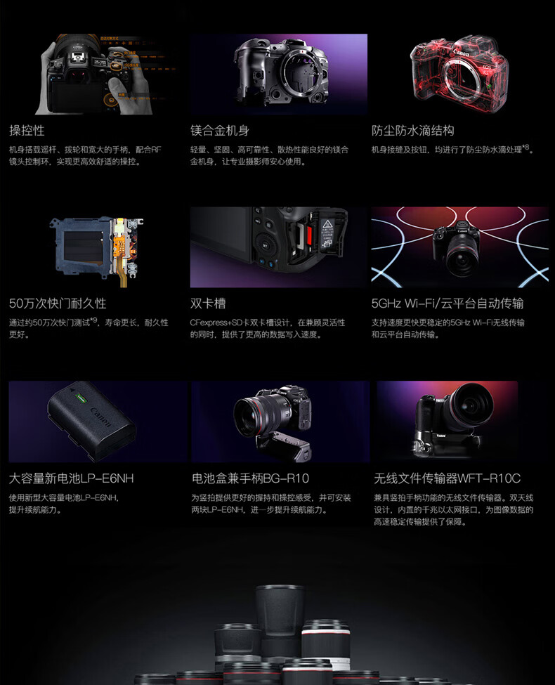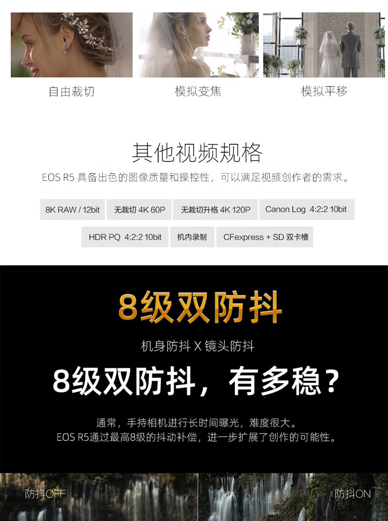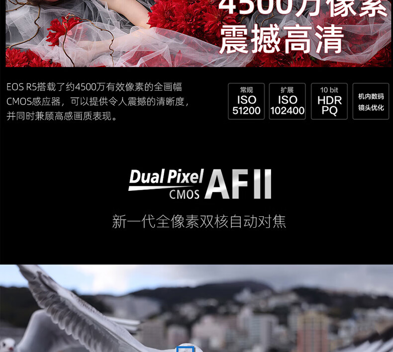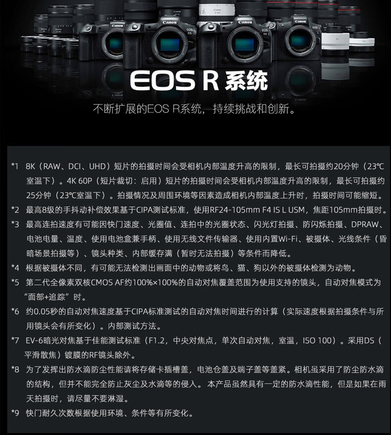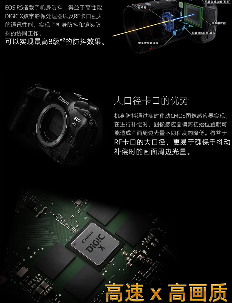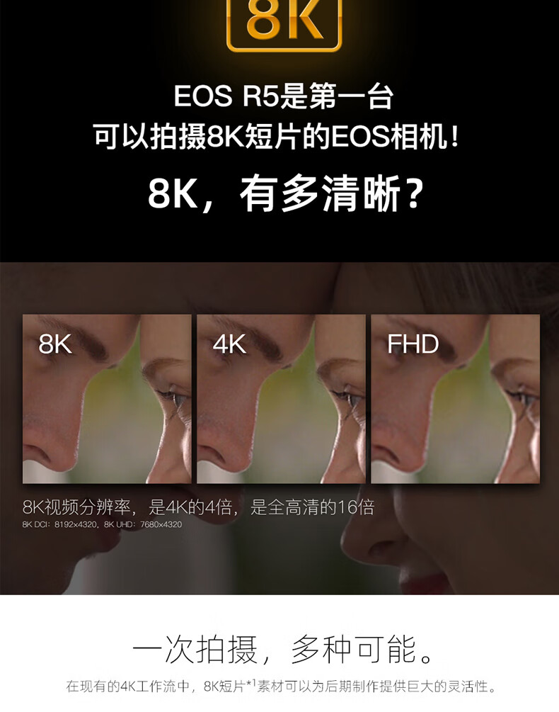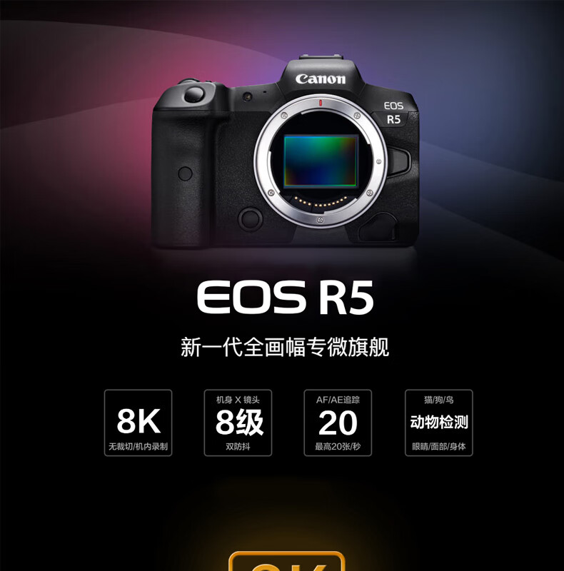 Canon r5 full-frame mirrorless camera 8K digital high-definition travel vlog video R5 flagship full-frame professional mirrorless camera R5 single body Original factory package unopened Official standard configuration Does not include basic accessories such as memory cards Recommended additional purchase package