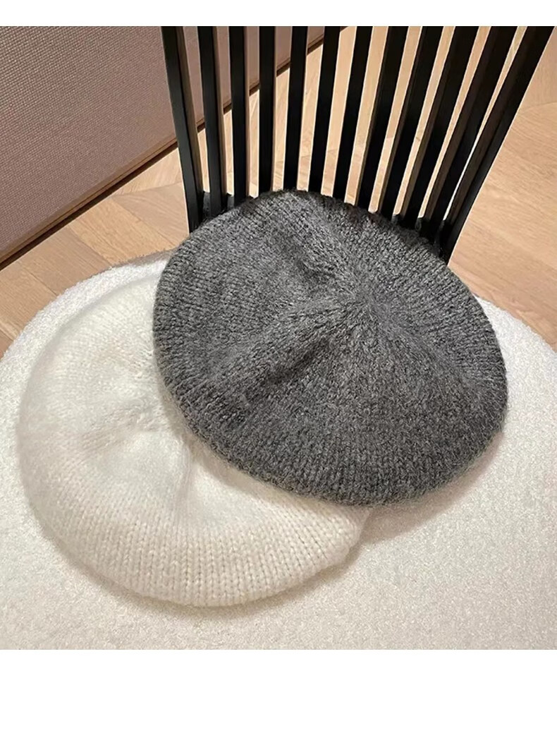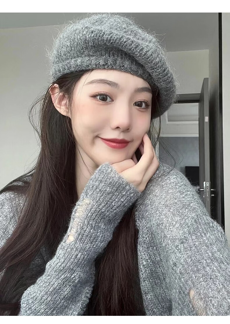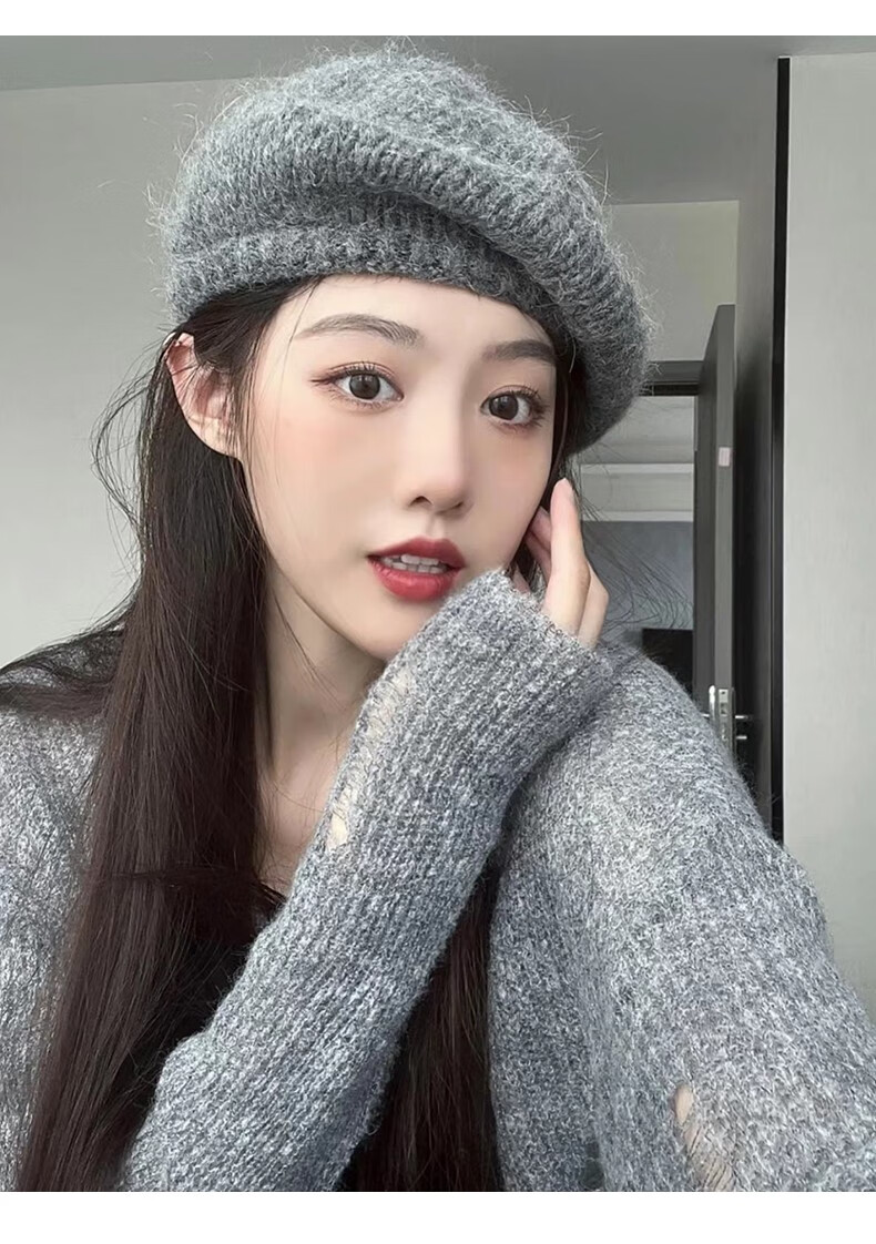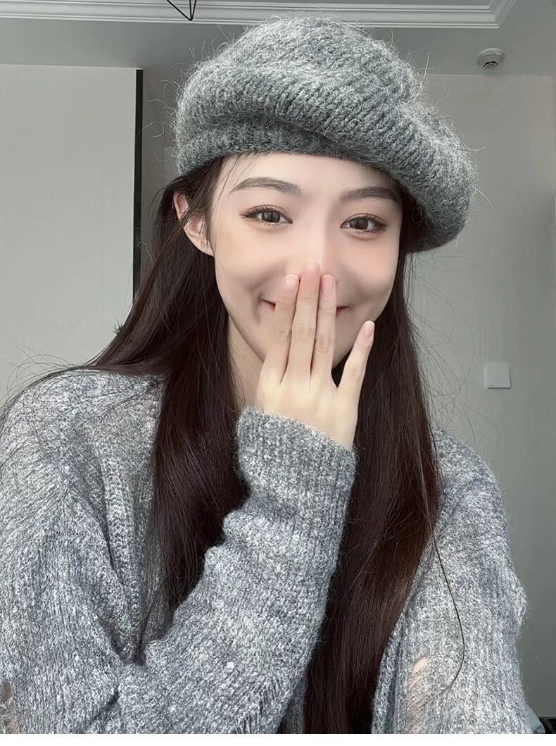 Charm Kendo Hat Women's Autumn and Winter New Versatile Big Head Circumference Woolen Beret to Keep Cold and Warm, Show Face Small Woolen Hat Light Gray