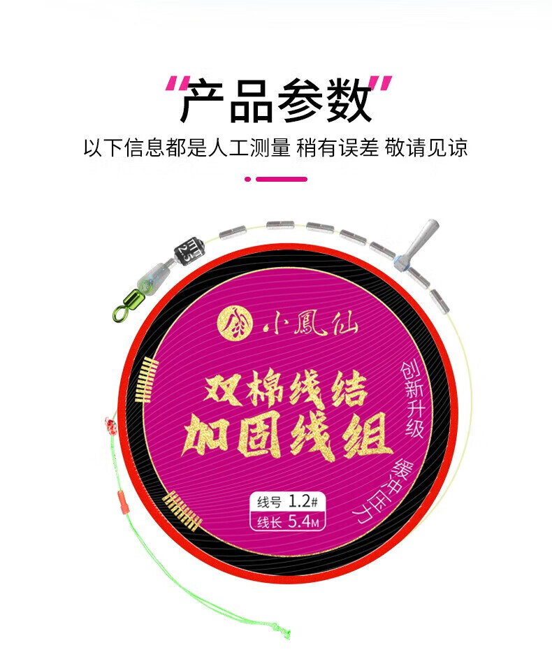 Xiaofengxian Double Cotton Thread Knot Line Set Dalima Reinforced Nylon Fishing Line Main Line Finished Line Set Completely Tied 5.4m PE Reinforced Single Roll No. 1.5