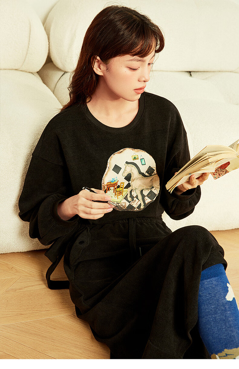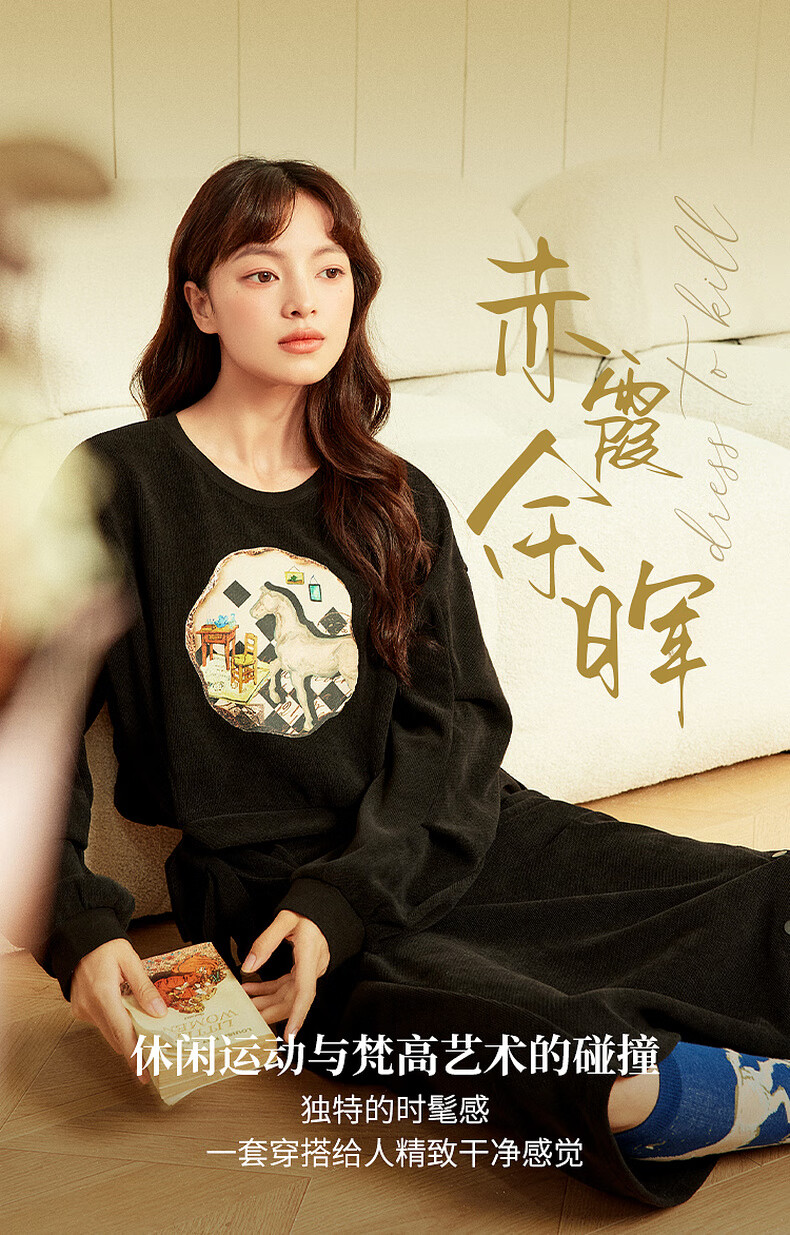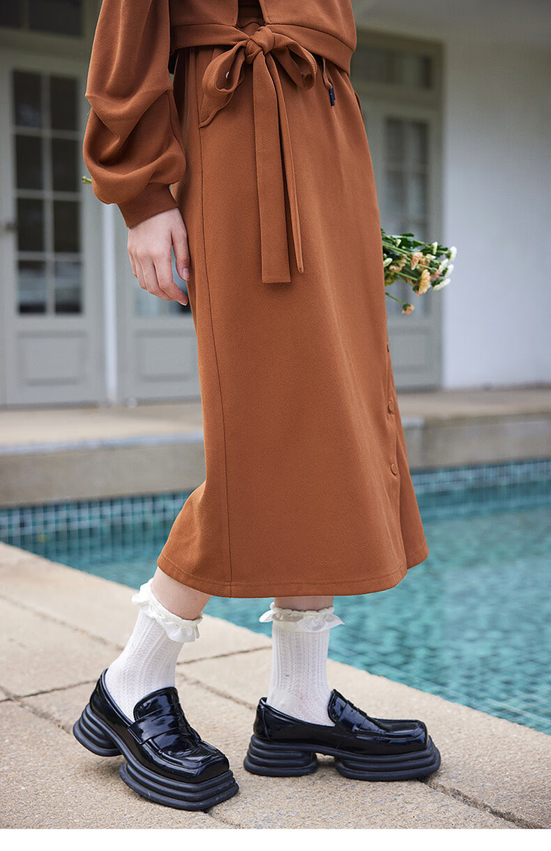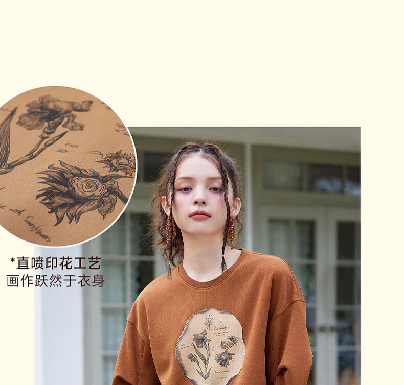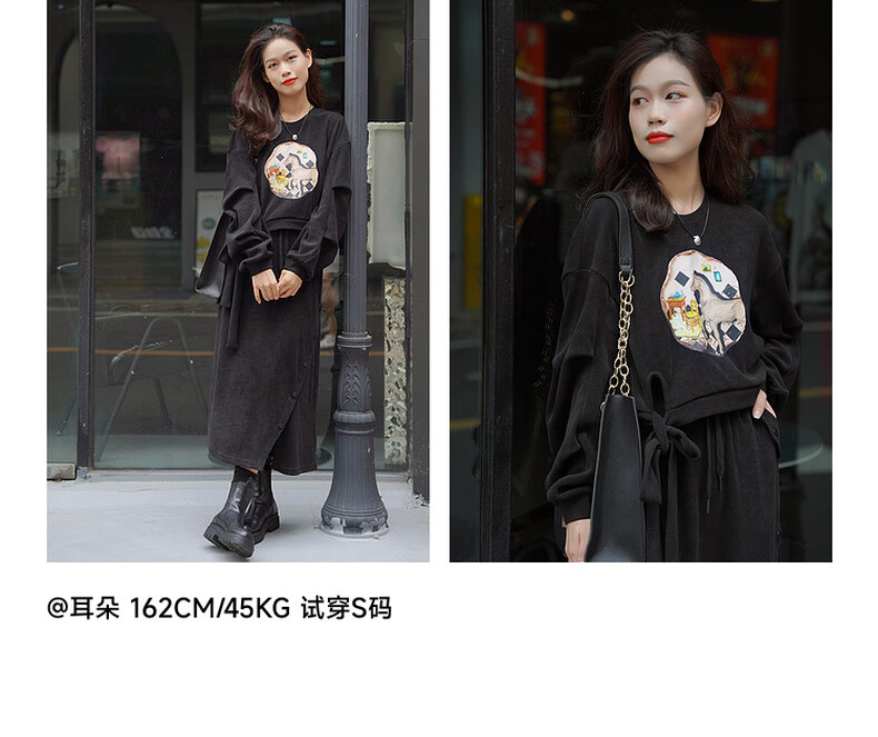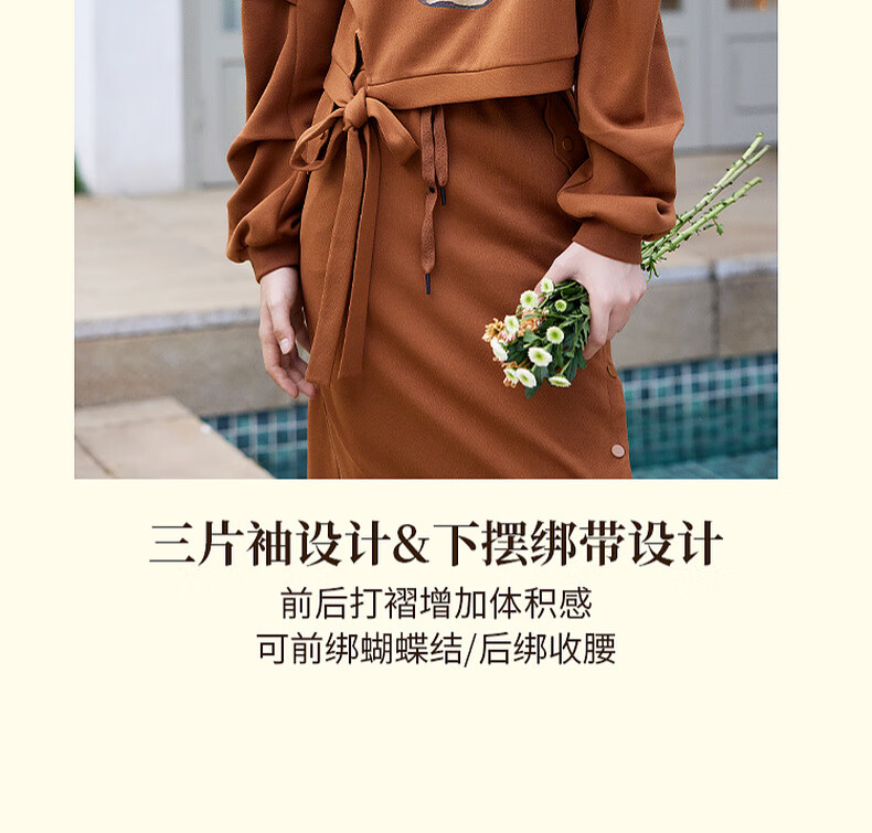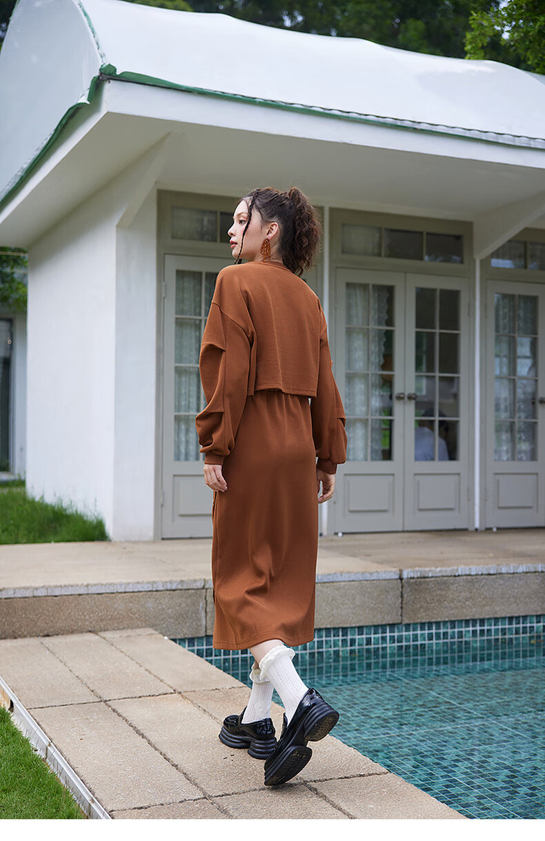 Two or Three Things Chixia Yuhui 2025 Spring New Retro Literary Print Pattern Strap Design Sweater Suit Brown S