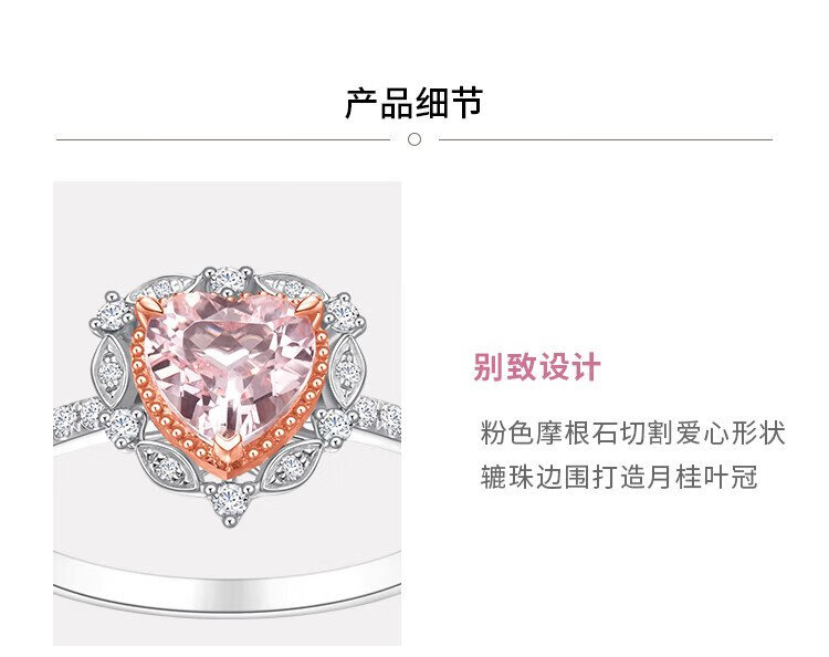 Chow Tai Fook SOINLOVE beloved laurel heart 18K gold morganite wedding diamond ring female VV234 No. 10