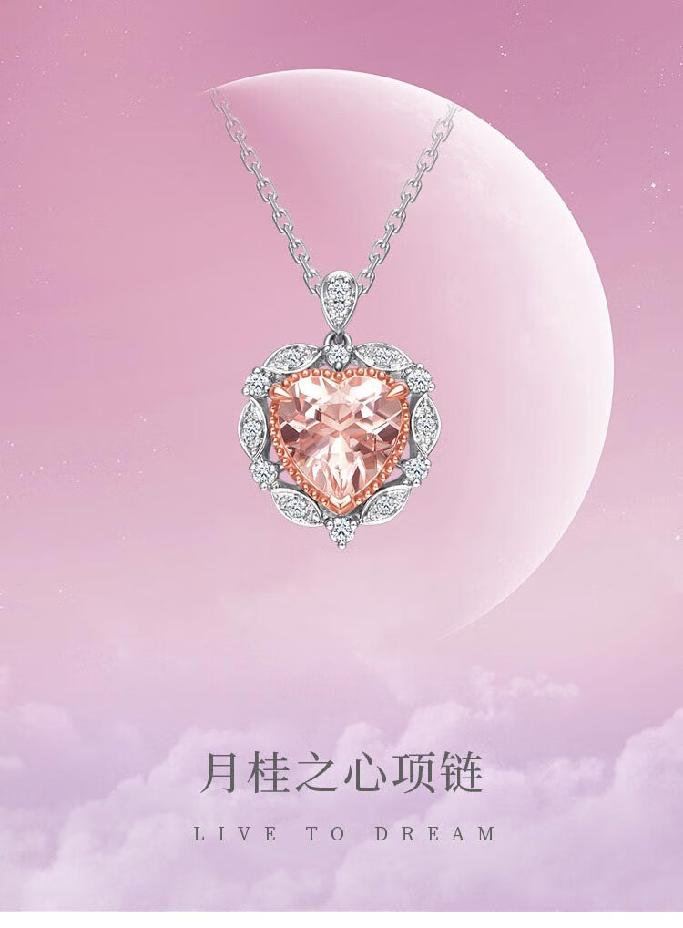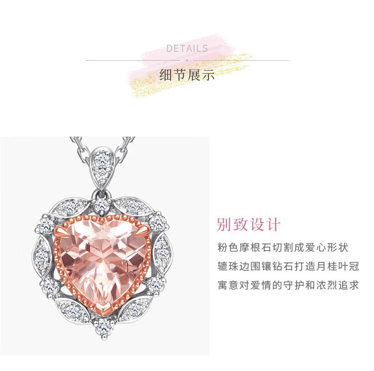 Chow Tai Fook SOINLOVE Heart of Laurel 18K Gold Morganite Diamond Pendant Necklace for Women VV235 40cm