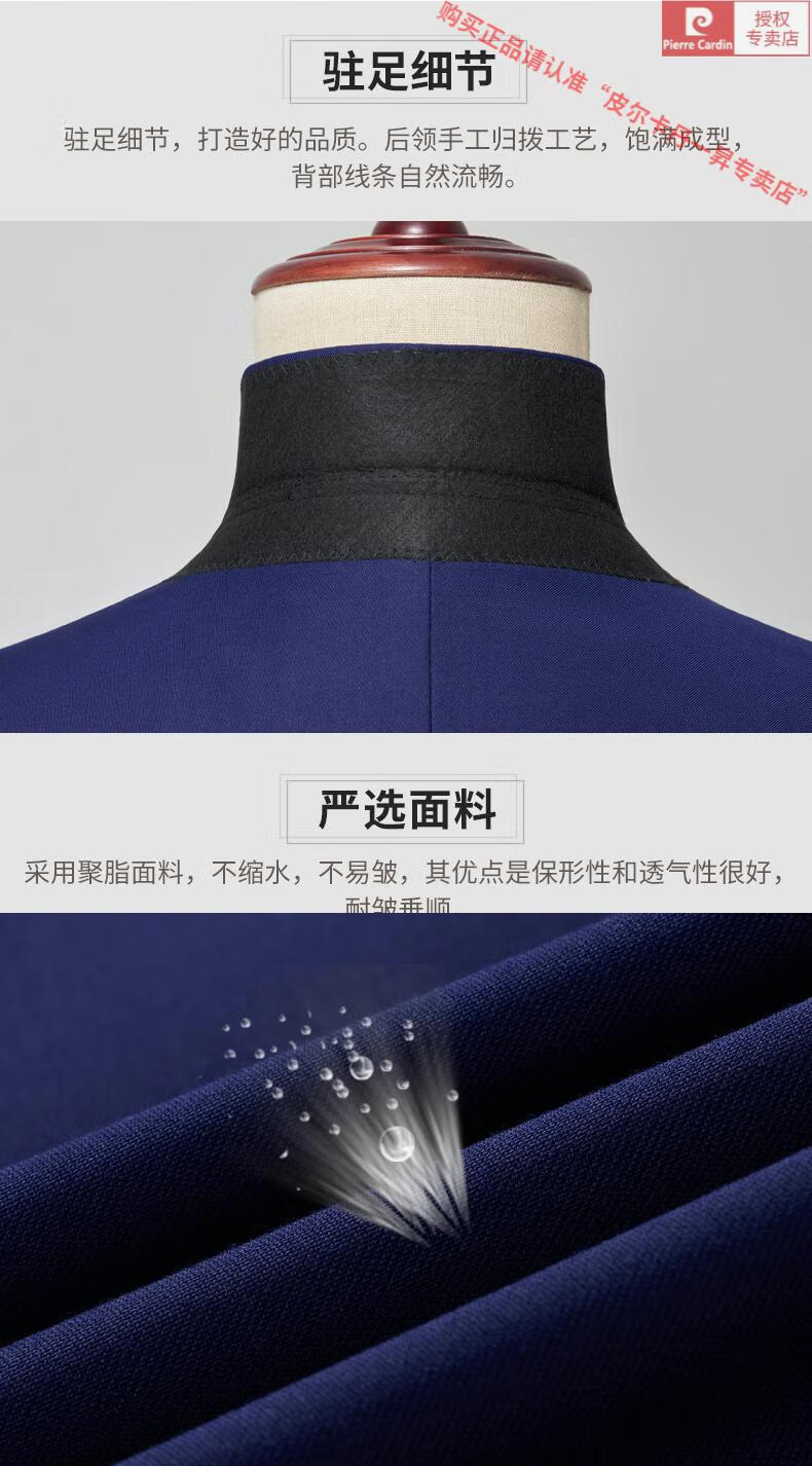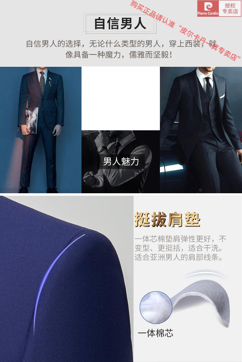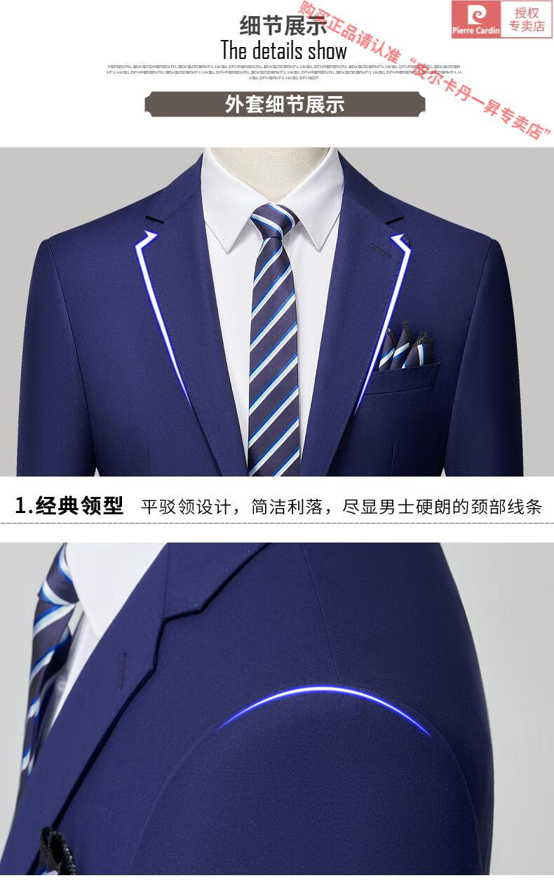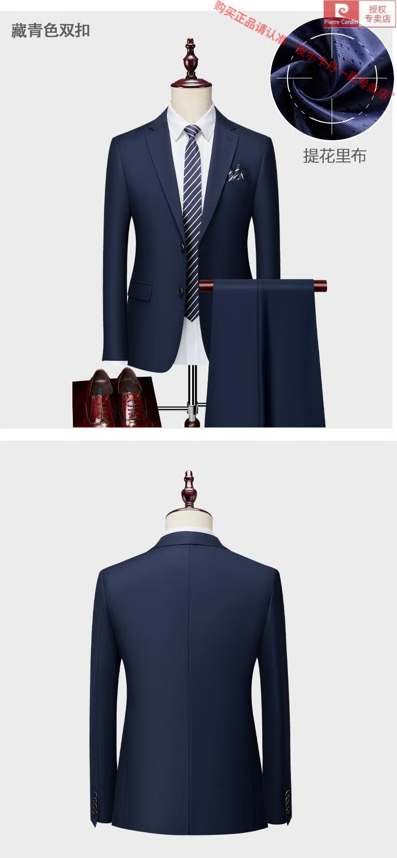 Pierre Cardin wrinkle-free men's suit business casual professional formal wear high-end wedding dress suit set high-end navy suit + trousers 180/XXL