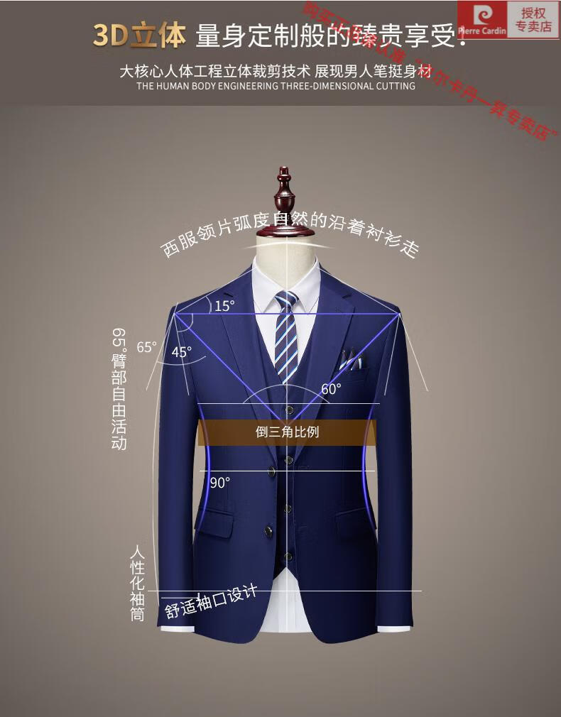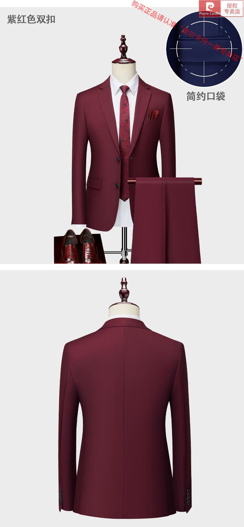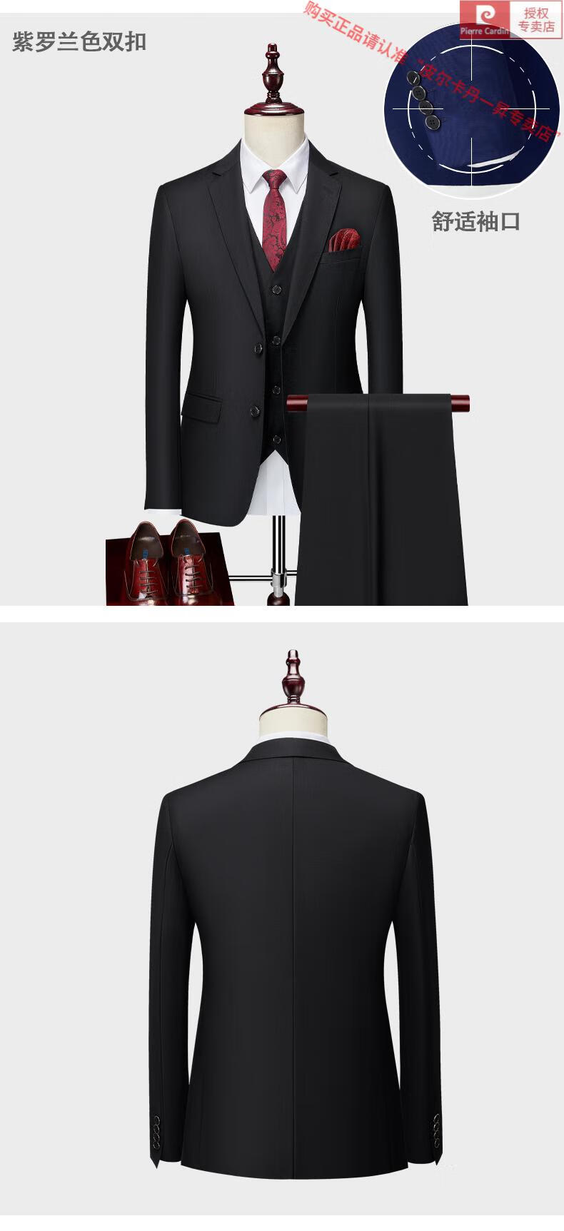 Pierre Cardin wrinkle-free men's suit business casual professional formal wear high-end wedding dress suit set high-end navy suit + trousers 180/XXL
